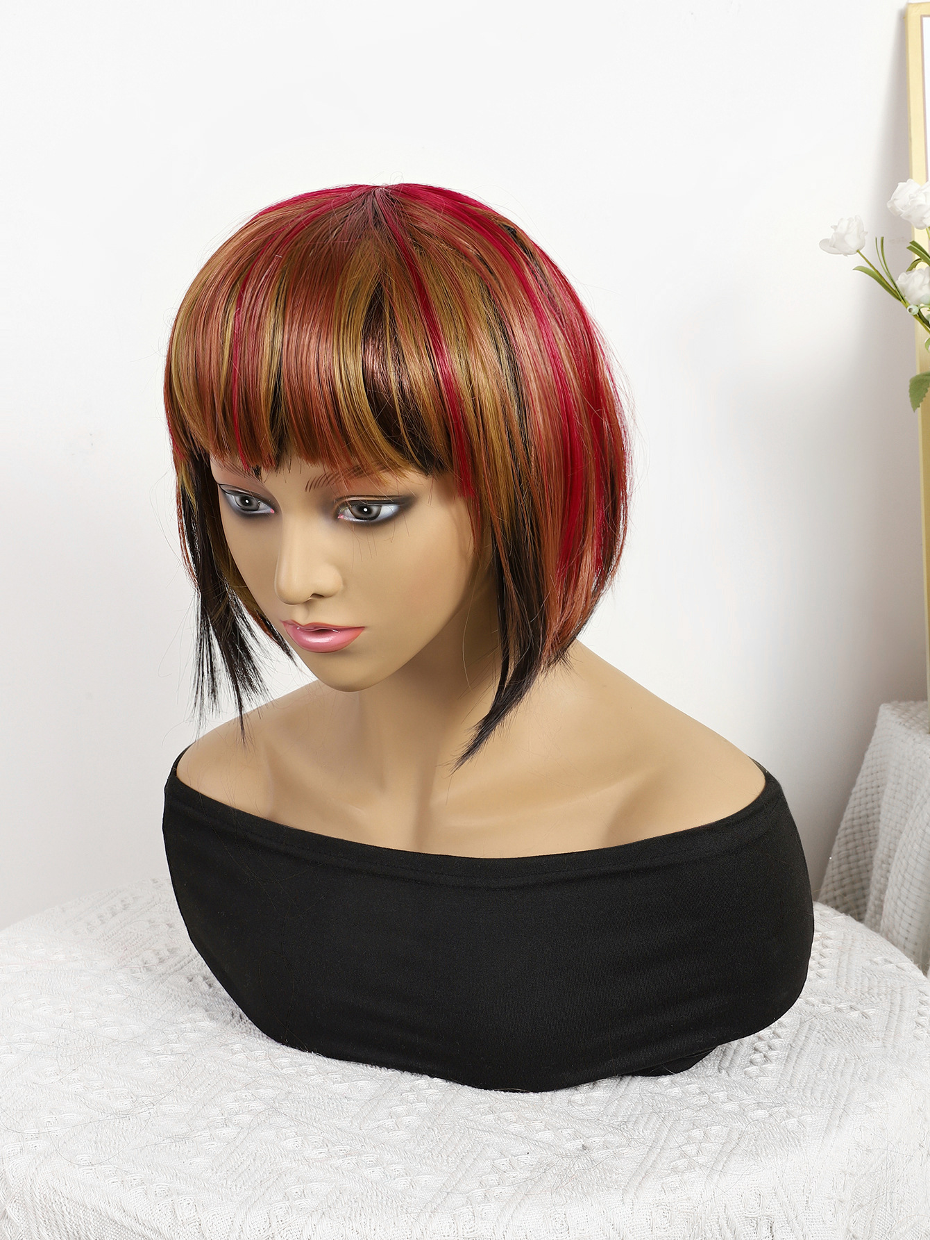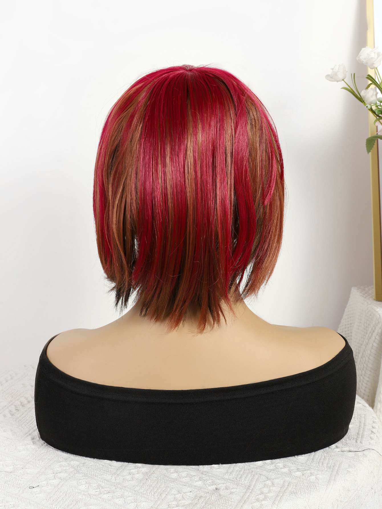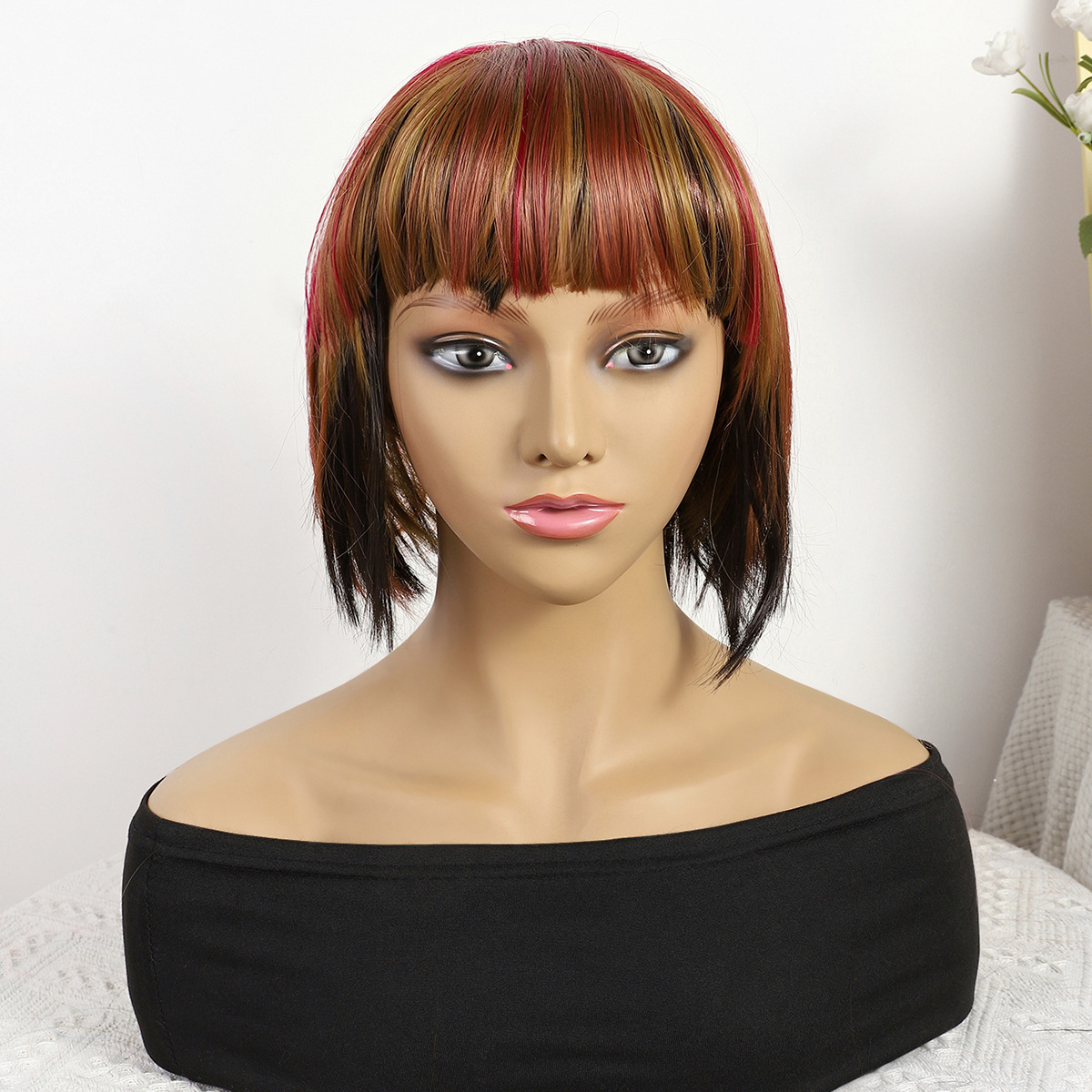 Transfronterizo nuevo marrón-rojo mezcla gradiente largo recto 12 pulgadas sin encaje pelucas europeas y brasileñas