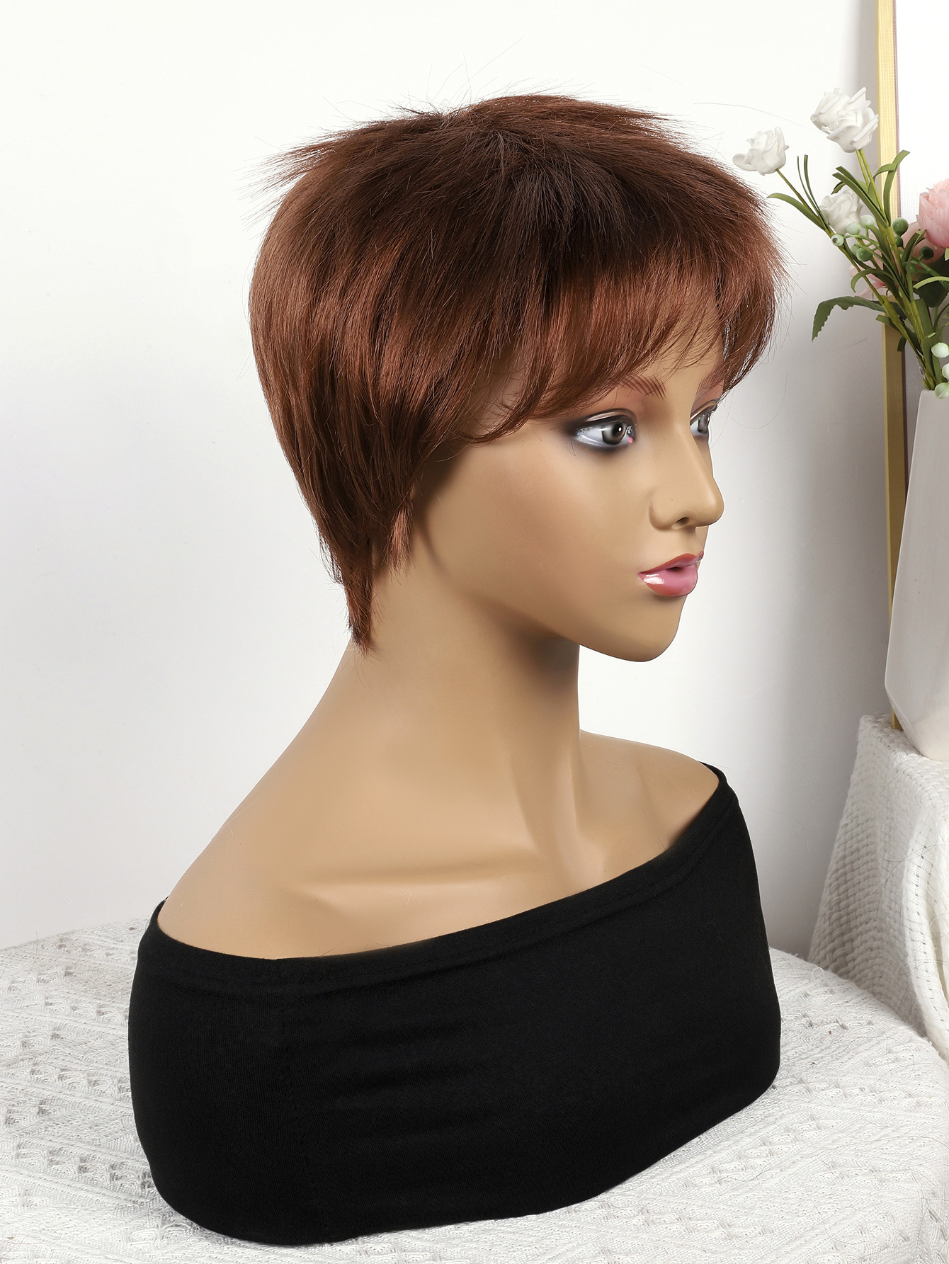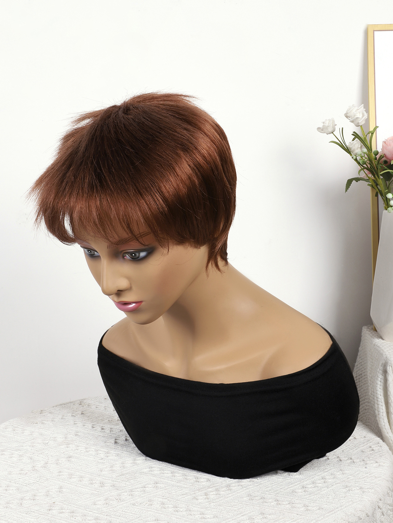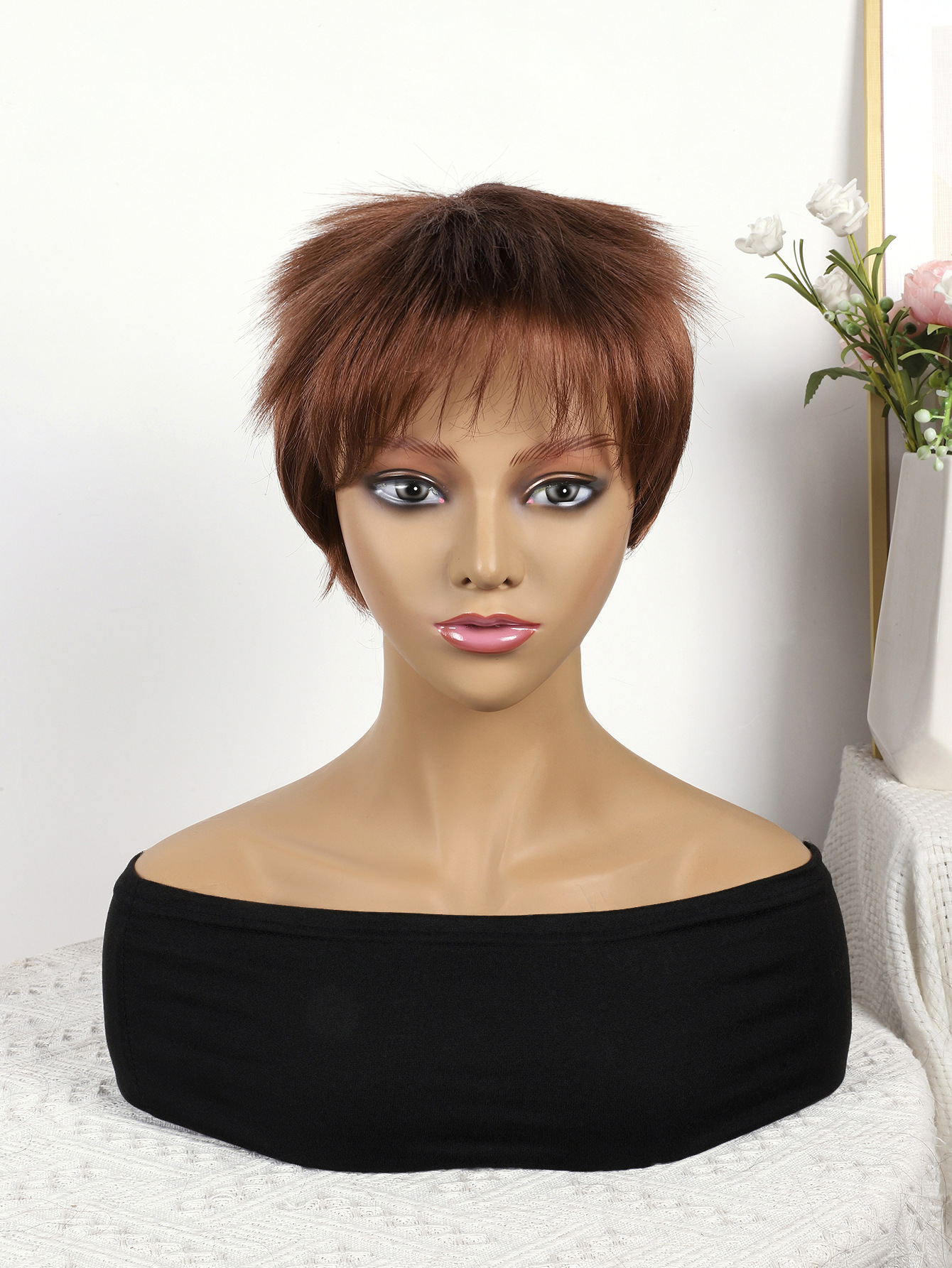 Cabeza de bob de fibra química al por mayor peluca de pelo de estudiante mecanismo de peluca cubierta de cabeza