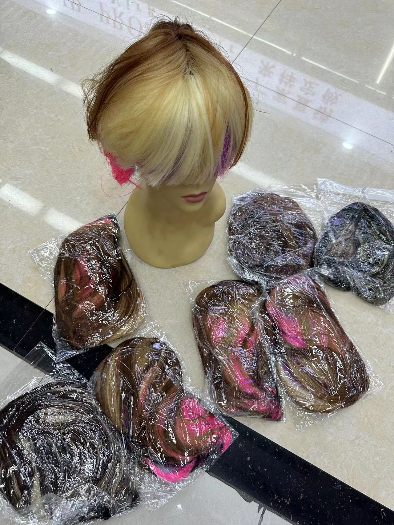 Manejo al por mayor despeje de estudiantes pelucas de pelo corto recto colorido al azar entrega de pelucas