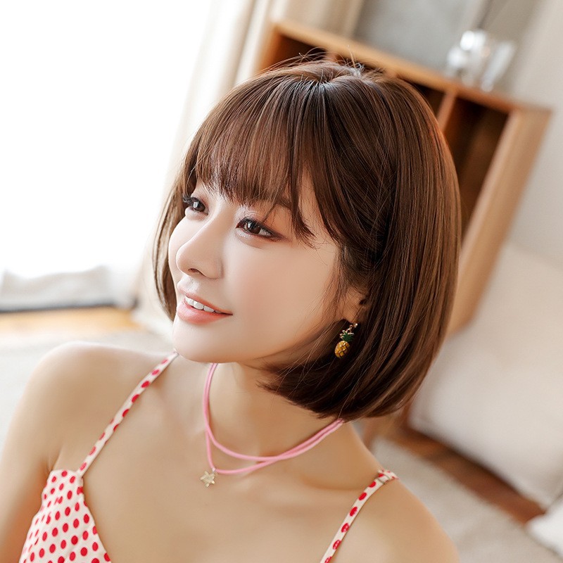 Fabricantes al por mayor pelucas mujeres pelo corto Bobo coreano pelo corto recto realista fibra química pelucas en stock al por mayor