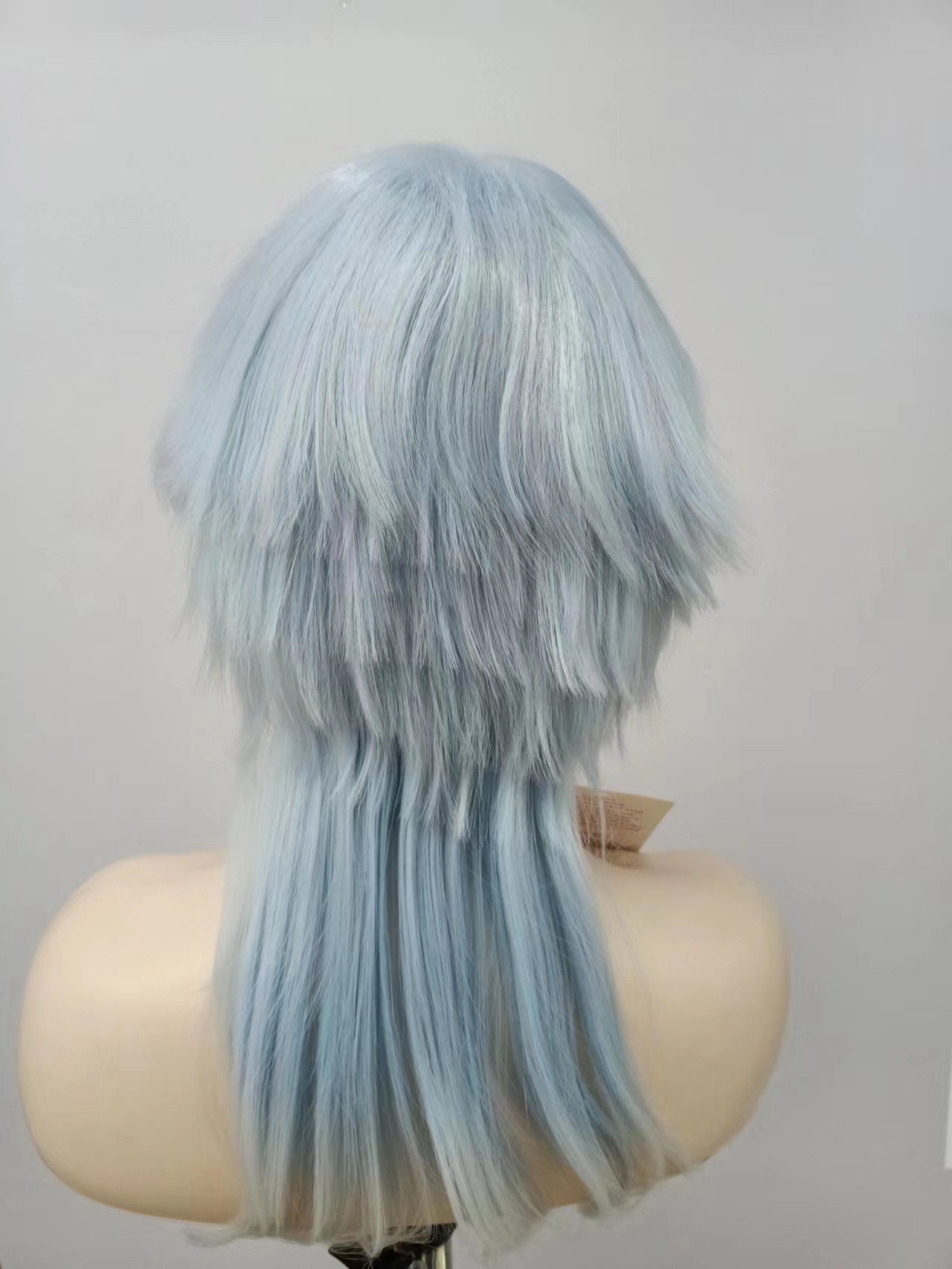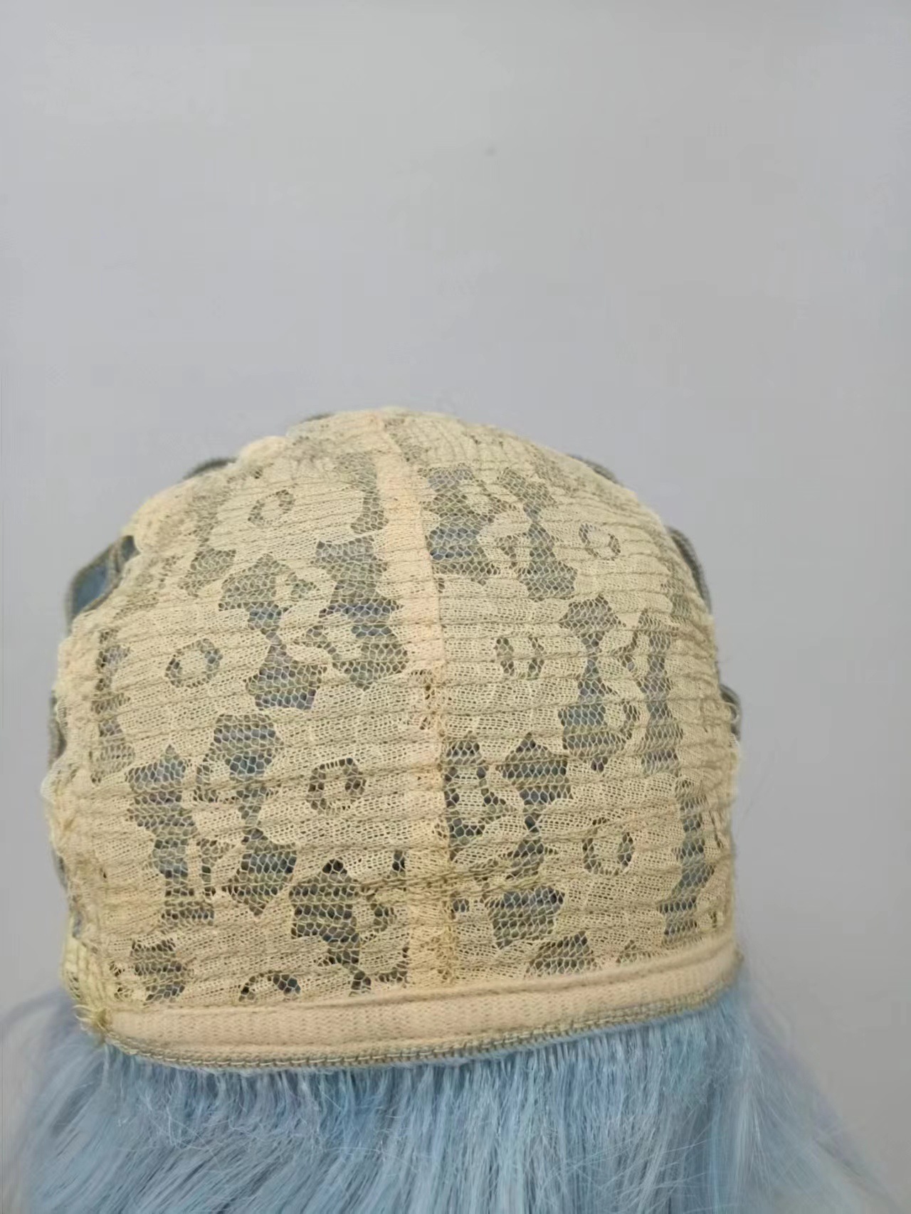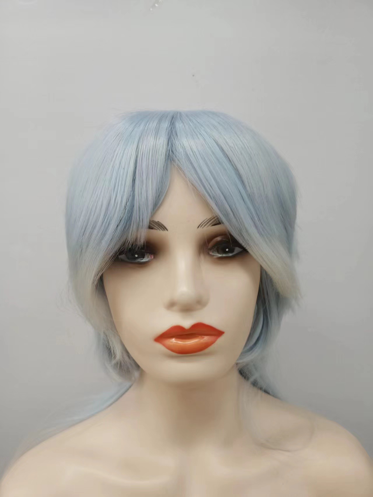 Perucas de fibra química al por mayor, cabello corto de alta temperatura, cabello azul, mecanismo completo