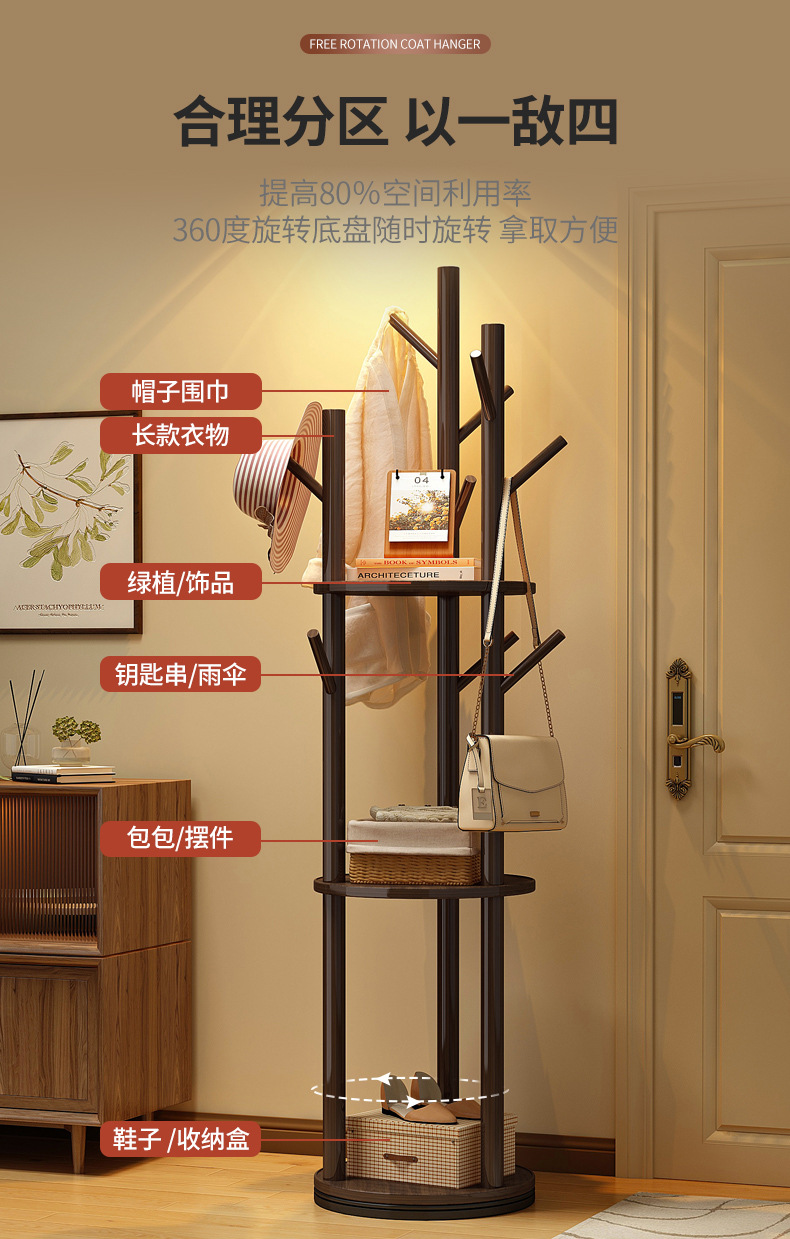 Percha de ropa giratoria percha de ropa vertical percha de ropa percha de madera maciza percha de lujo para la sala de estar