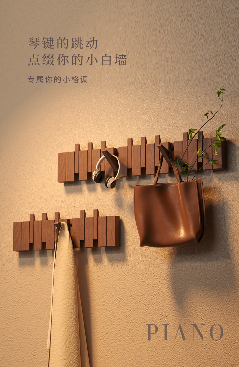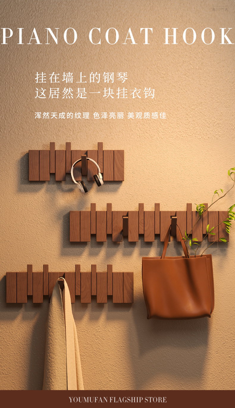 gancho de ropa de teclas de piano puerta de entrada porche colgando percha de ropa de pared colgando percha de ropa de madera maciza gorra gancho libre de perforación