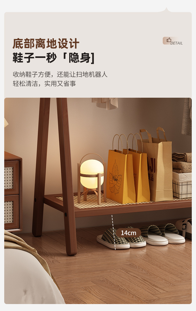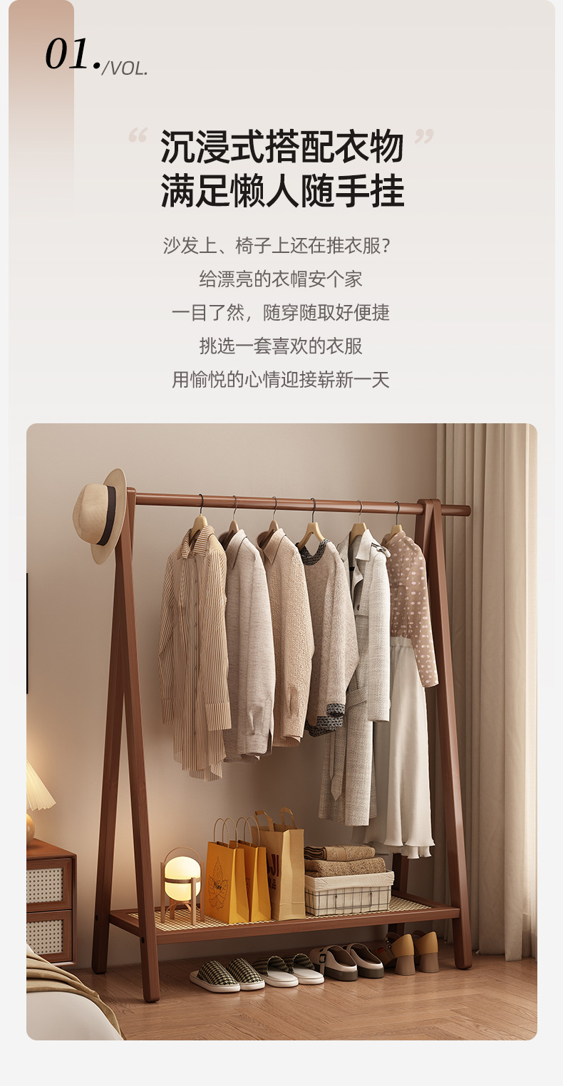 Percha de ropa de piso dormitorio vertical doméstico para colgar la ropa de almacenamiento de la barra de almacenamiento de la cama para organizar la habitación percha de ropa de sombrero