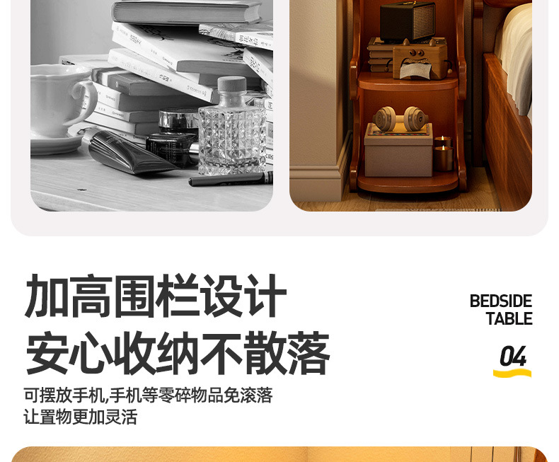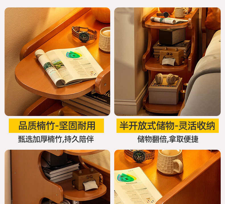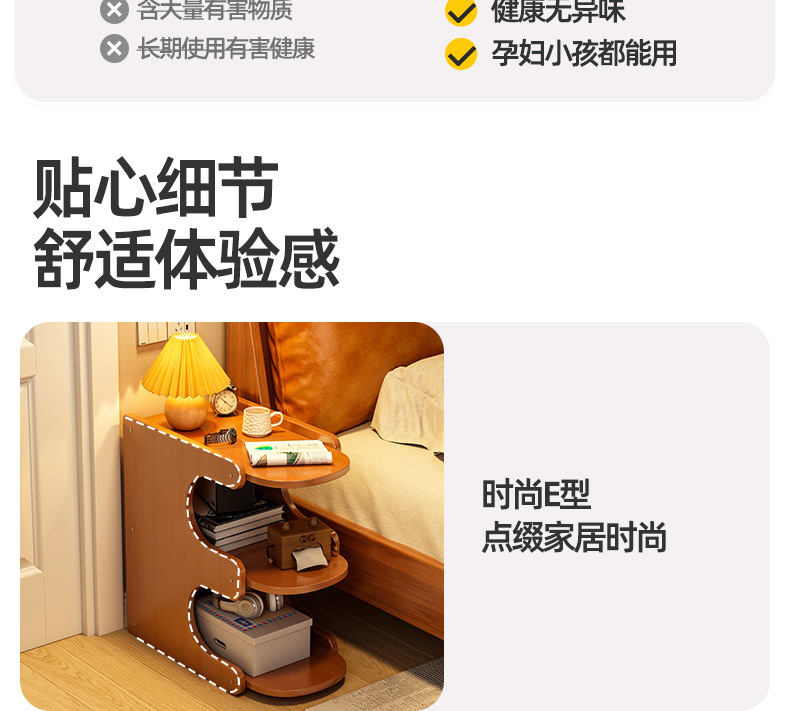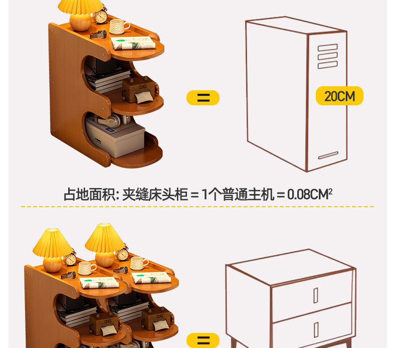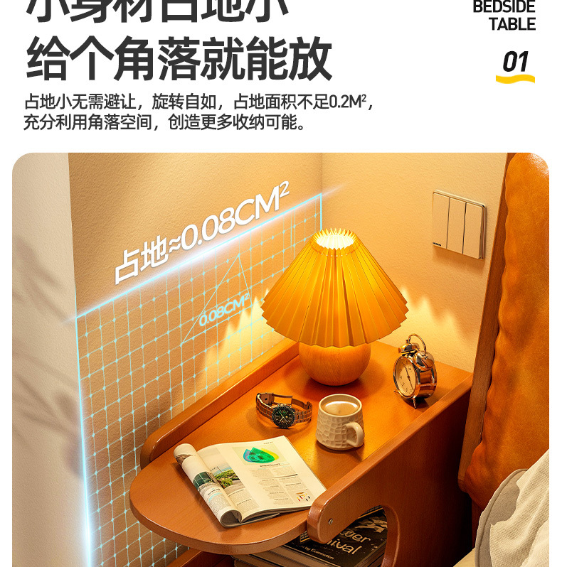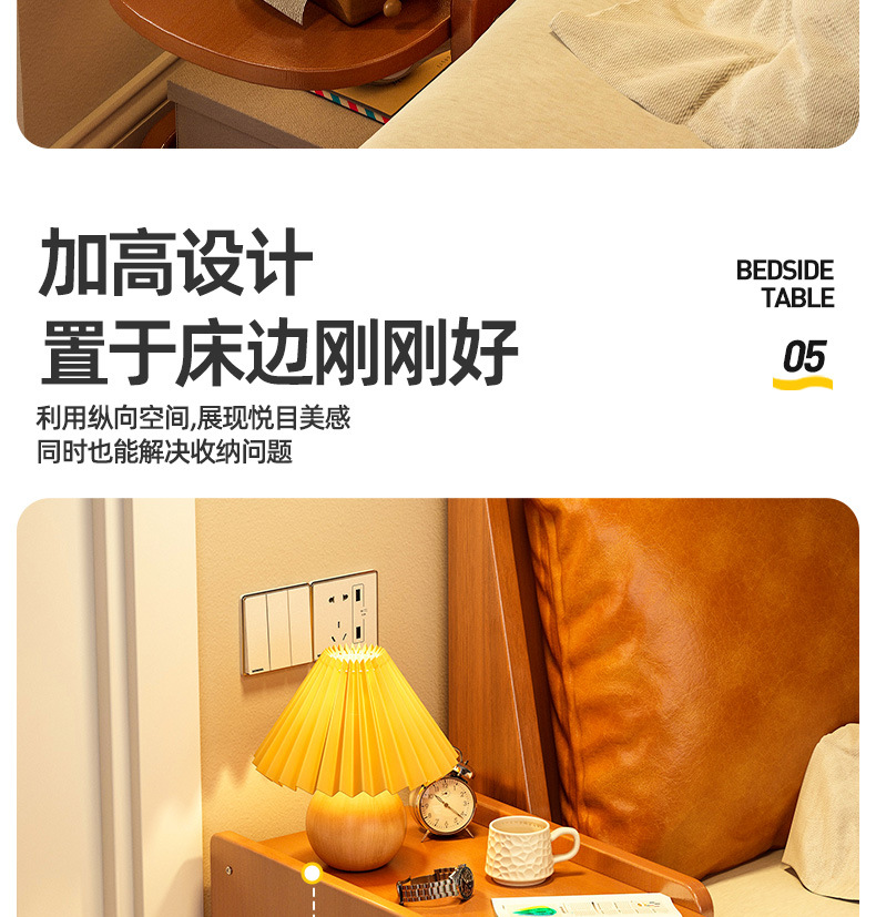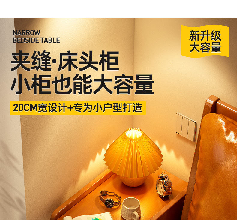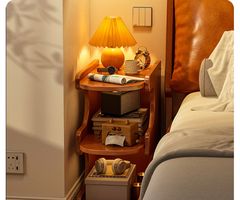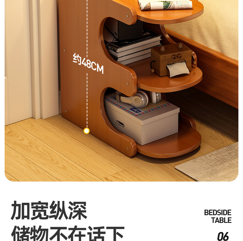 Mesa de cabezal de cama, armario de almacenamiento de hendidura, pequeño armario de lado de la cama, dormitorio doméstico, alquiler de habitaciones, estante de almacenamiento de acabado