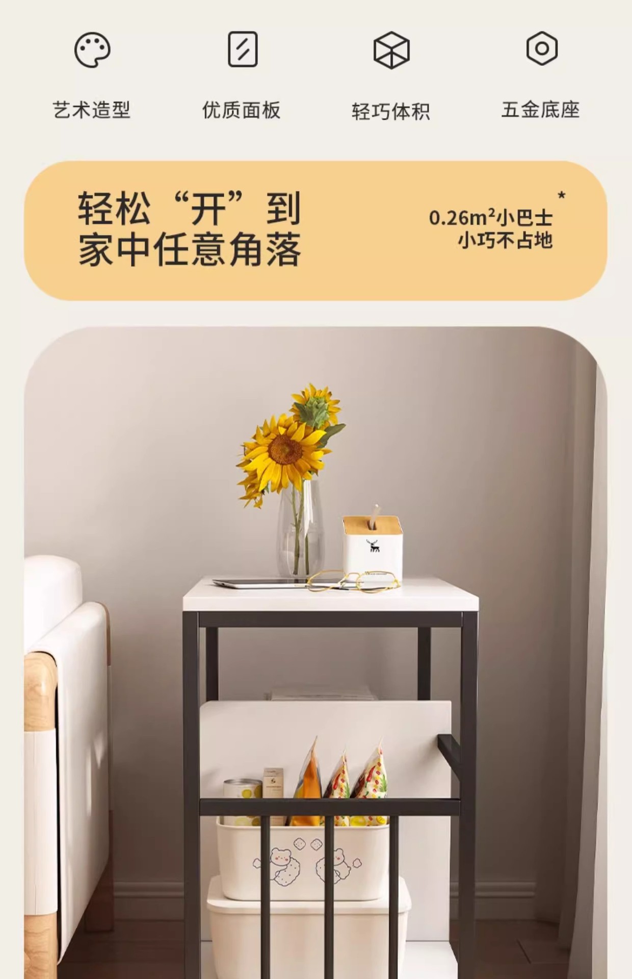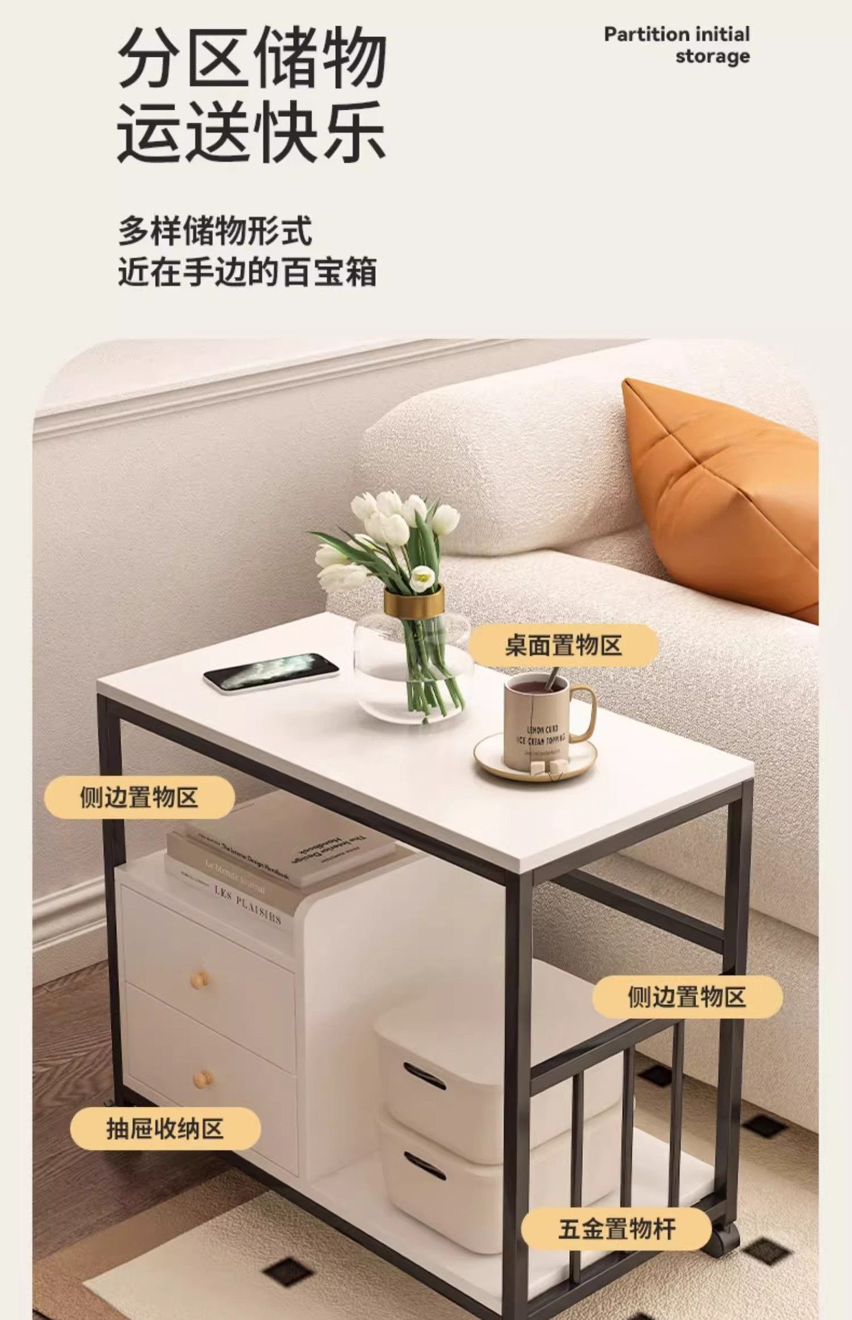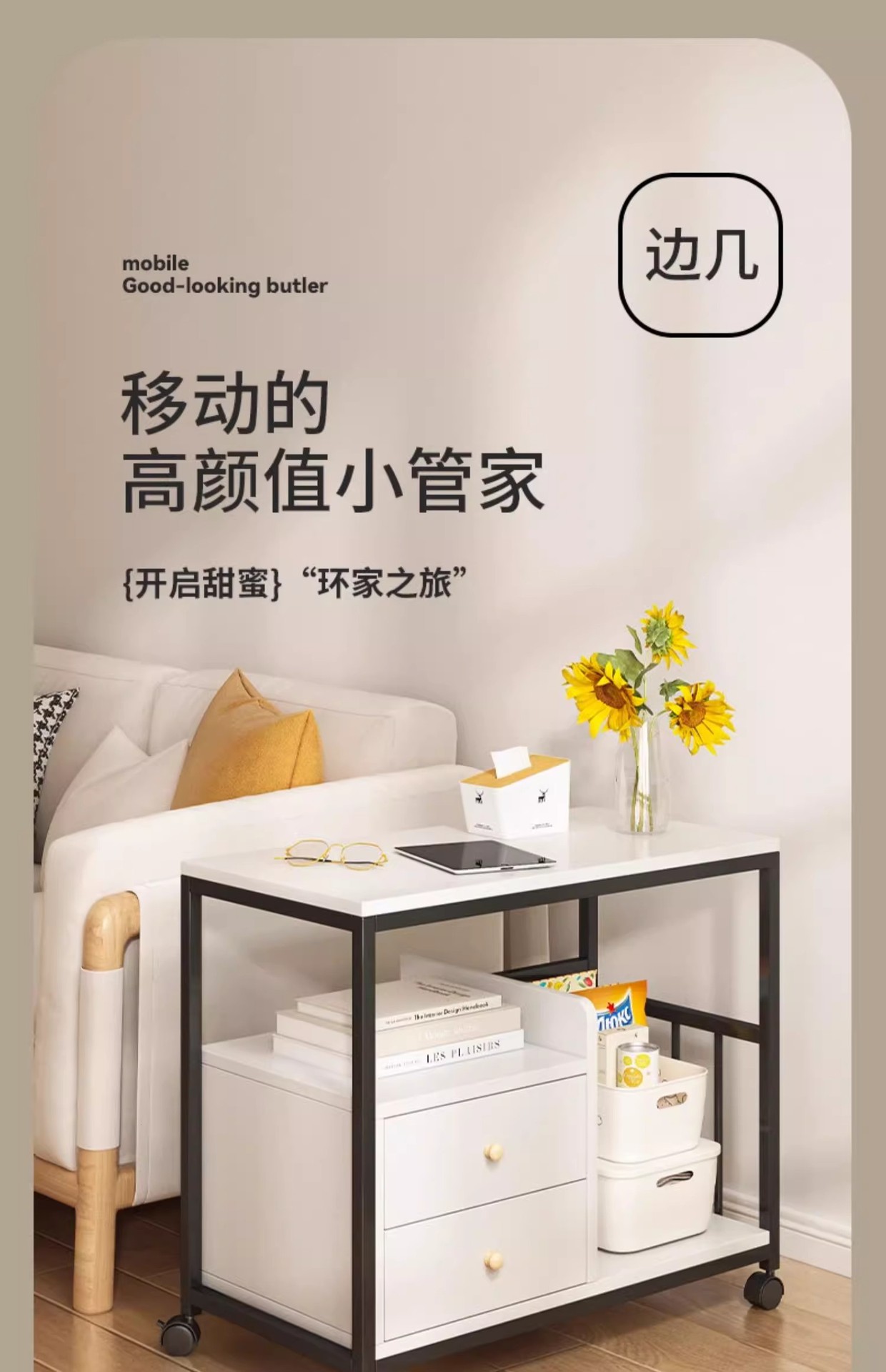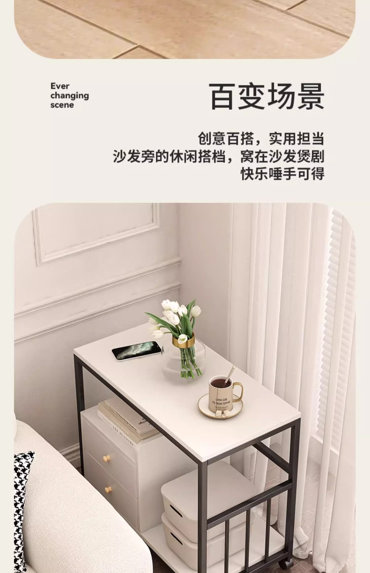 Mesa de té pequeña mesa de estante sofá gabinete lateral móvil mesa de té lateral gabinete estrecho balcón mesa de té ocio