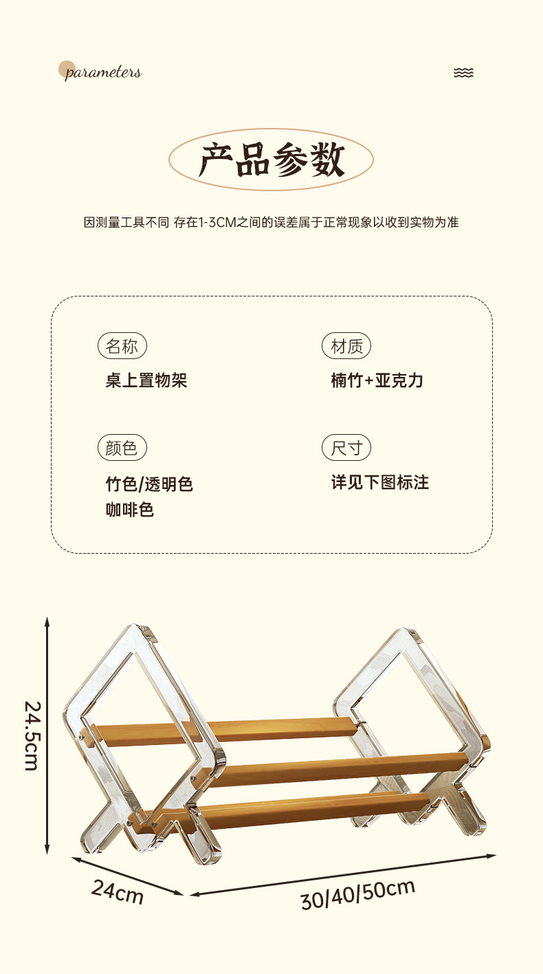 | Color | Estantería de acrílico 30cm [color bambú], estantería de acrílico 40cm [color bambú], estantería de acrílico 50cm [color bambú], estantería de acrílico 30cm [color café], estantería de acrílico 40cm [color café], estantería de acrílico 30cm [color transparente], estantería de acrílico 40cm [color transparente], estantería de acrílico 40cm [color transparente], estantería de acrílico 50cm [color transparente] |