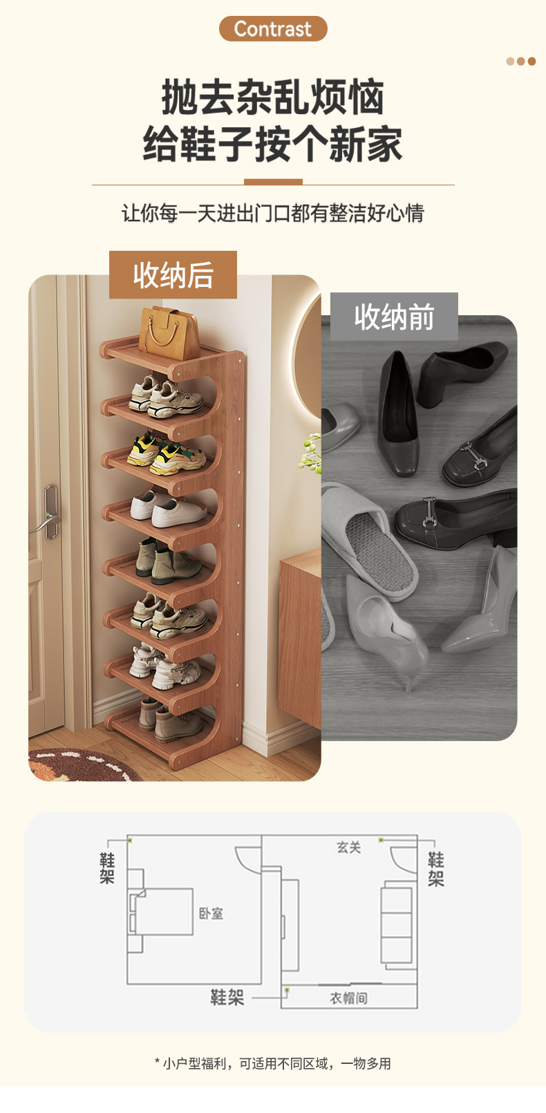 Estante para zapatos simple y estrecho, almacenamiento en la puerta del hogar, espacio de ahorro de espacio de varios pisos, esquina de la puerta, estante pequeño, zapatero