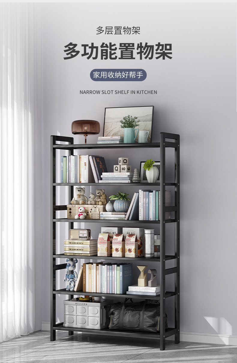 Estantería simple estante de apartamento pequeño Escritorio de piso de múltiples capas para el hogar de pared junto a un estante de almacenamiento de libros simple