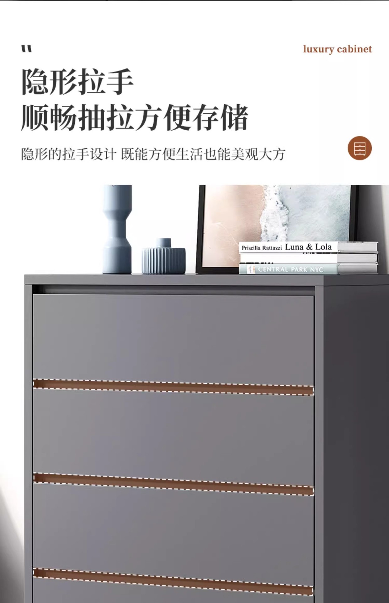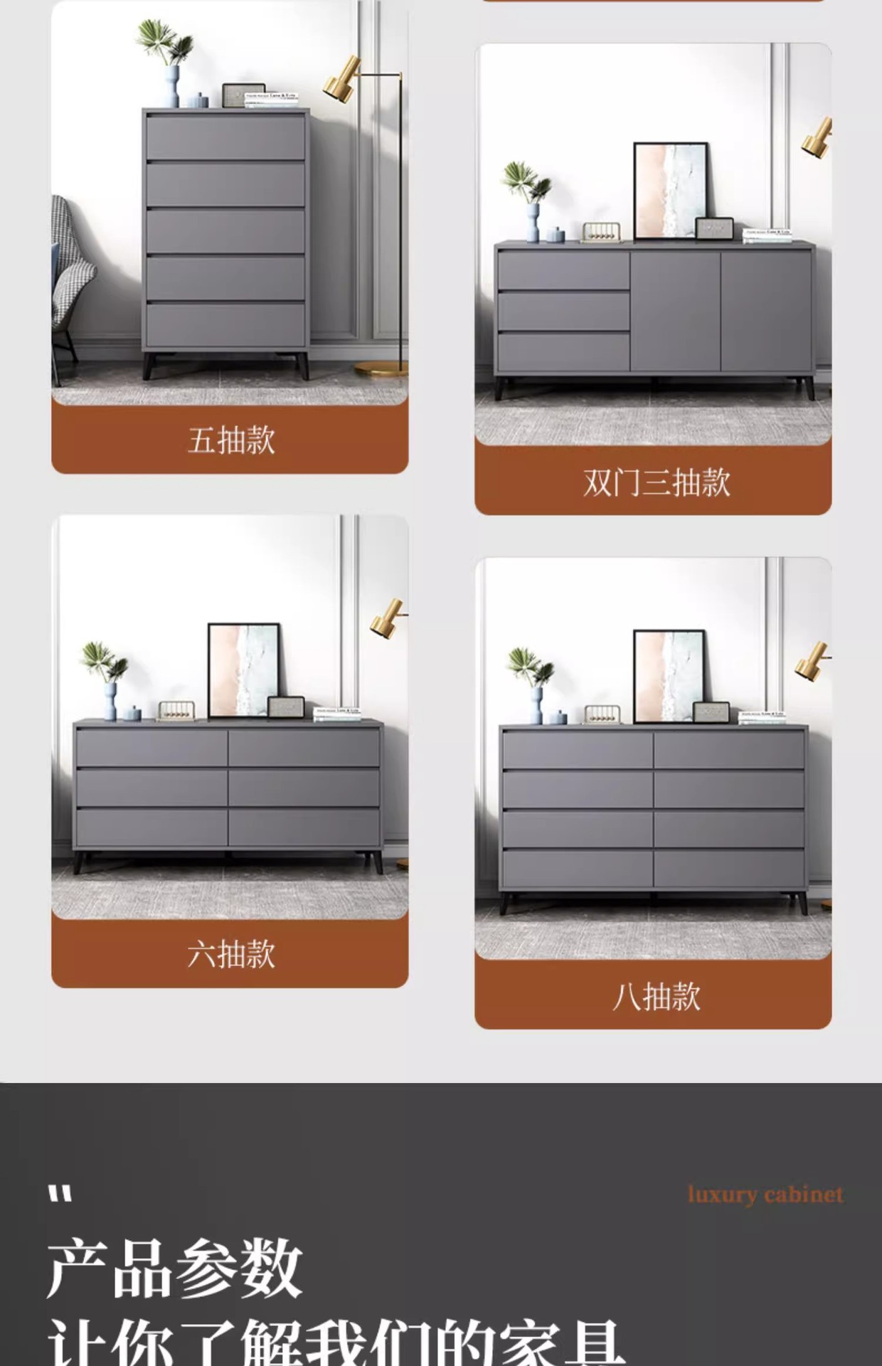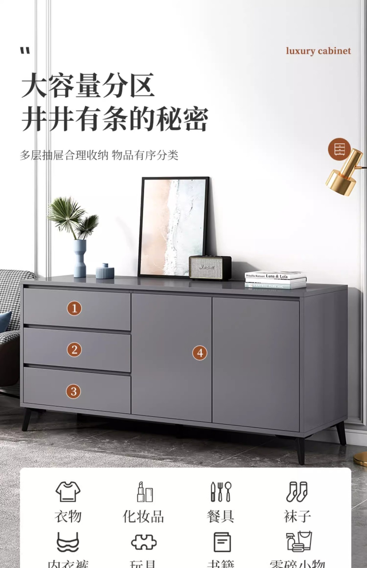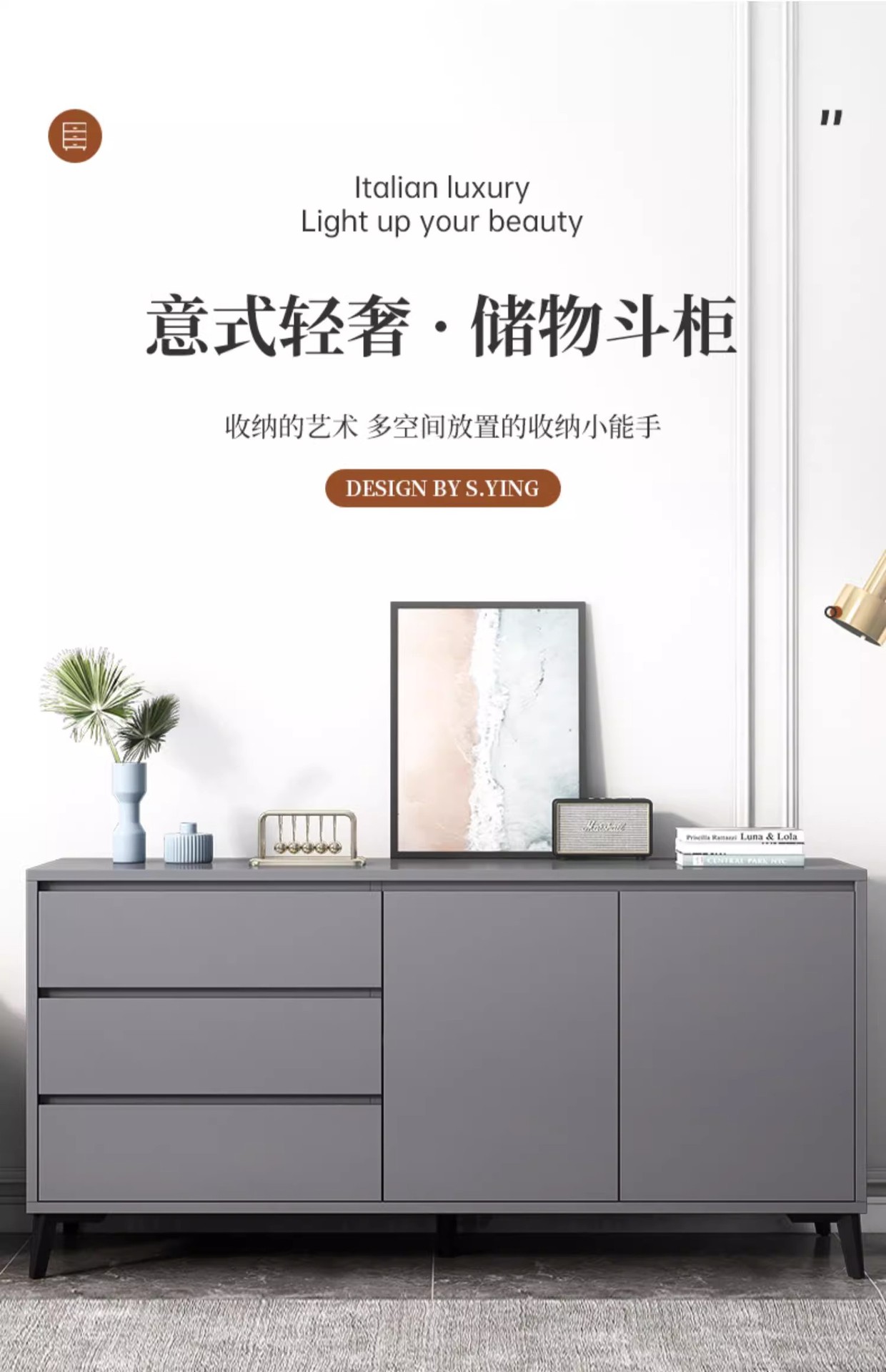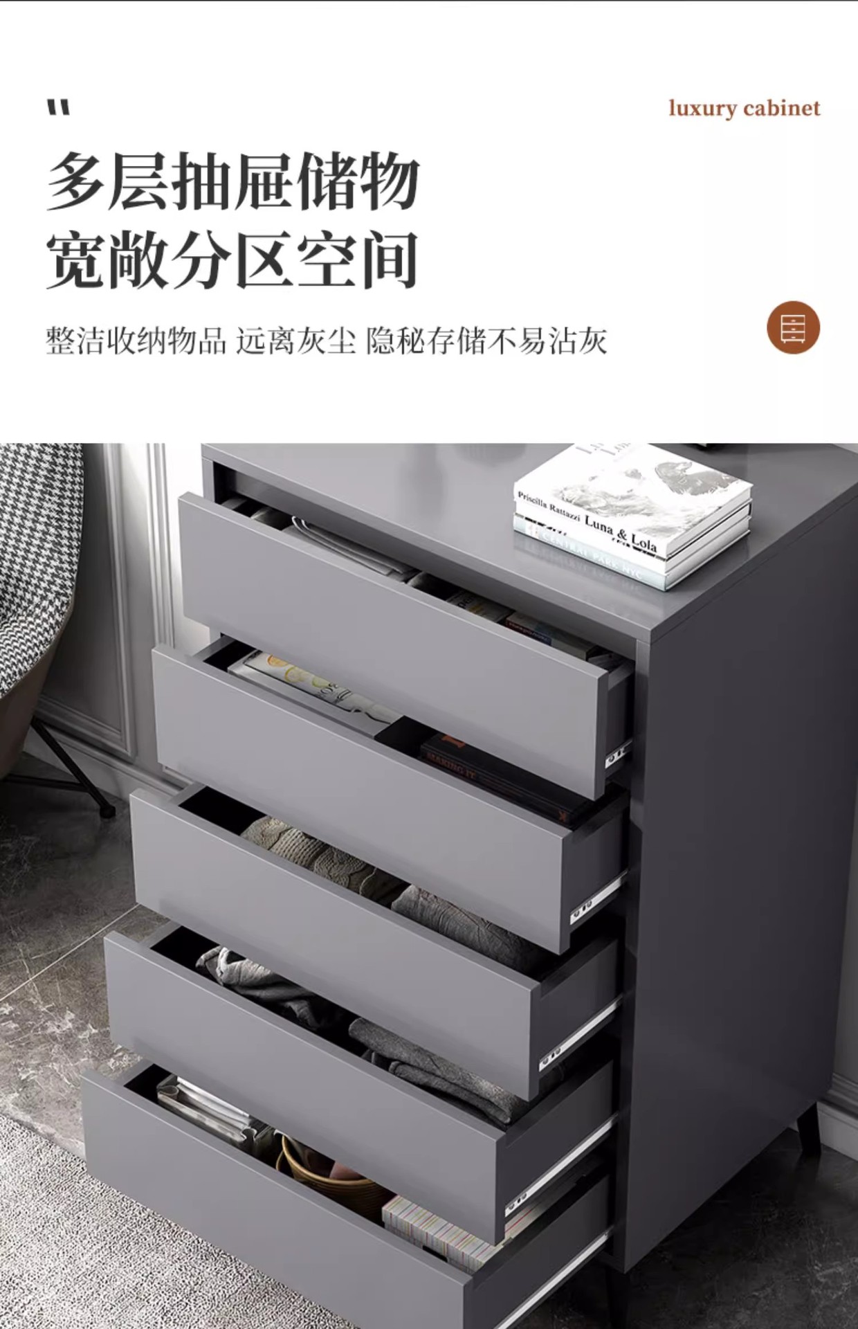 Italiano de lujo ligero dormitorio armario de almacenamiento doméstico sala de estar contra la pared armario de almacenamiento en el cajón de la casa cinco armarios