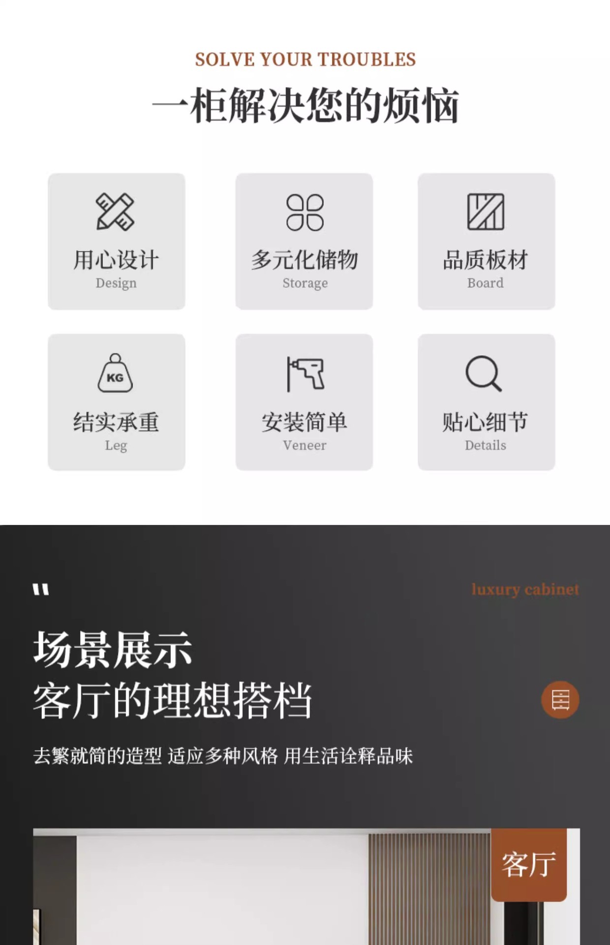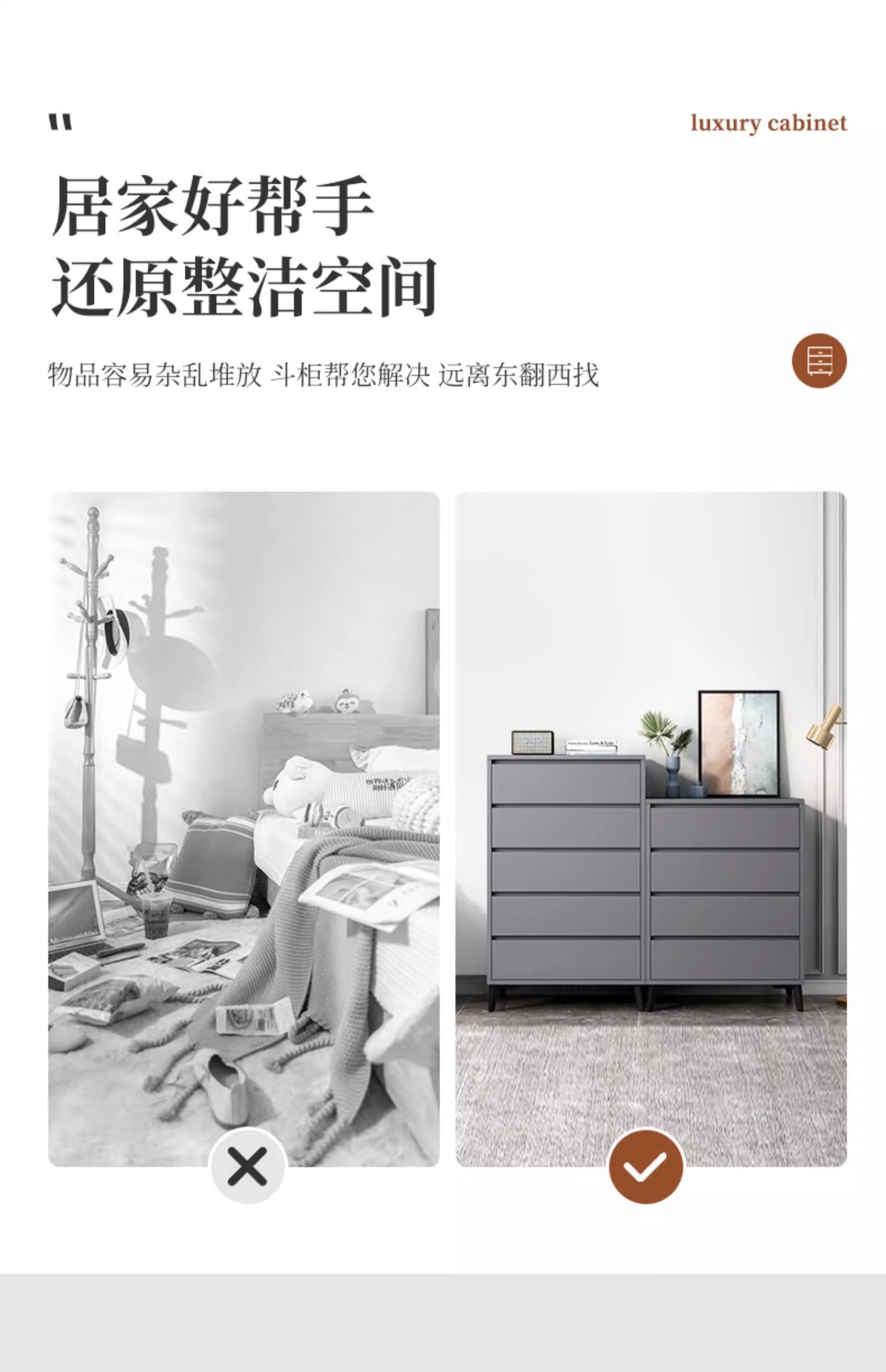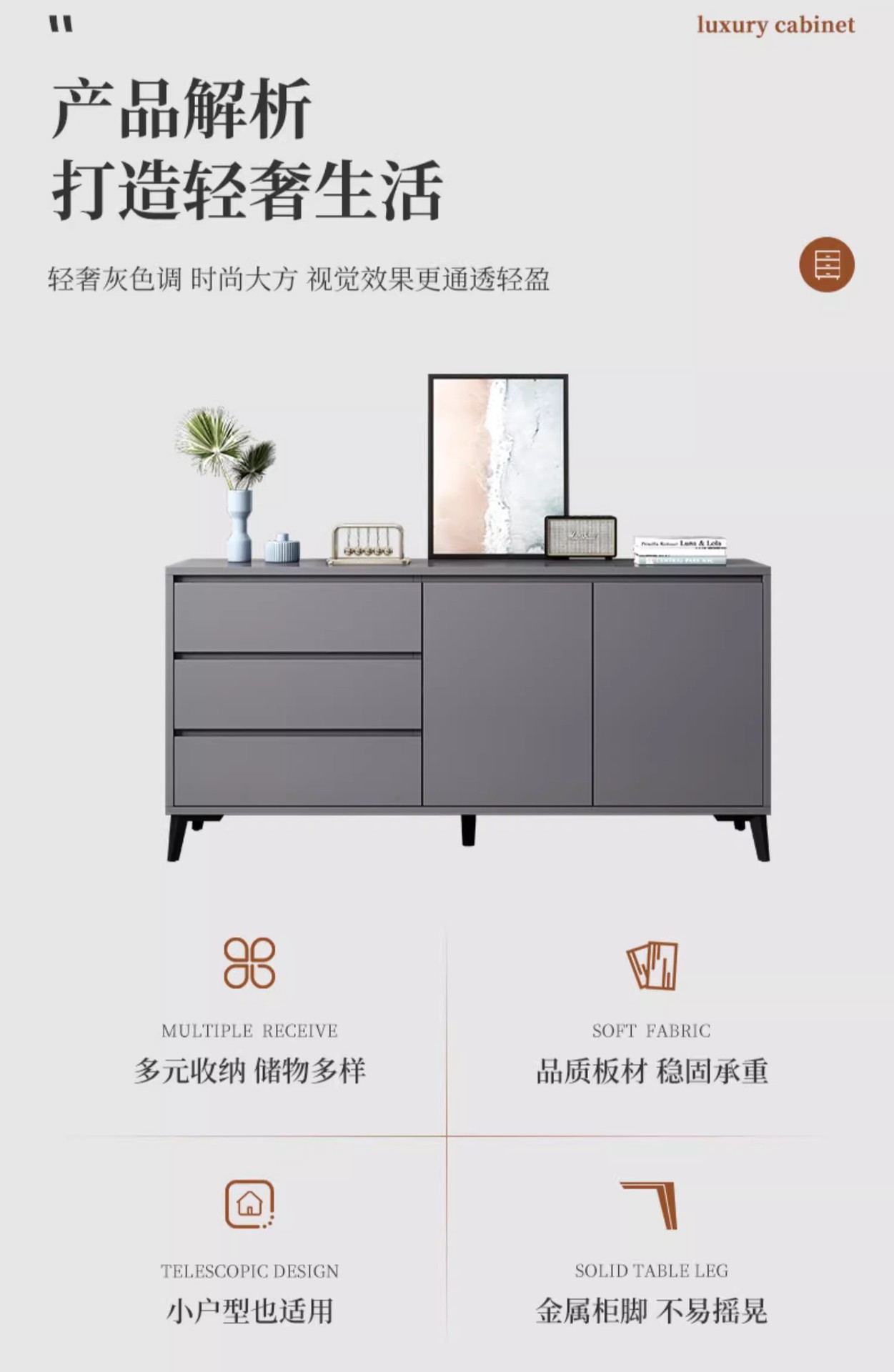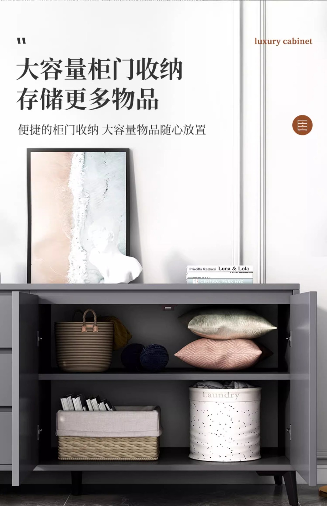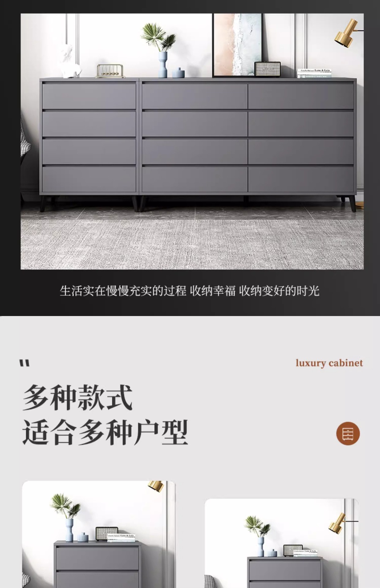 Italiano de lujo ligero dormitorio armario de almacenamiento doméstico sala de estar contra la pared armario de almacenamiento en el cajón de la casa cinco armarios