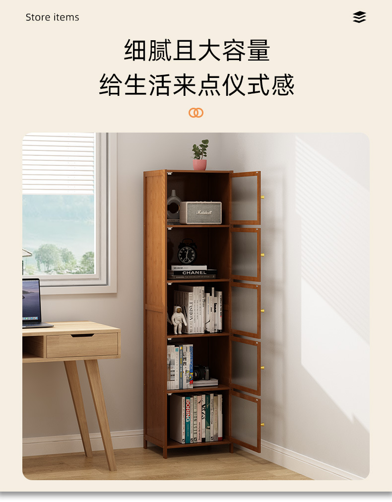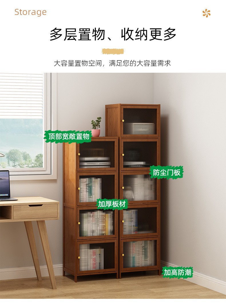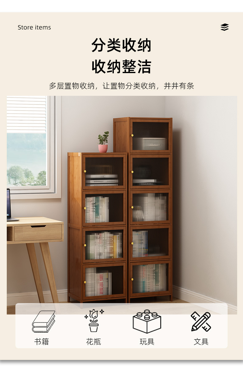 Librería con estante de almacenamiento de puerta, estante de almacenamiento multicapa, armario de almacenamiento de hendidura, gabinete de exhibición de sala de estar, estante de clasificación de estudio doméstico