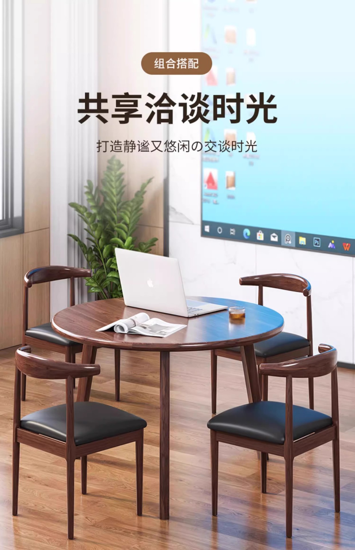 Mesa redonda de recepción de madera maciza mesa de negociación silla combinación de negociación simple mesa de conferencias de oficina mesa de café balcón mesa de té