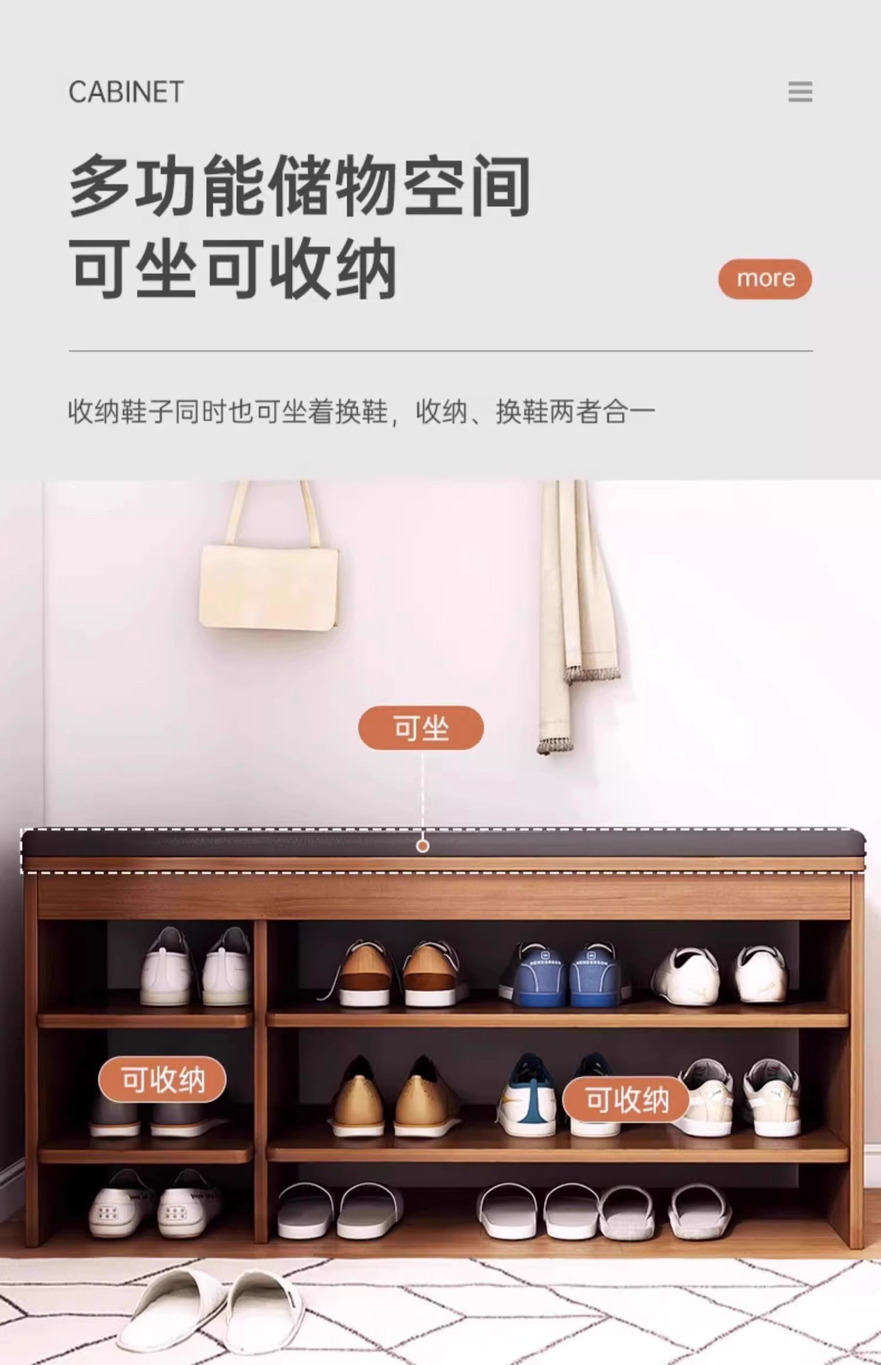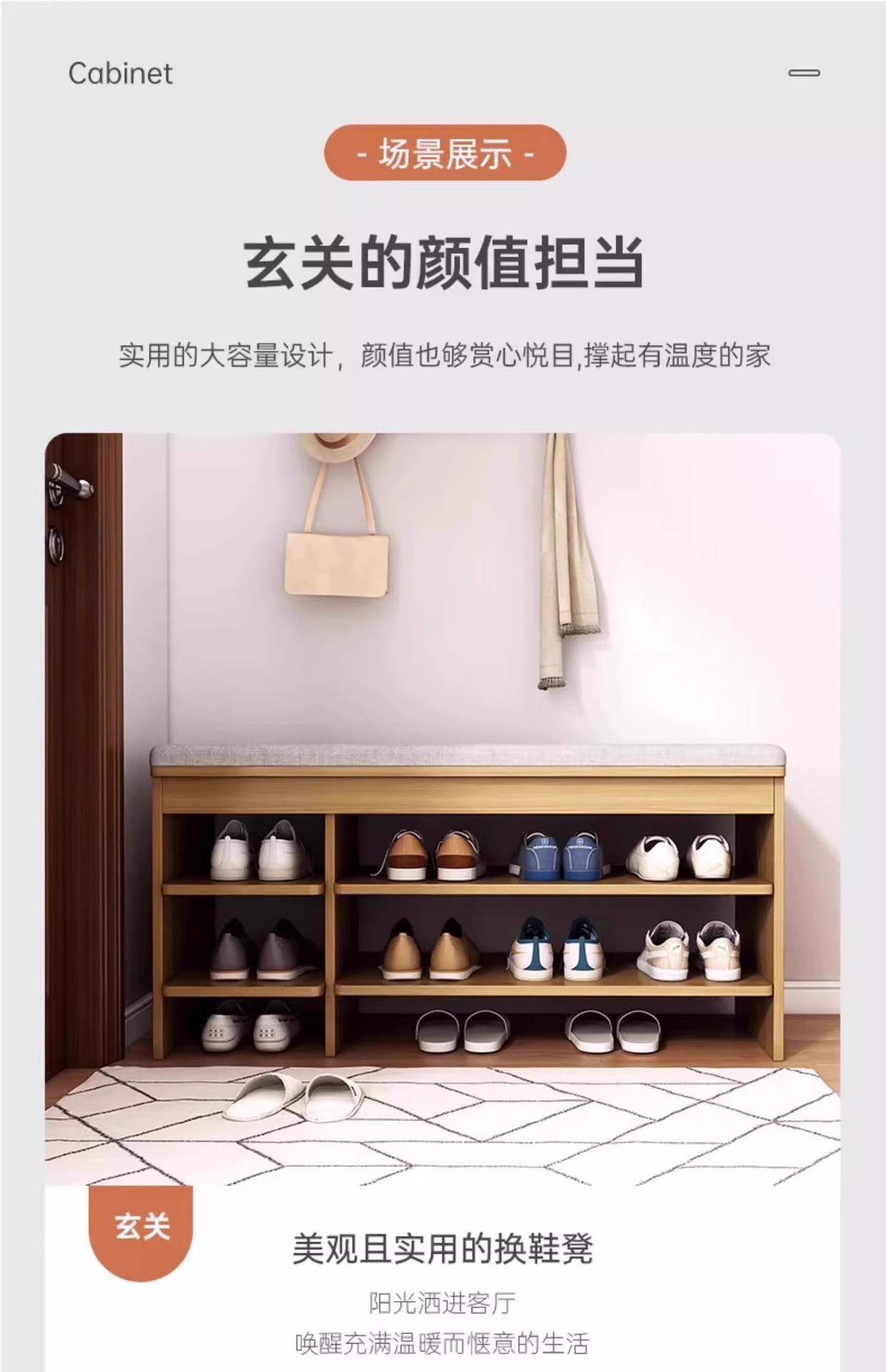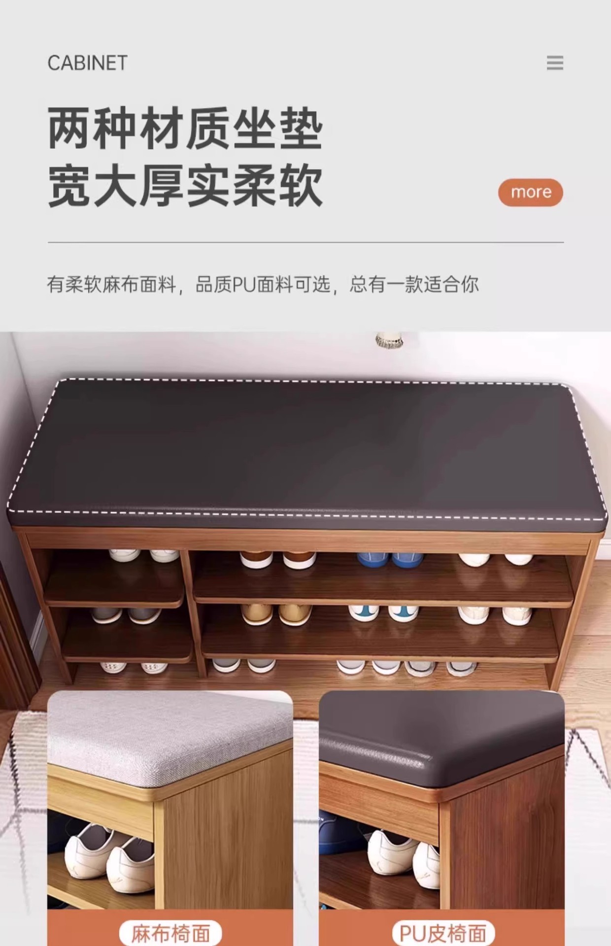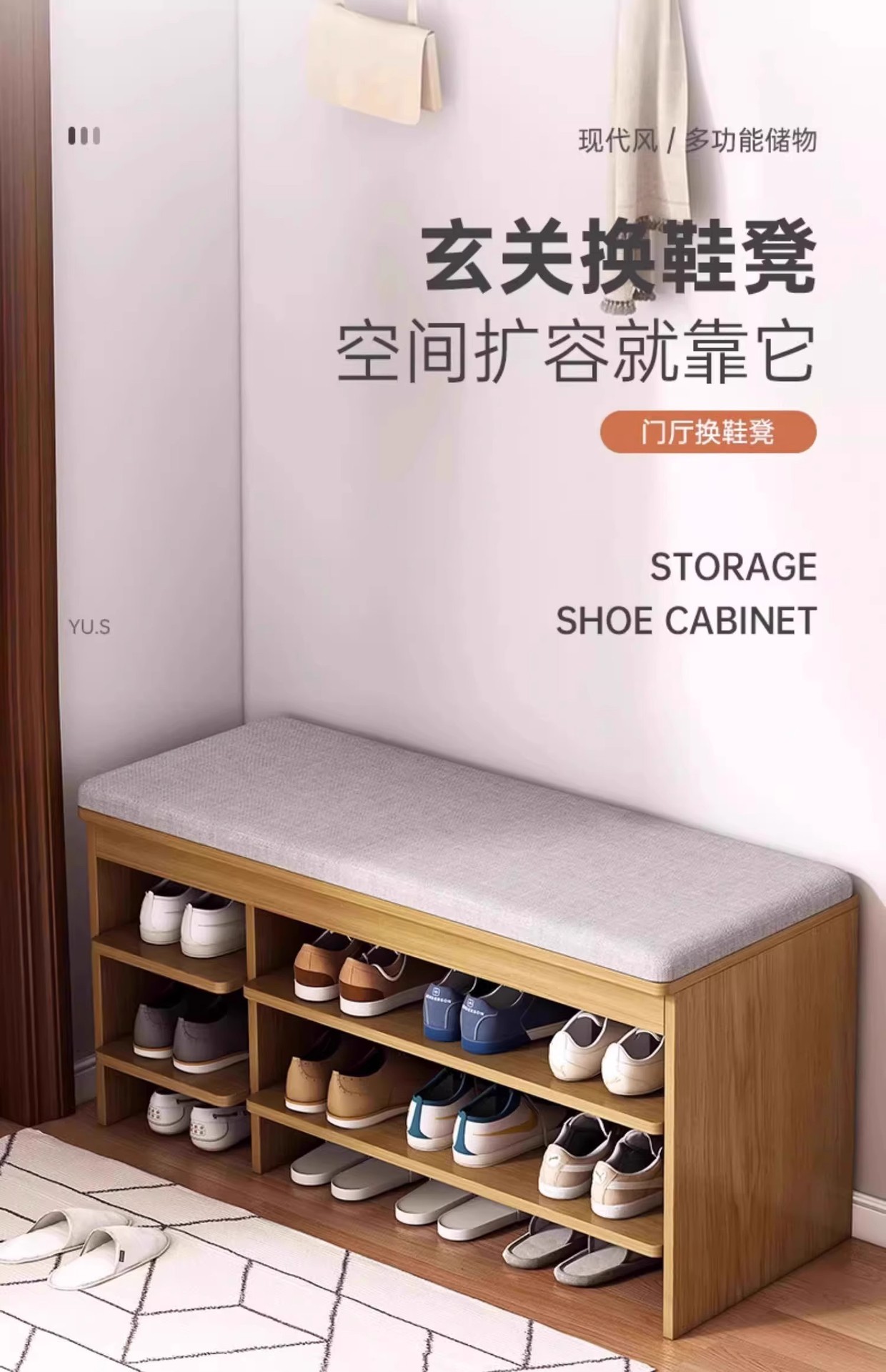 Taburete de cambio de zapatos en la puerta del armario de zapatos doméstico, asiento de asiento integrado, cojín de paquete blando, estante de zapatos, sala de estar, puerta de entrada para usar taburetes de zapatos