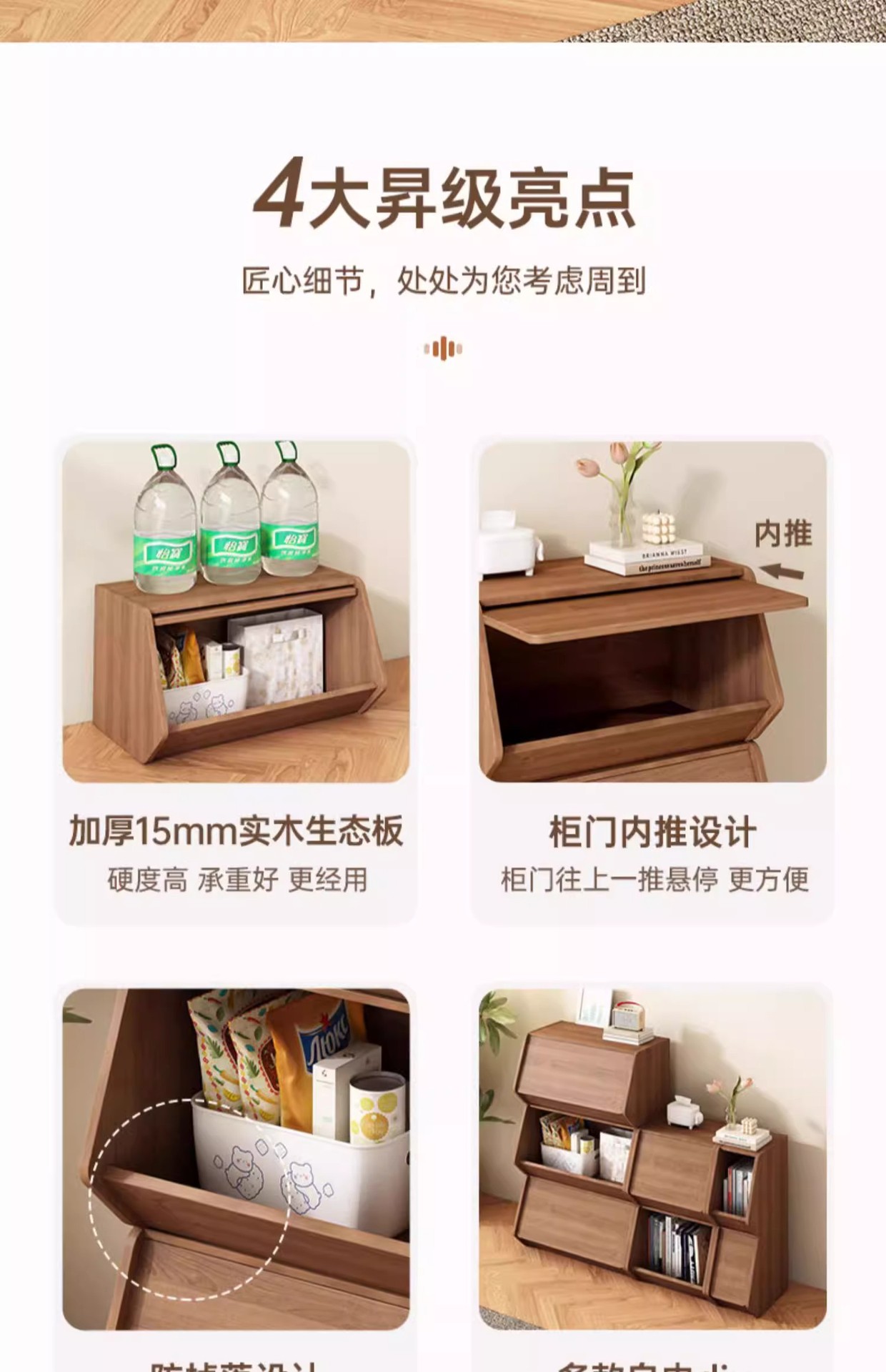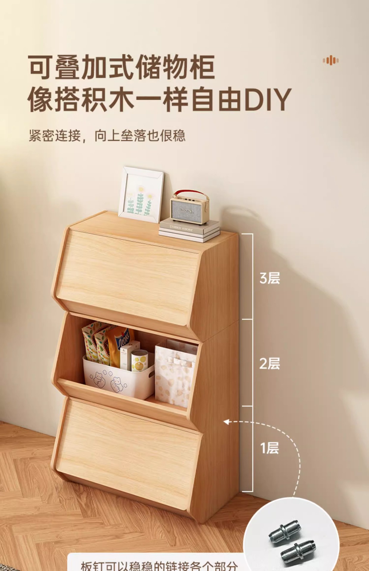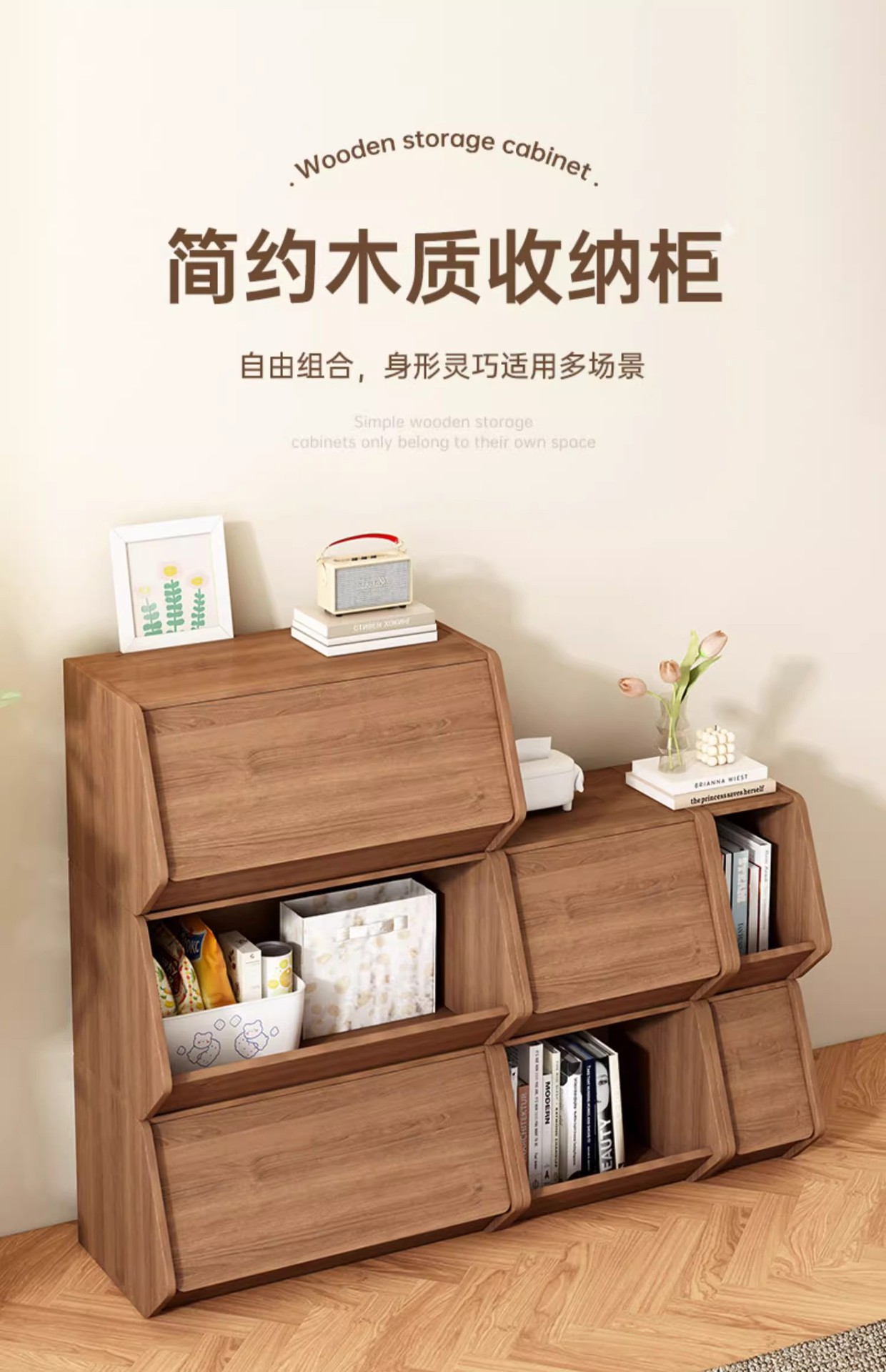 Gabinete de almacenamiento de madera sólida puede superponerse sofá sala de estar gabinete lateral mesas de cabecera juguetes para niños snack armario armario