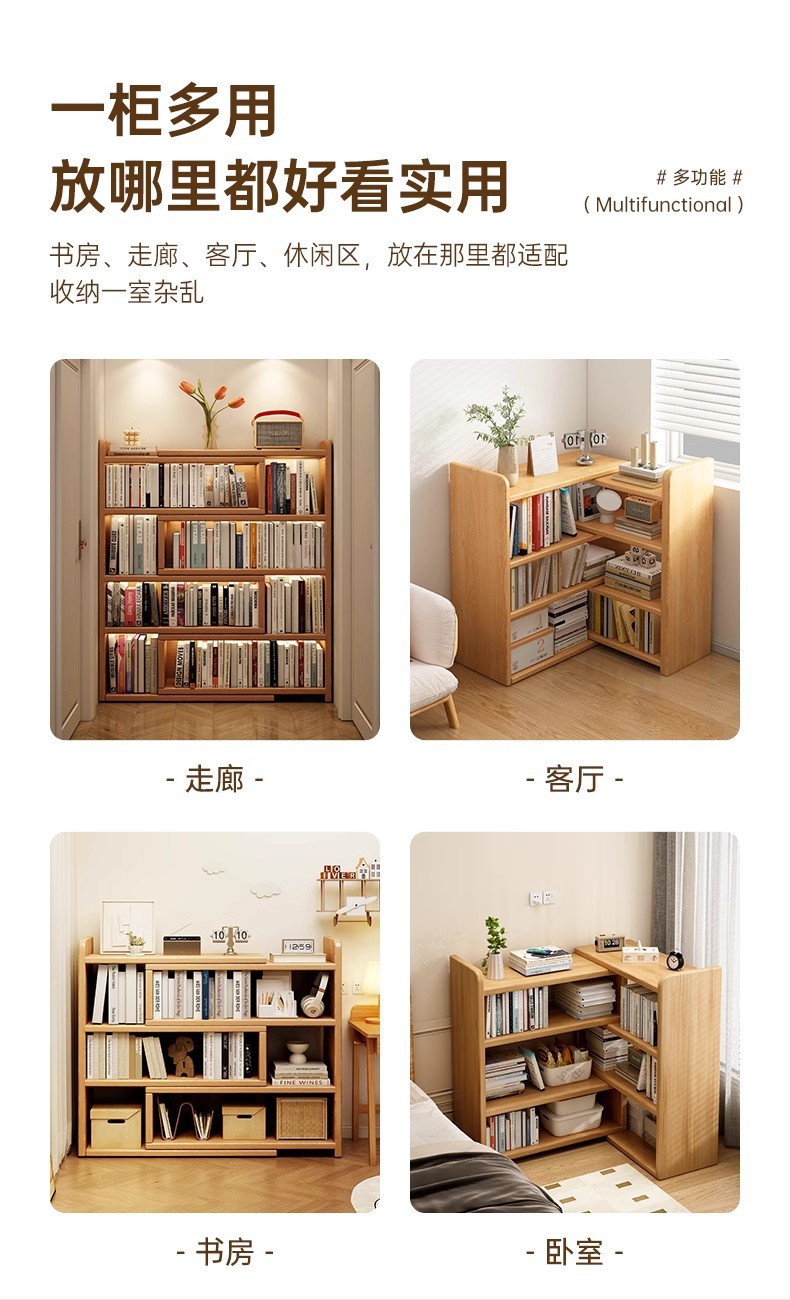 Estante de esquina de madera sólida almacena estante de almacenamiento armario de piso armario de biblioteca doméstico simple armario telescópico de esquina