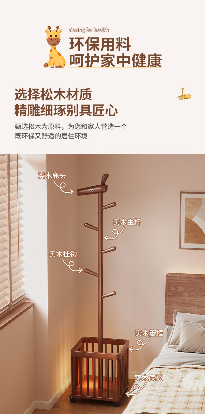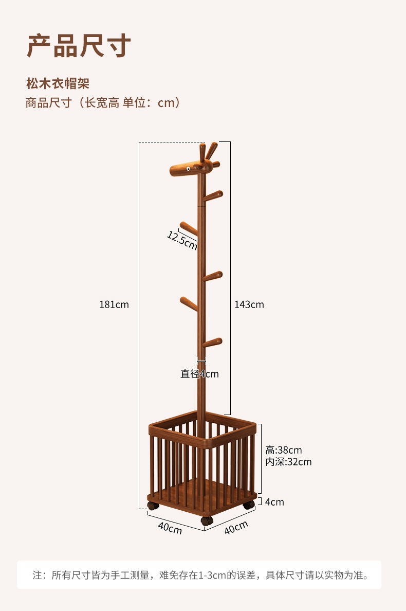 | Color | Estante de ropa de madera maciza de ciervo pequeño 40 * 40 * 181 |