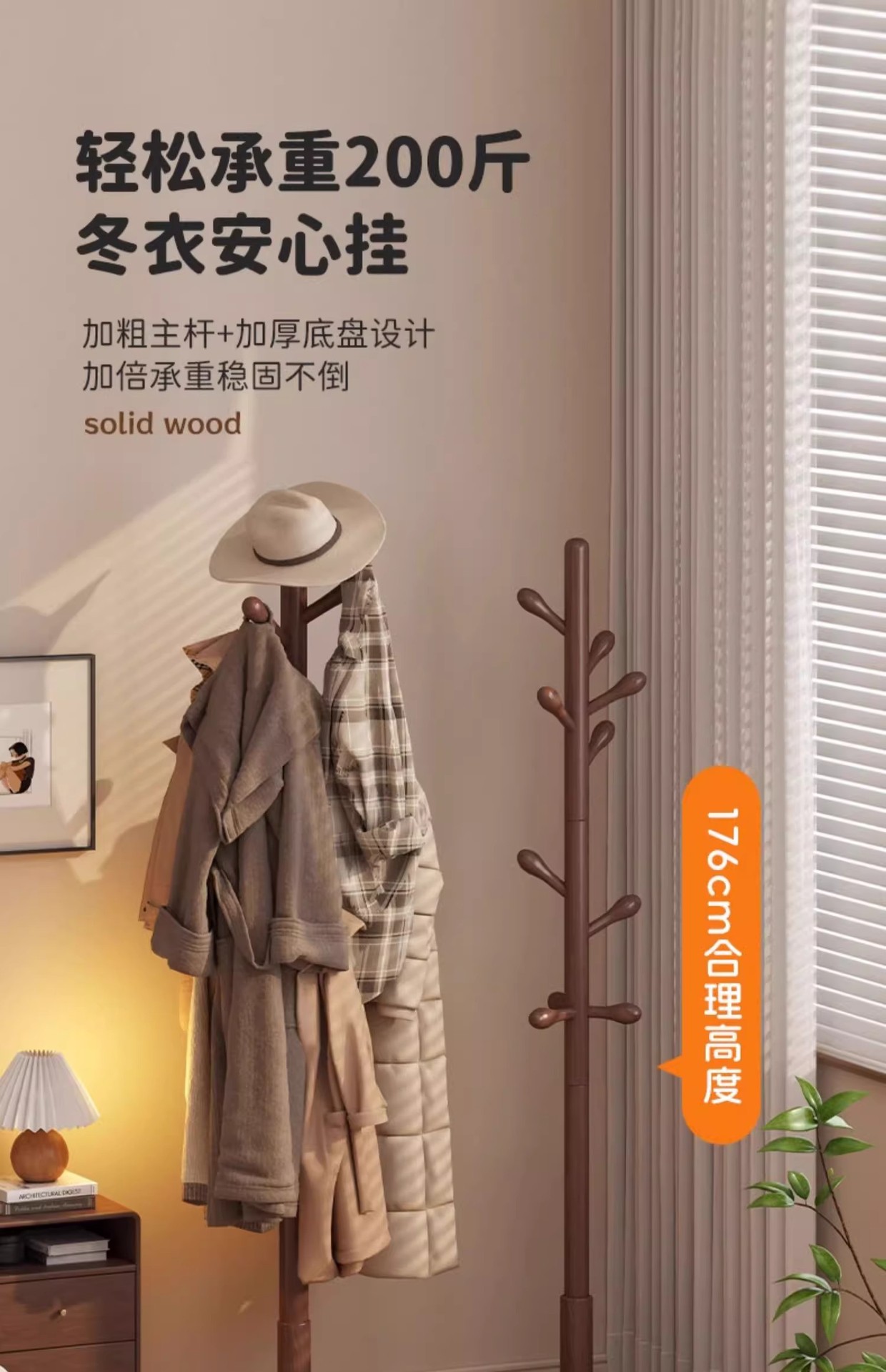 Percha de ropa de madera sólida no ocupa espacio percha de ropa simple percha de ropa percha de sombrero de madera vertical para la sala de estar