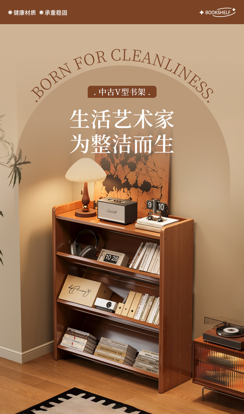 Estante de libros en forma de V piso inclinado estante de almacenamiento vertical integrado armario de almacenamiento sala de estar visualización doméstica almacenar armario multicapa