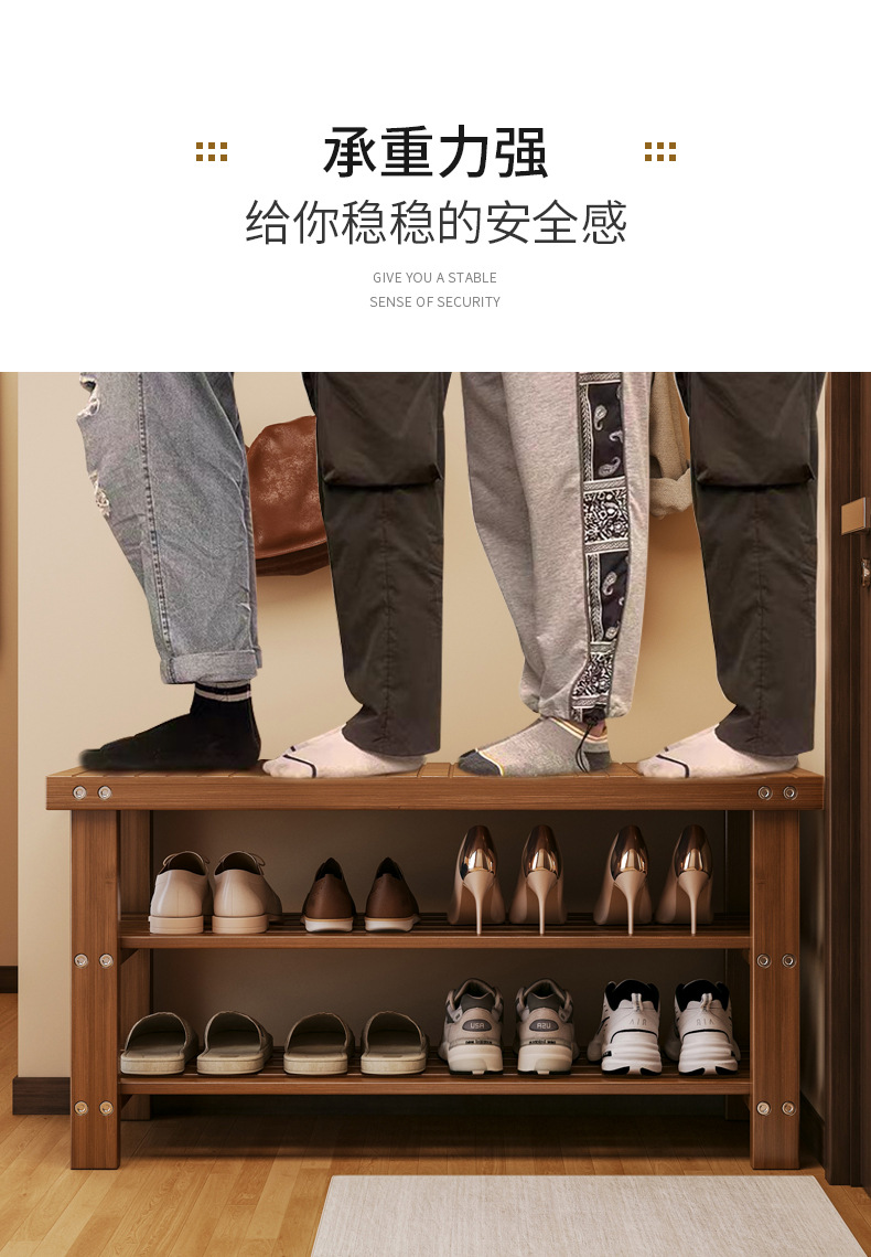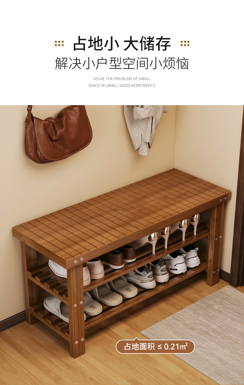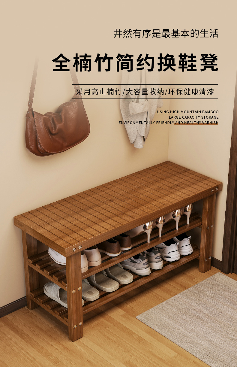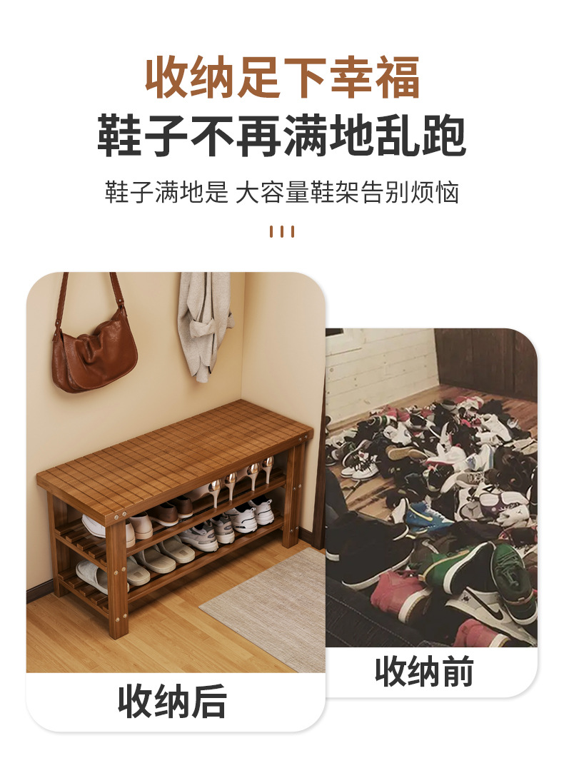 Taburete de asiento en la puerta del armario de zapatos doméstico para almacenar un solo taburete de cambio de zapatos en el hogar multicapa de asiento tipo pasillo interior de madera