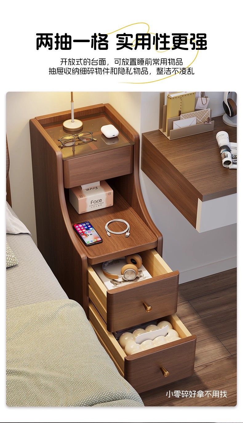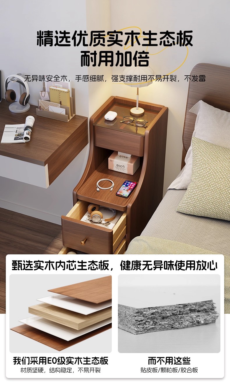 Mesa de cabecera muy estrecha lujosa ligera alta sensación móvil pequeño dormitorio doméstico de hendidura muy estrecha armario de cabecera armario de almacenamiento