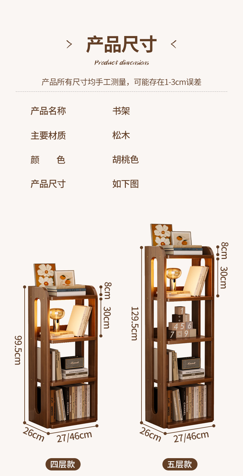 | Color | Estantería de madera de pino 4 capas 27cm, estantería de madera de pino 4 capas 43cm, estantería de madera de pino 5 capas 27cm, estantería de madera de pino 5 capas 43cm, estantería de madera de pino 6 capas 27cm, estantería de madera de pino 6 capas 43cm |