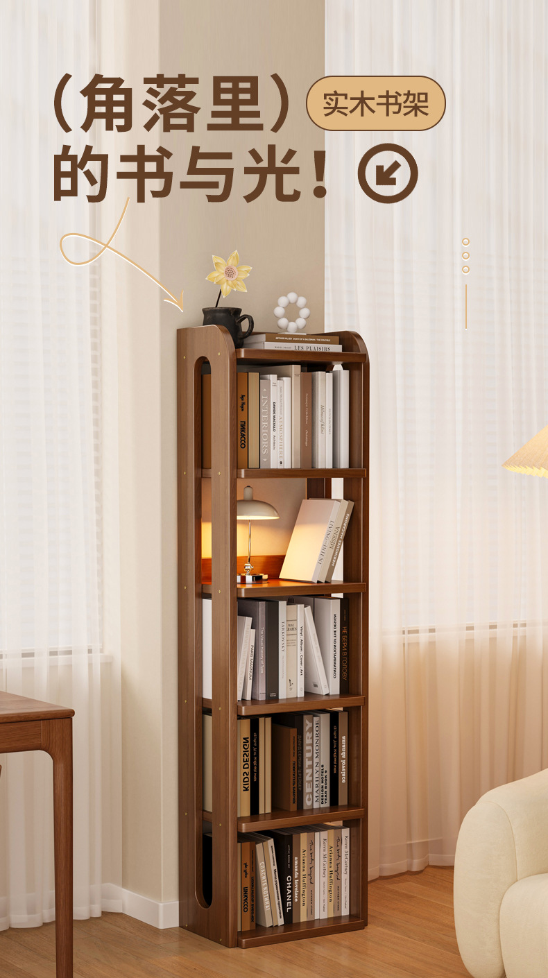Estante multicapa de piso de madera sólida para ahorrar espacio en la esquina del libro ilustrado simple estante de almacenamiento de estante de almacenamiento de estante