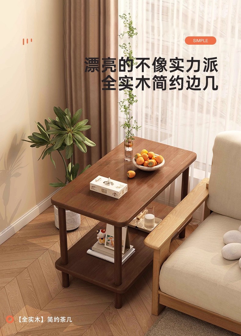 Sofá de madera sólida mesas laterales de la sala de estar de alquiler simple muy estrecha mesas de té pequeñas mesas cuadradas de doble capa