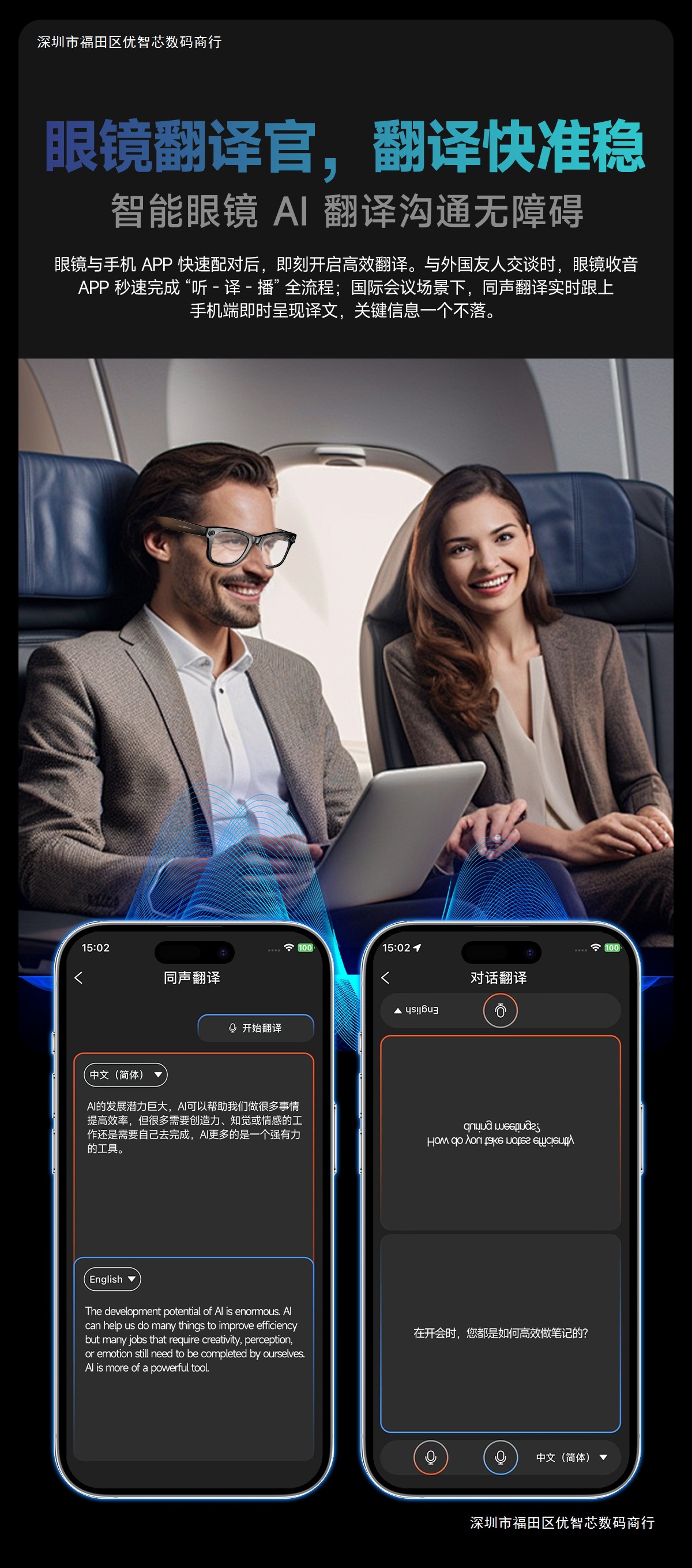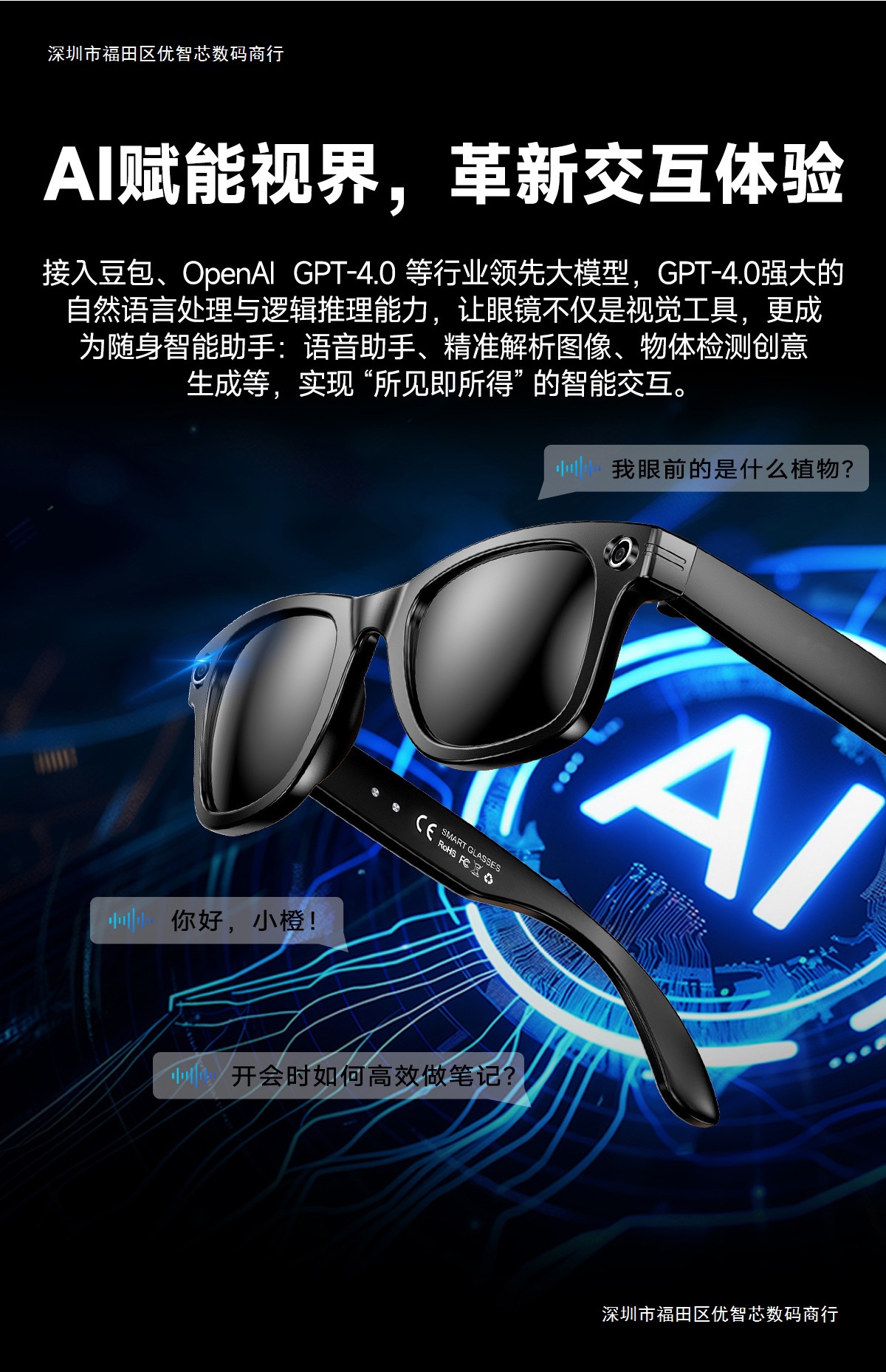W610 8 megapíxeles AI fotografía gafas inteligentes Bluetooth llamada negra tecnología gafas de sol UV
