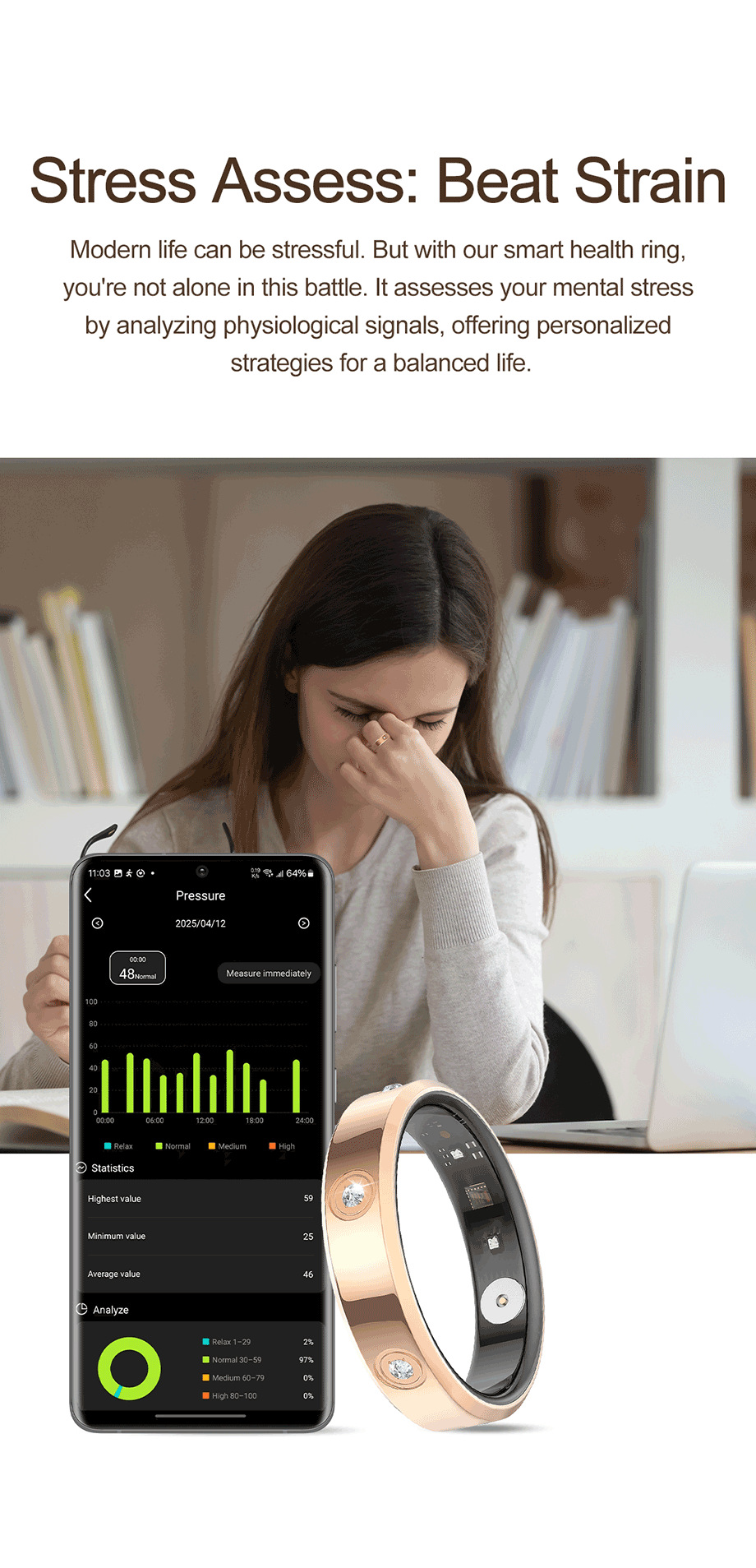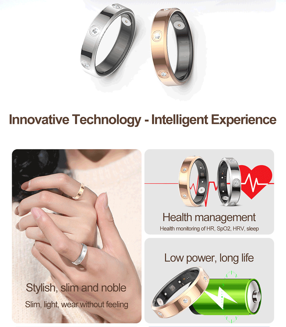 Nuevo anillo inteligente transfronterizo HR01, frecuencia cardíaca, sueño, monitoreo de oxígeno en sangre, conteo de pasos, moda deportiva, anillo inteligente con diamantes