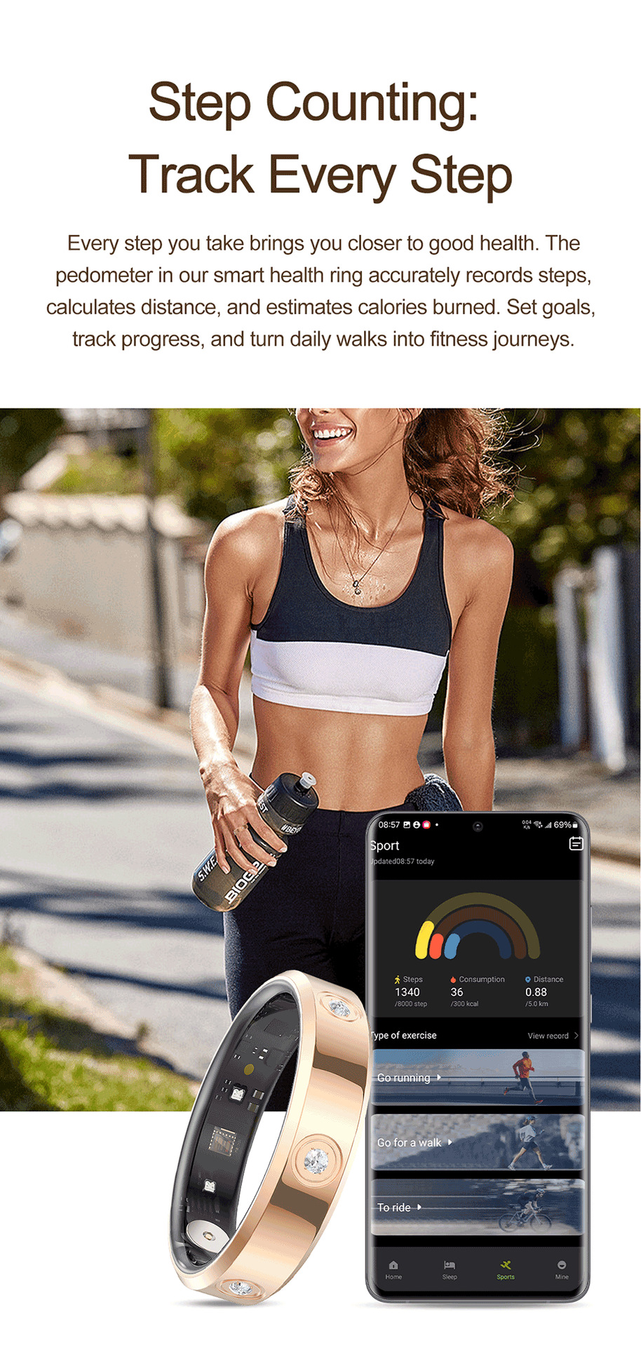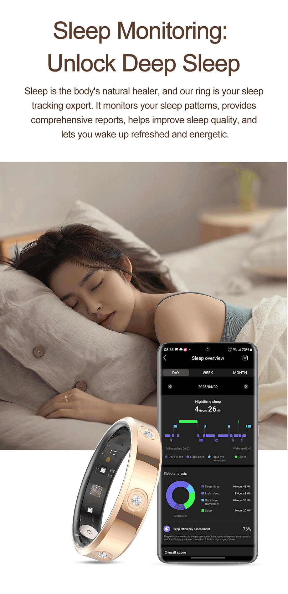 Funciones adicionalesPasos de monitoreo de oxígeno en sangre de sueño de frecuencia cardíaca