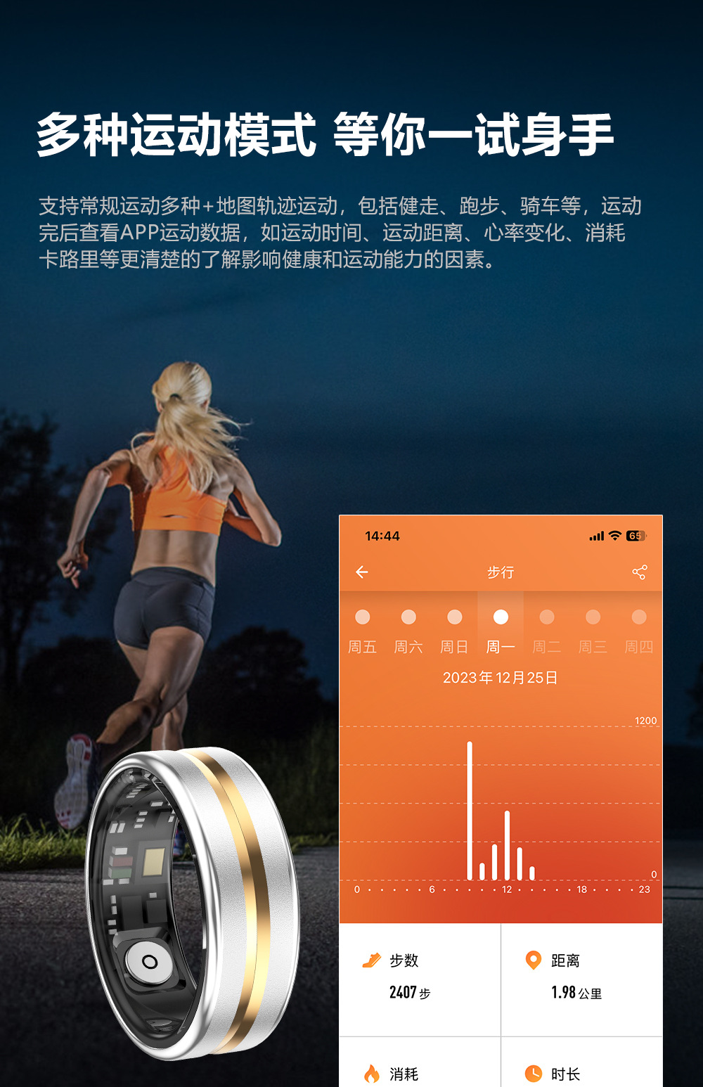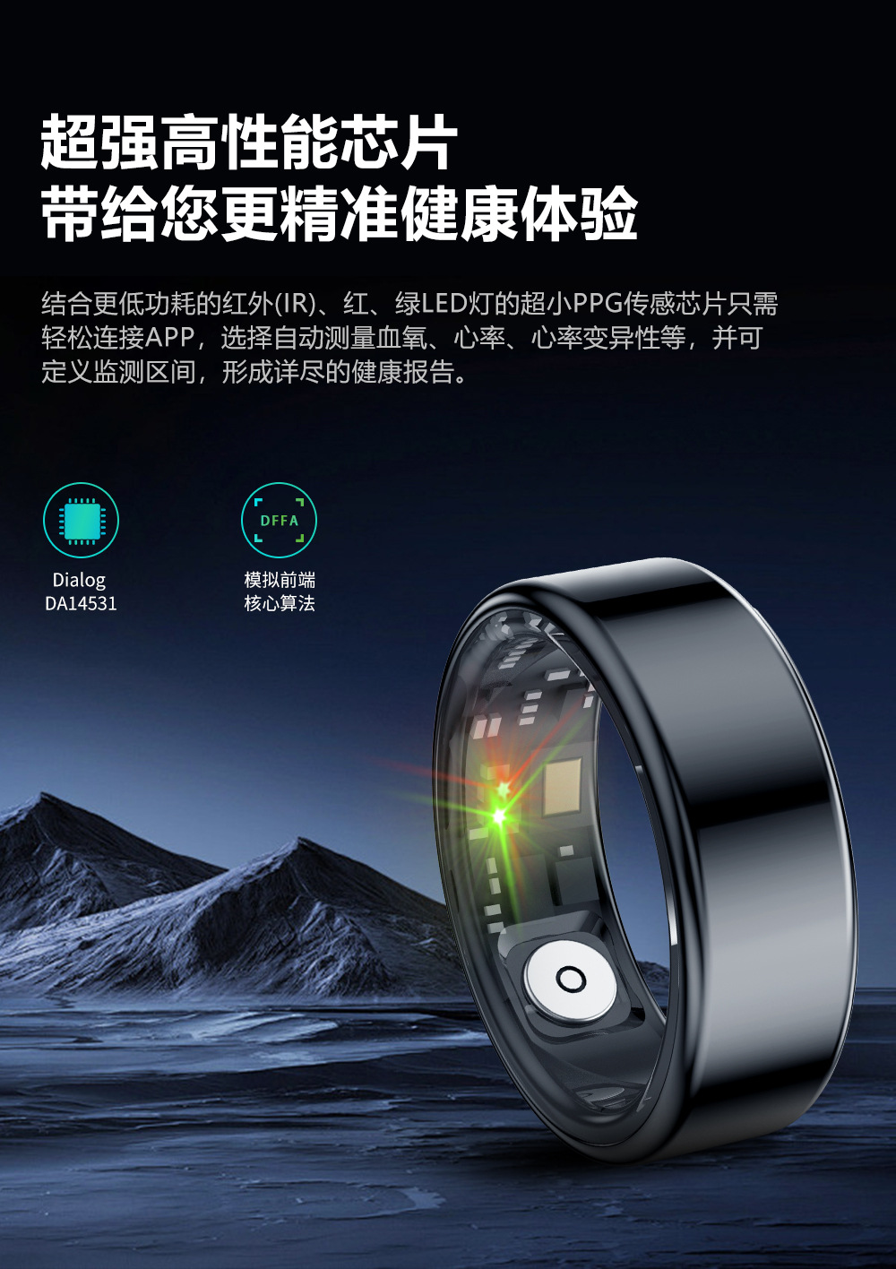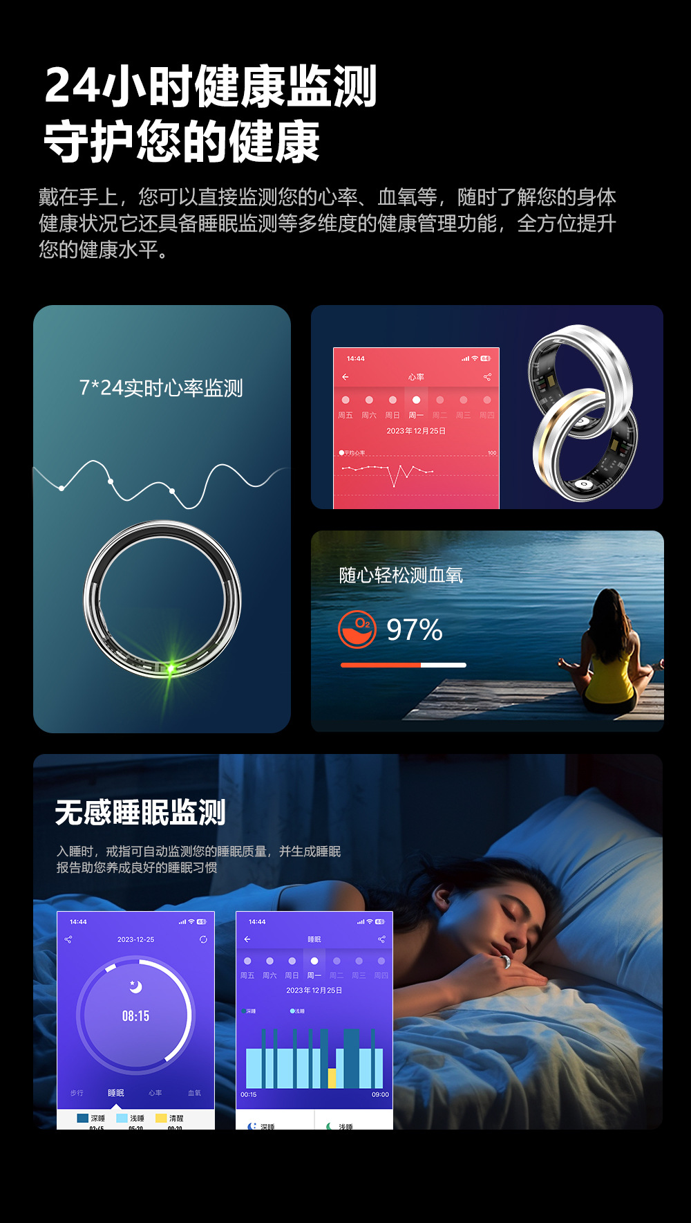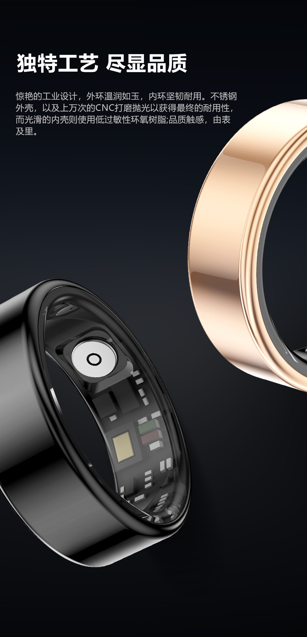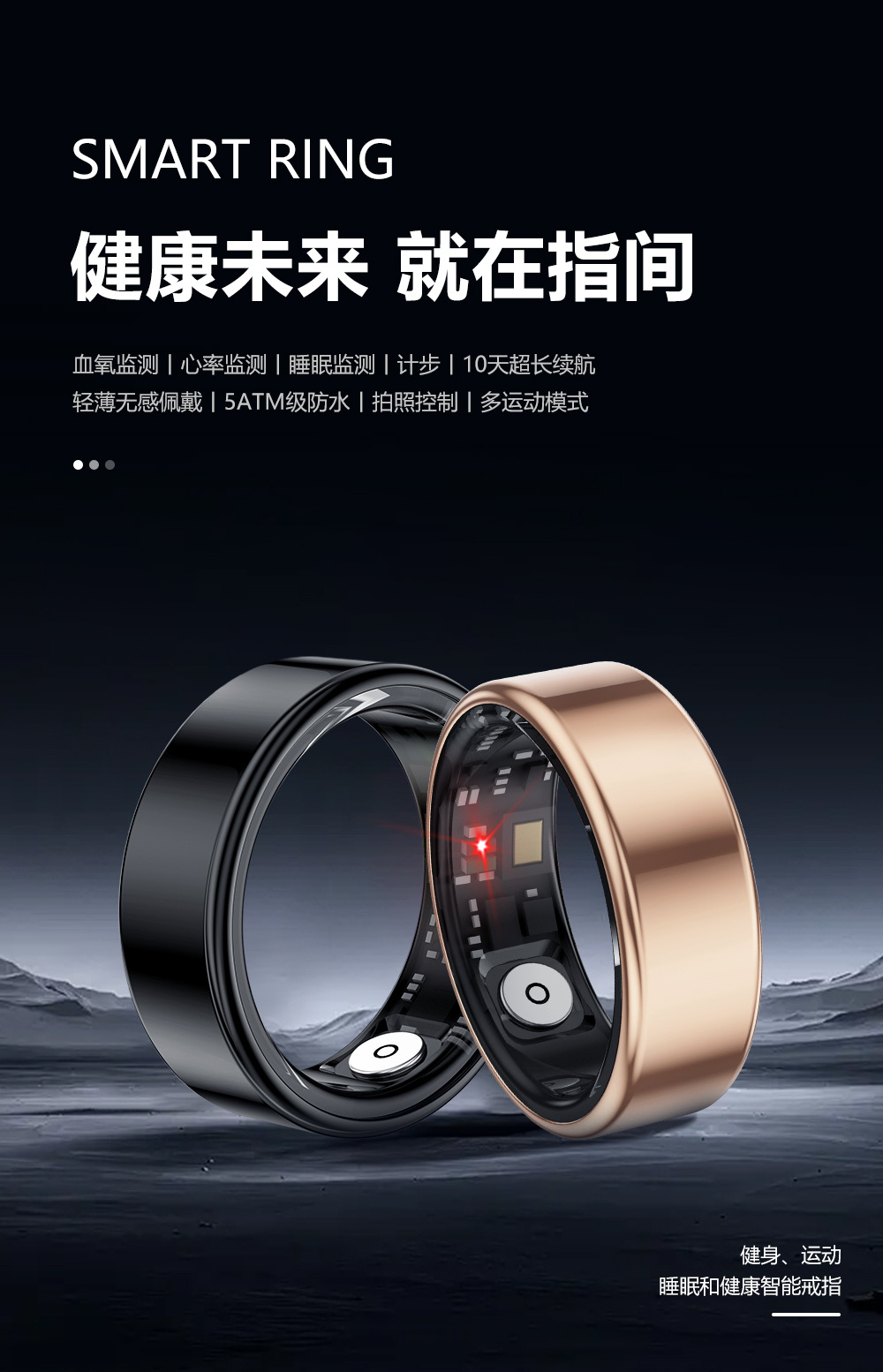 Anillo inteligente transfronterizo frecuencia cardíaca oxígeno sangre salud monitoreo del sueño hombre y mujer tecnología negra impermeable Bluetooth anillo deportivo