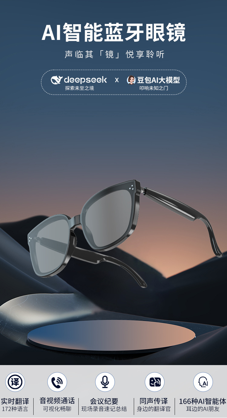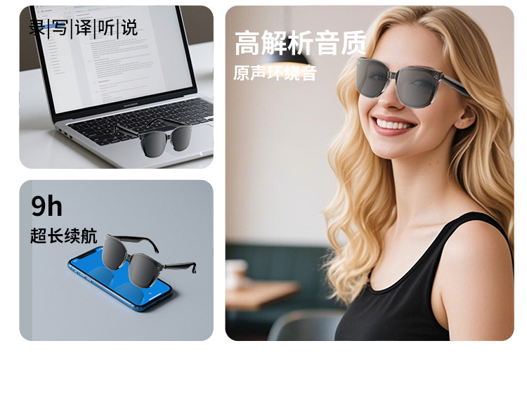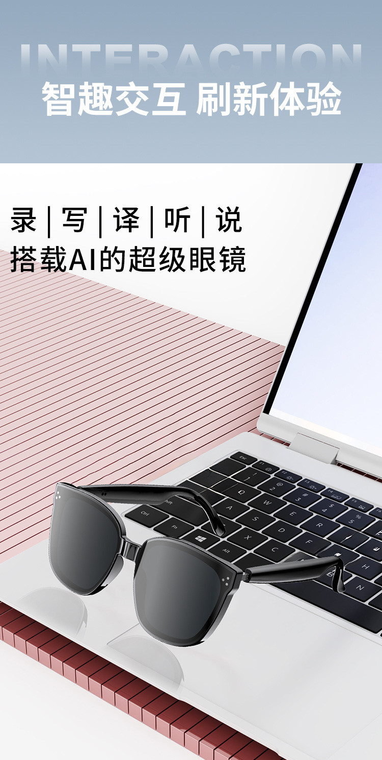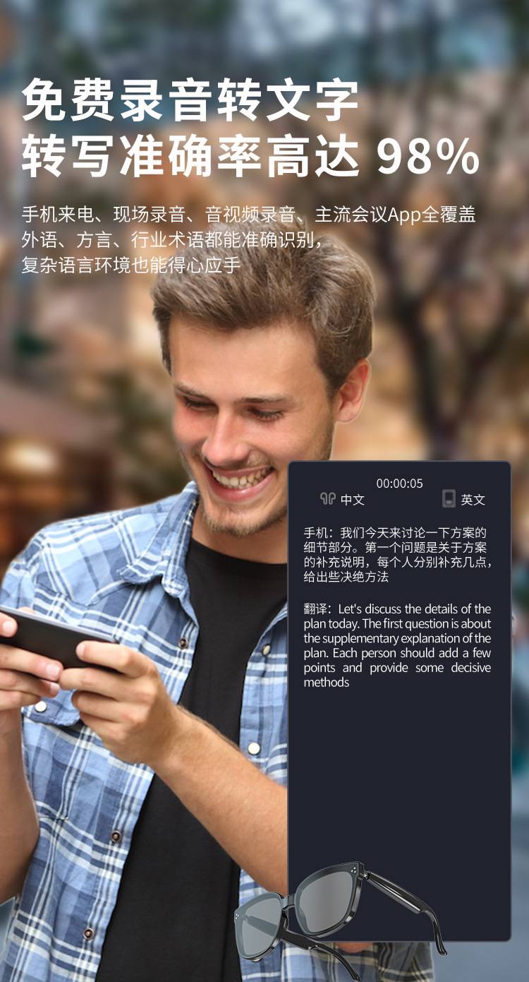 Auriculares y gafas de traducción Bluetooth inteligente HY-1008AI, soporte integrado de traducción de voz múltiple, registros de reuniones de viaje
