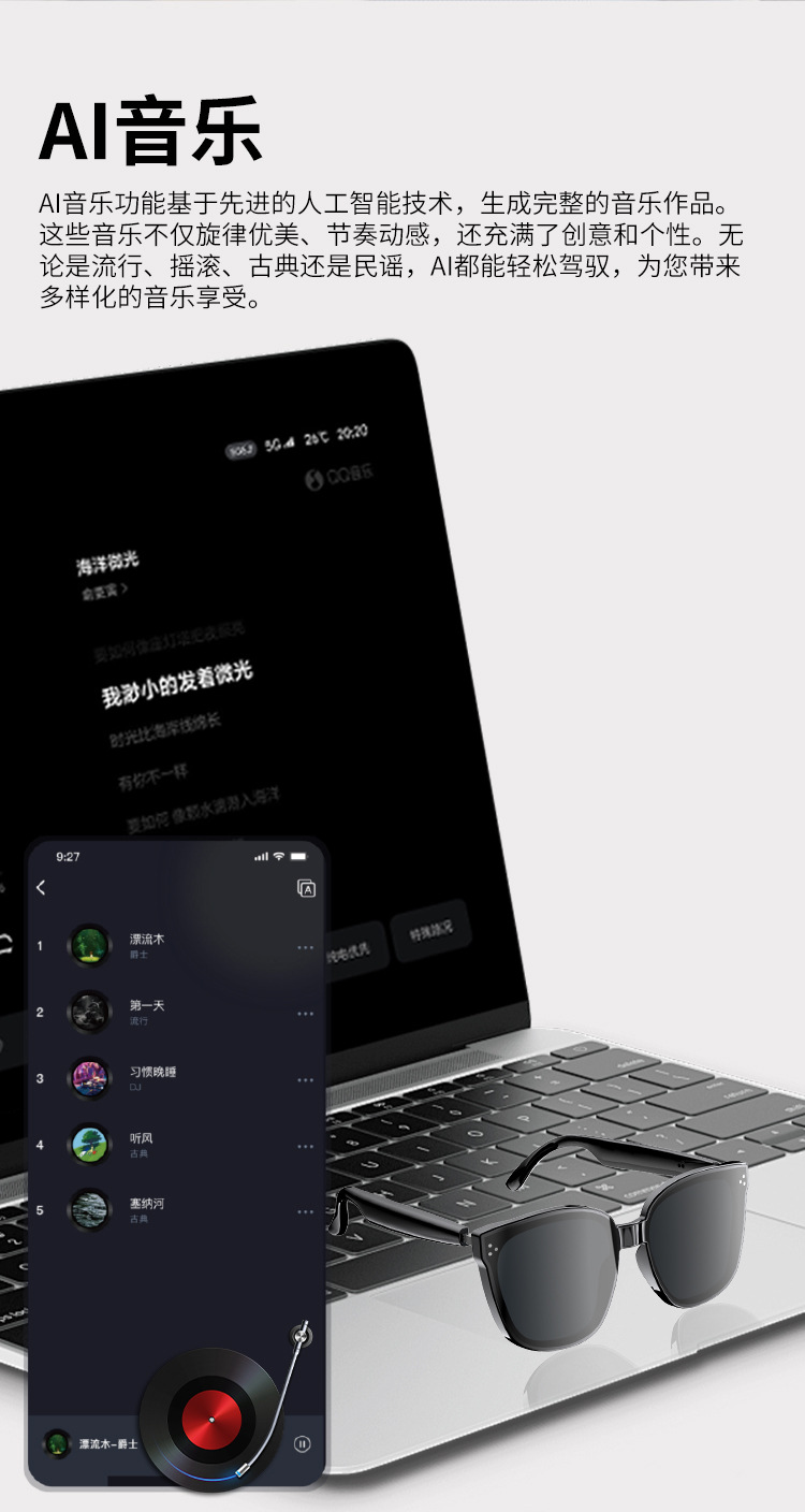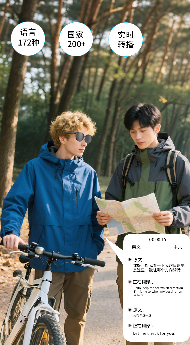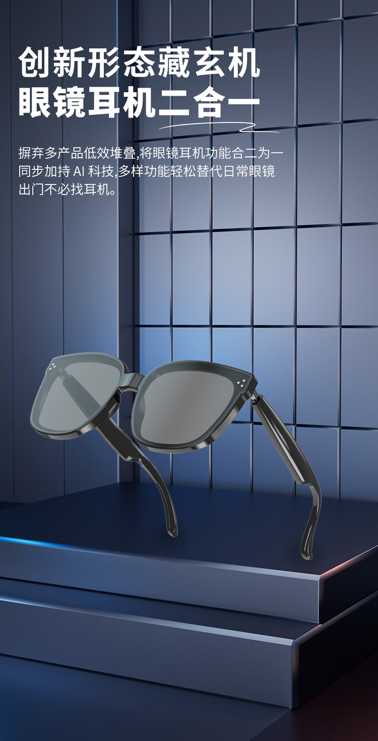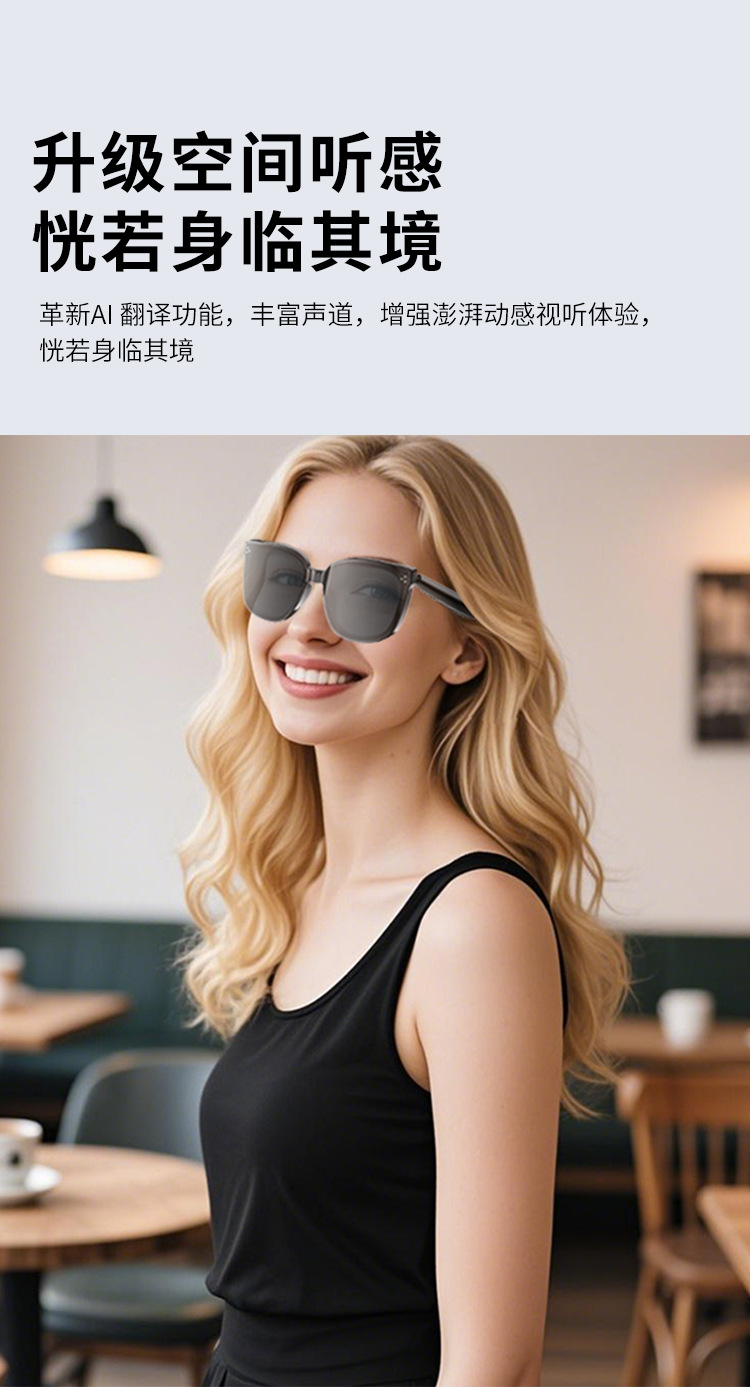 Auriculares y gafas de traducción Bluetooth inteligente HY-1008AI, soporte integrado de traducción de voz múltiple, registros de reuniones de viaje