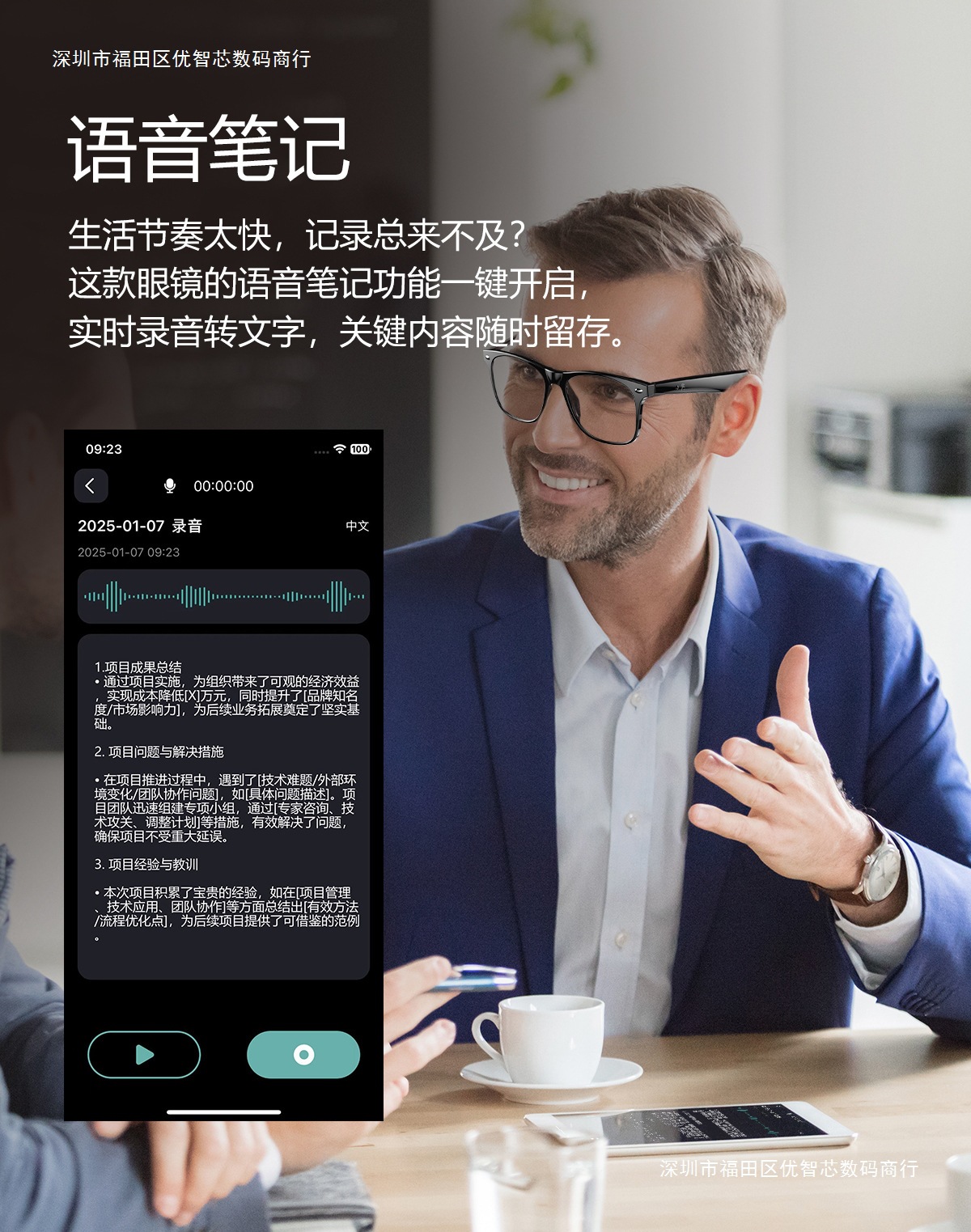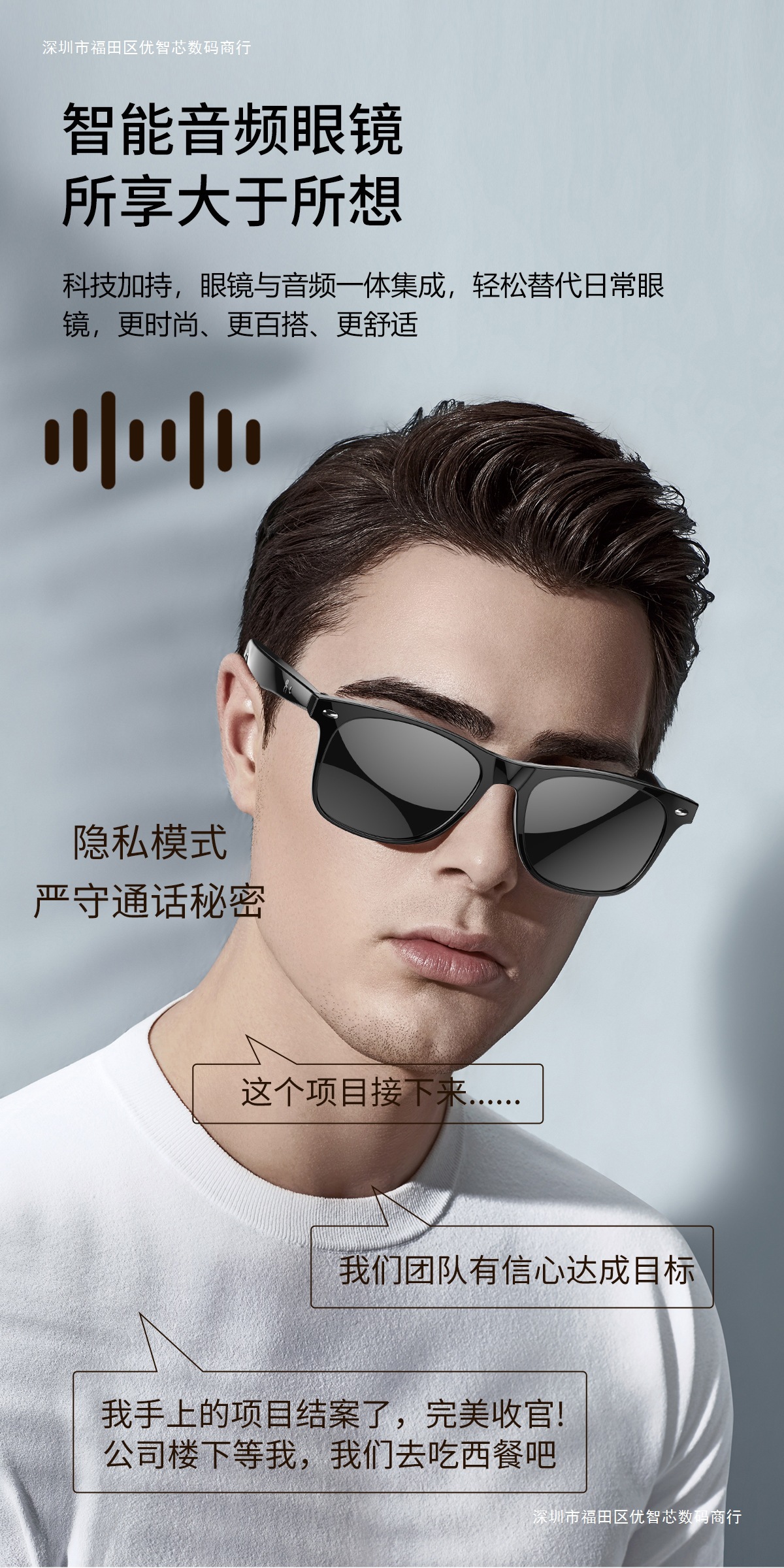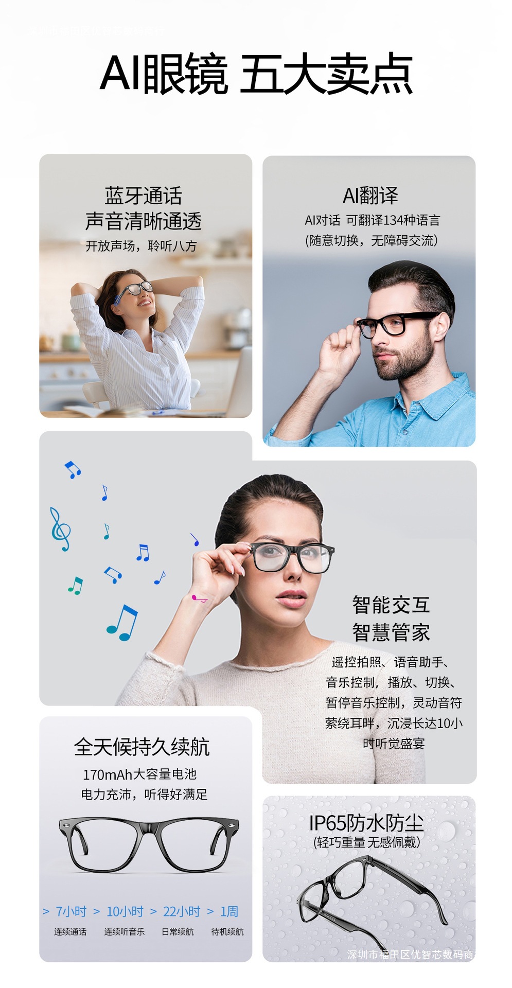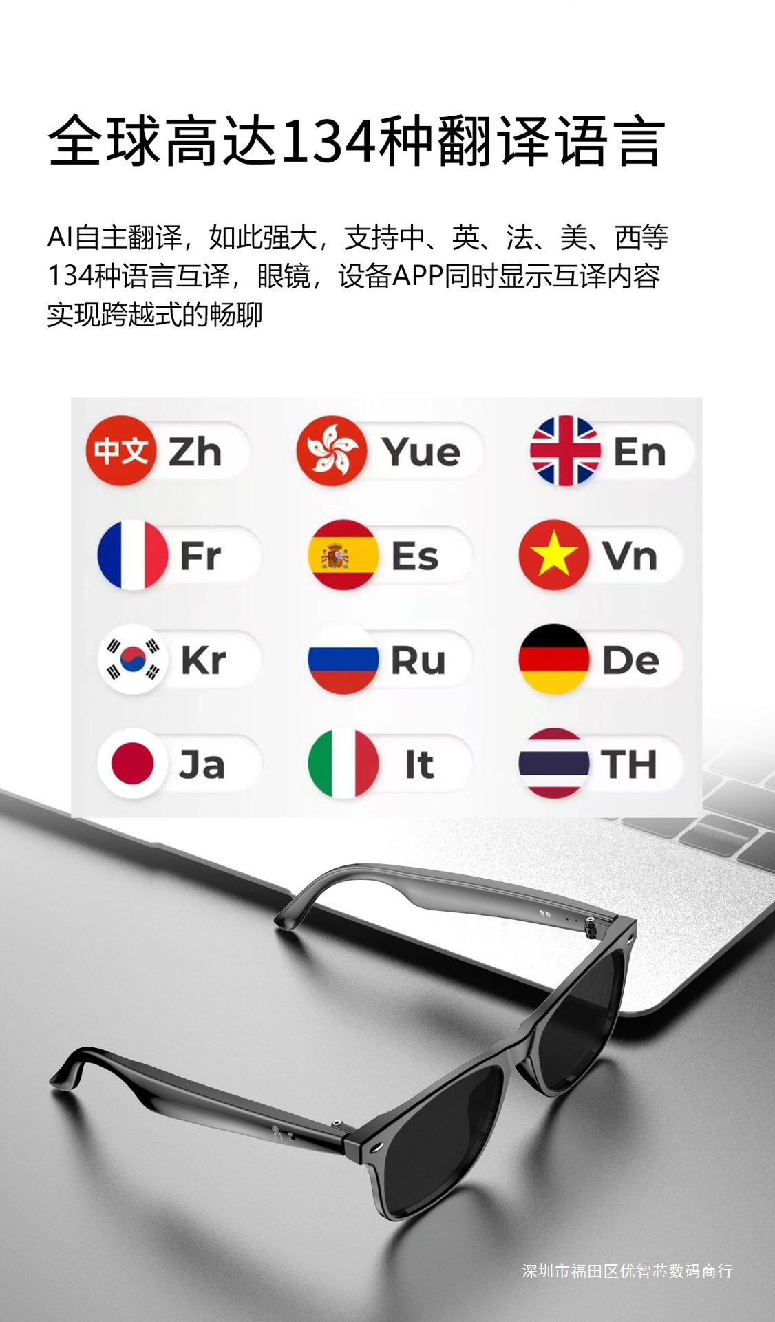 W100 Smart AI Translation Bluetooth Call Moda Deportes Oficina Negocios Reproducción de música Gafas inteligentes