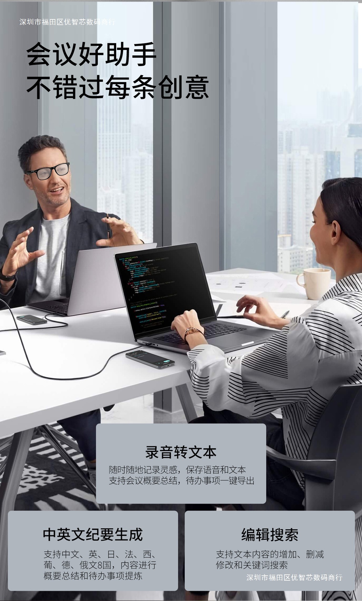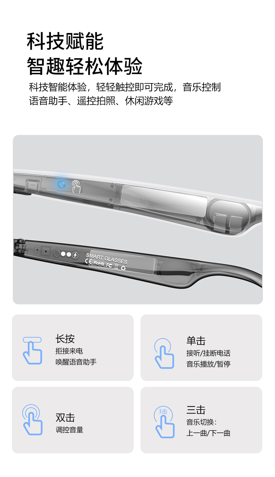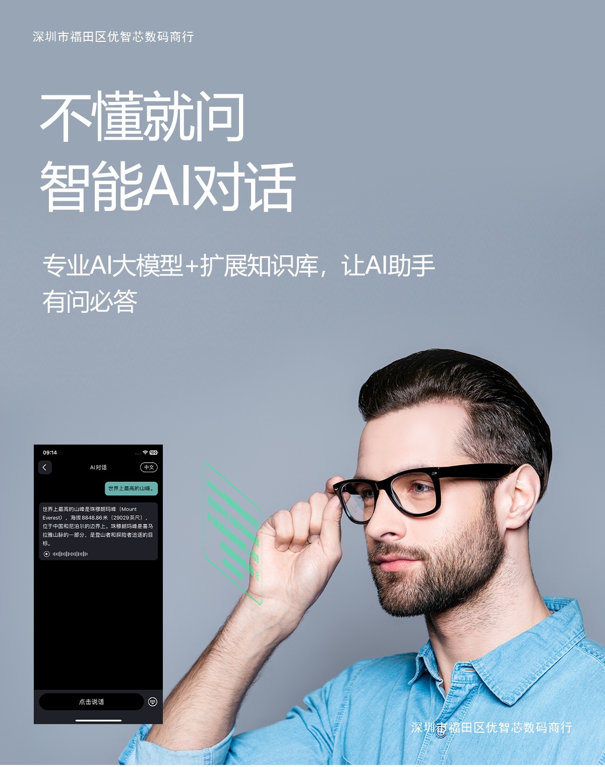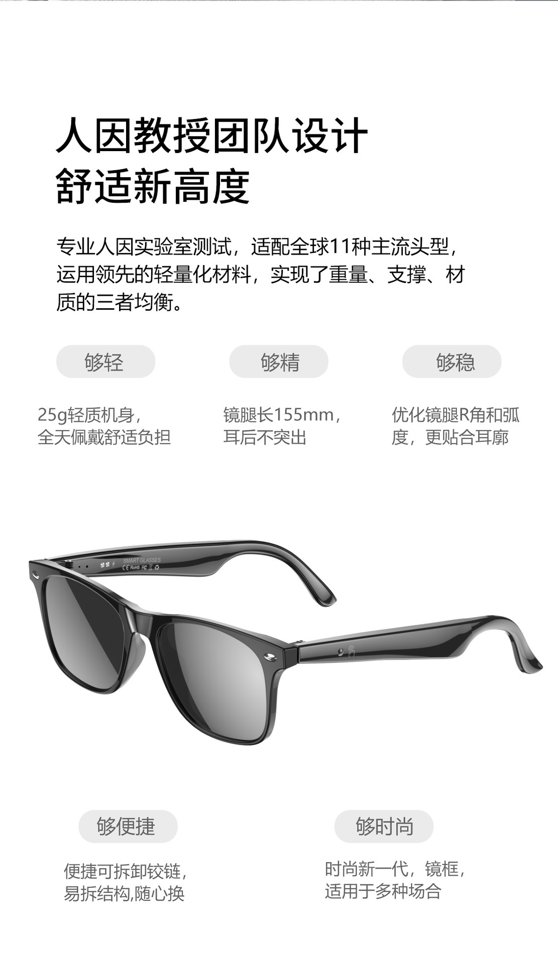 W100 Smart AI Translation Bluetooth Call Moda Deportes Oficina Negocios Reproducción de música Gafas inteligentes