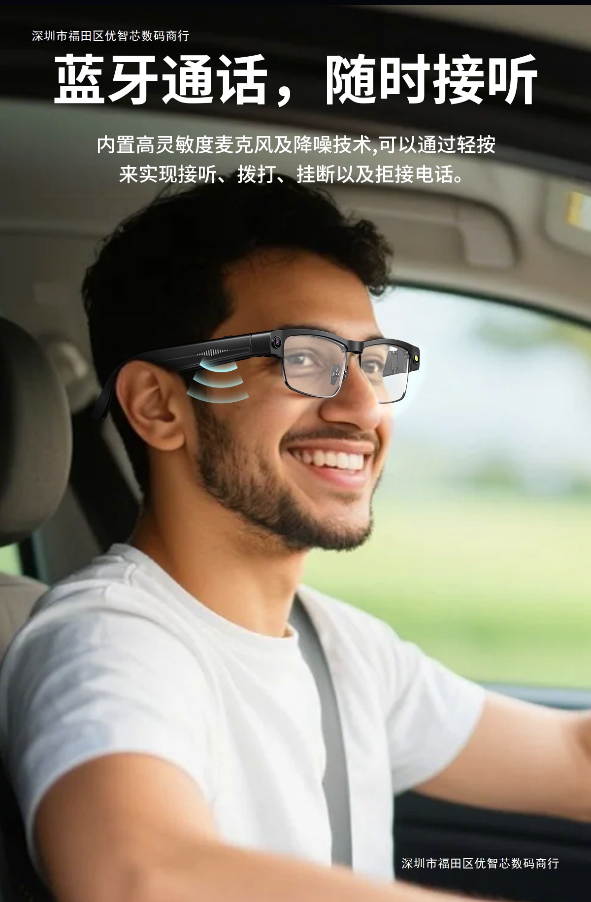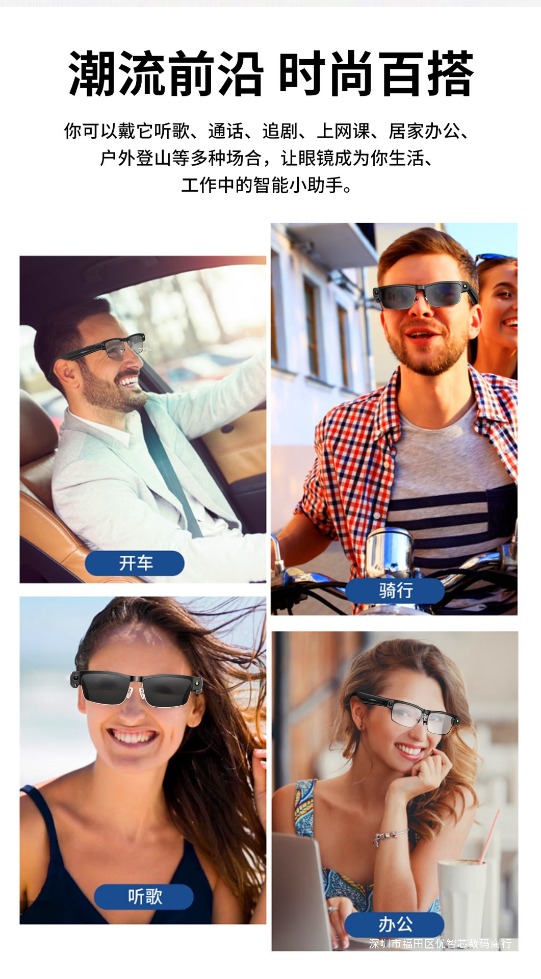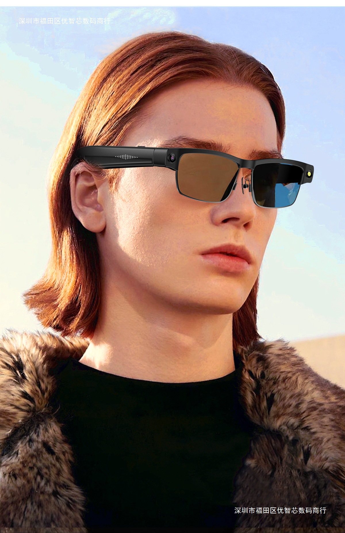 Gfas de color Bluetooth inteligentes con marco de metal, teléfono Bluetooth, música, 8 megapíxeles, fotografía, video, traducción global
