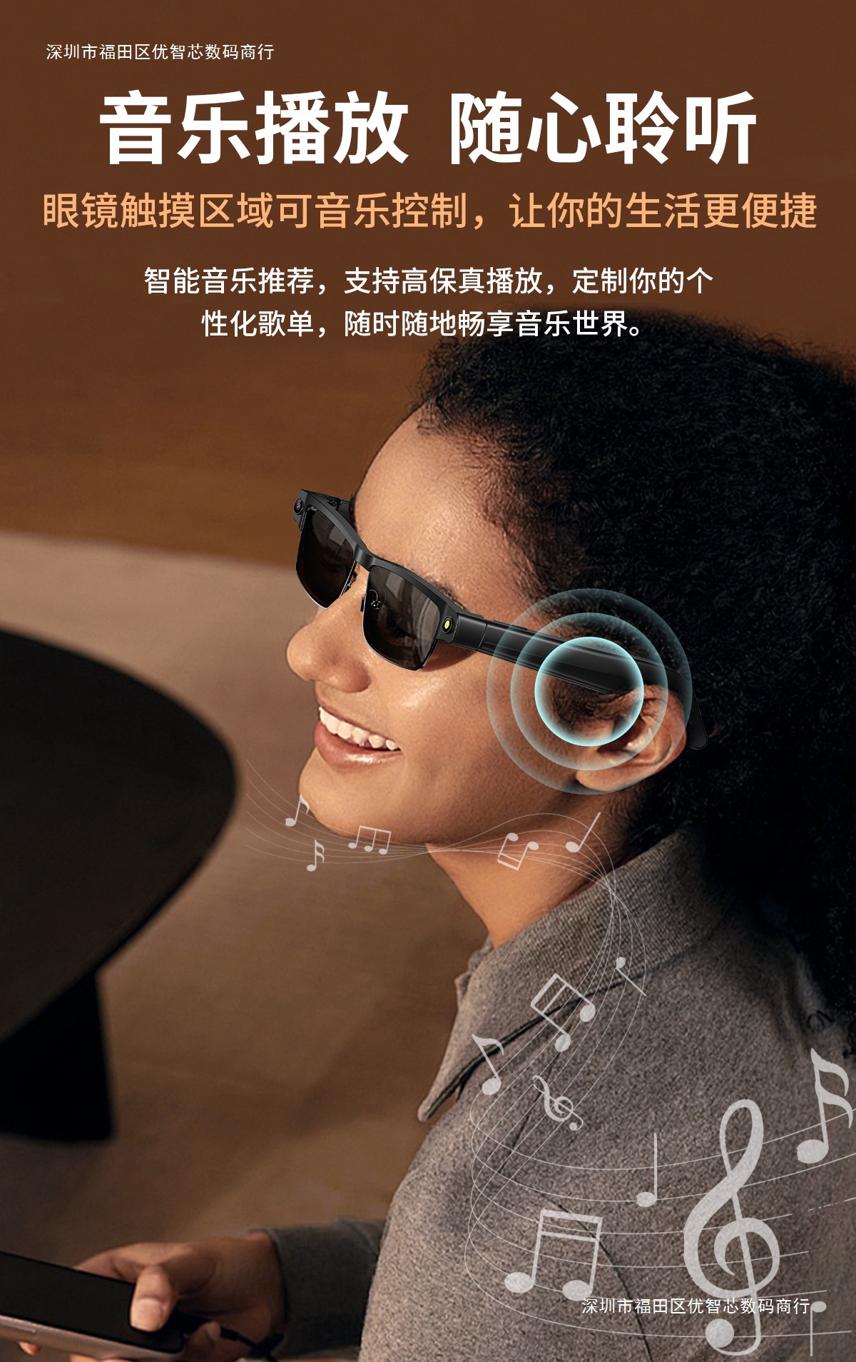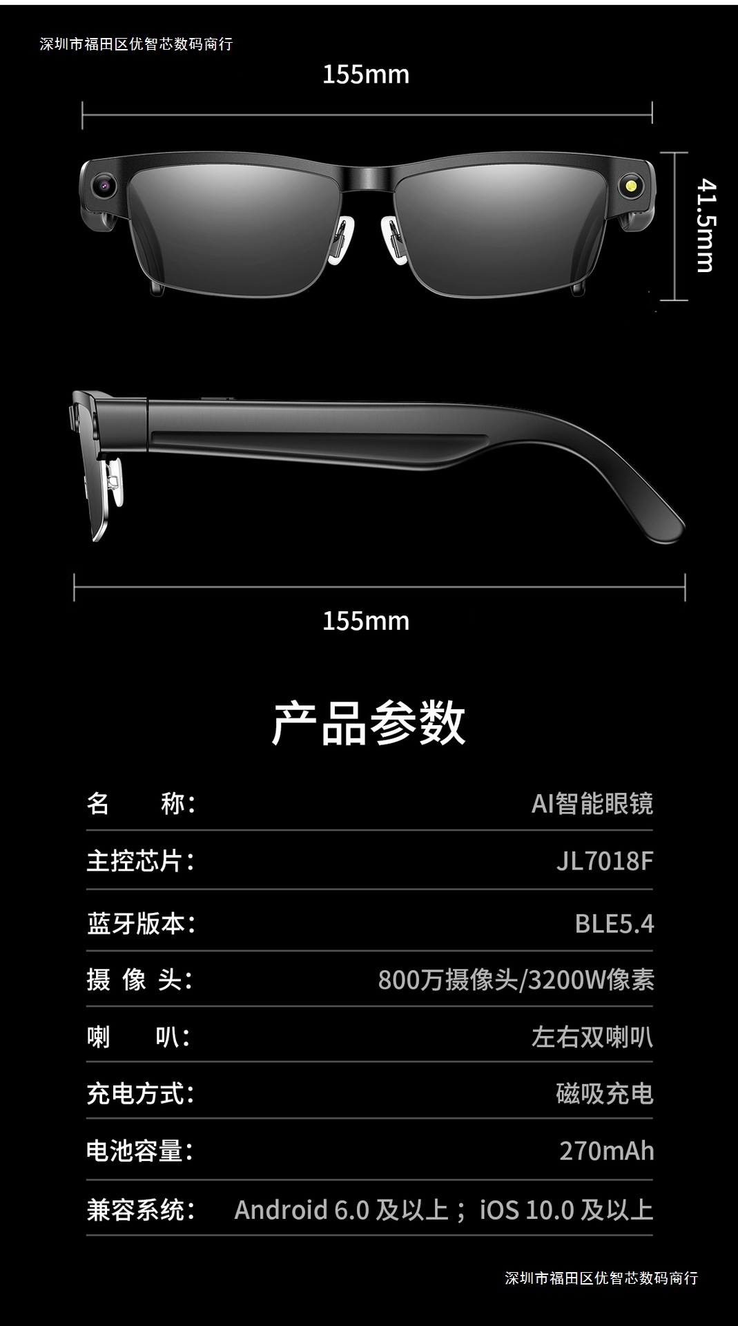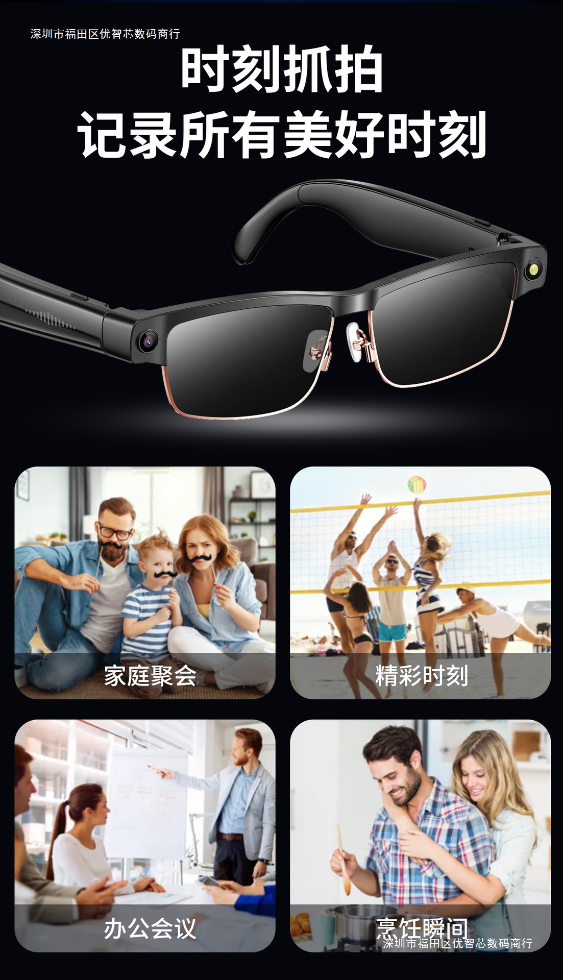 Gfas de color Bluetooth inteligentes con marco de metal, teléfono Bluetooth, música, 8 megapíxeles, fotografía, video, traducción global