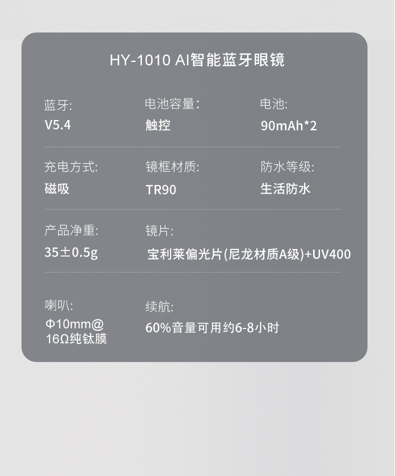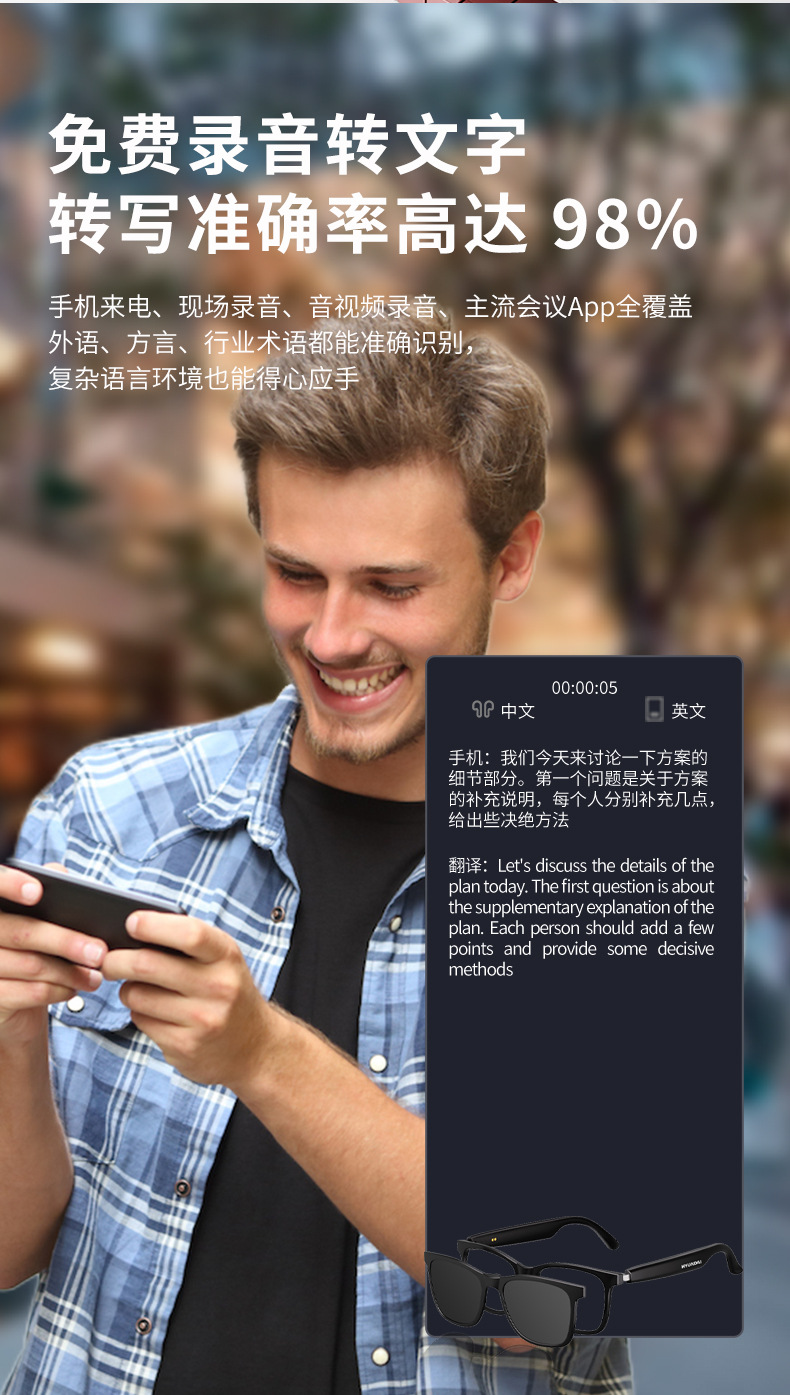 HY-1010 transfronterizo nueva moda todo fósforo inteligente traducción Bluetooth gafas de sol viajes y conducción auriculares al aire libre