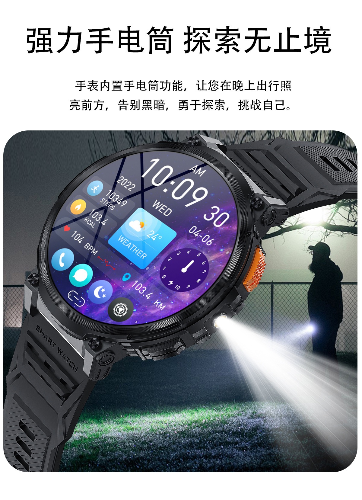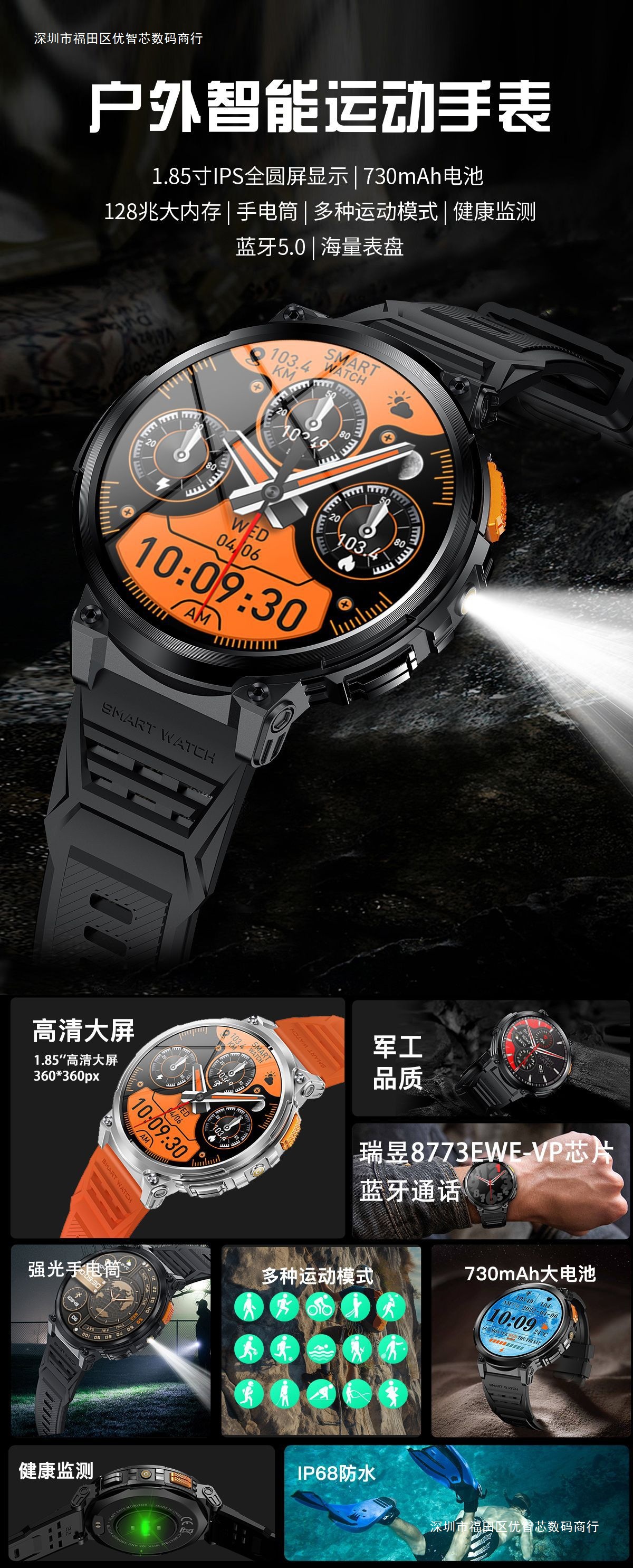 Nuevo reloj inteligente K66 llamada Bluetooth linterna 1,85 pulgadas IPS frecuencia cardíaca presión arterial oxígeno reloj multi-deporte