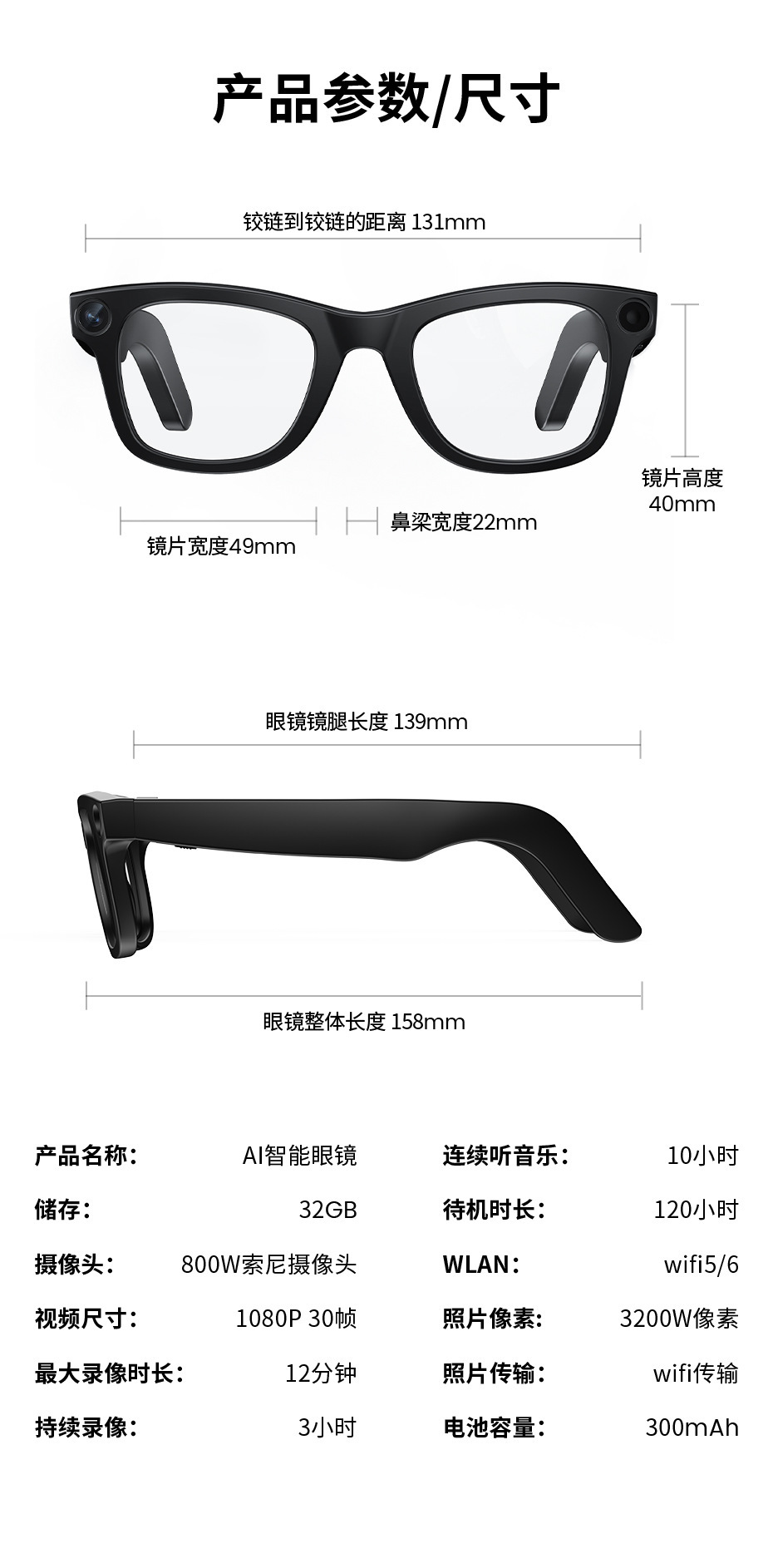 E03 gafas inteligentes 800W píxeles AI cámara de toma de fotos HD video llamada de voz traductor gafas