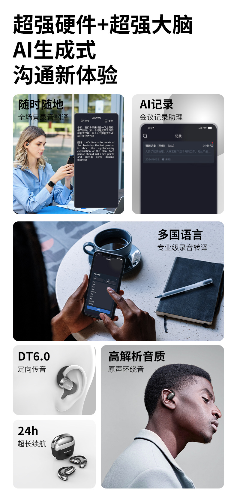 Moderno SpaceY3pro inteligente AI inalámbrico Bluetooth traducción simultánea en tiempo real multilingüe auriculares sin oídos