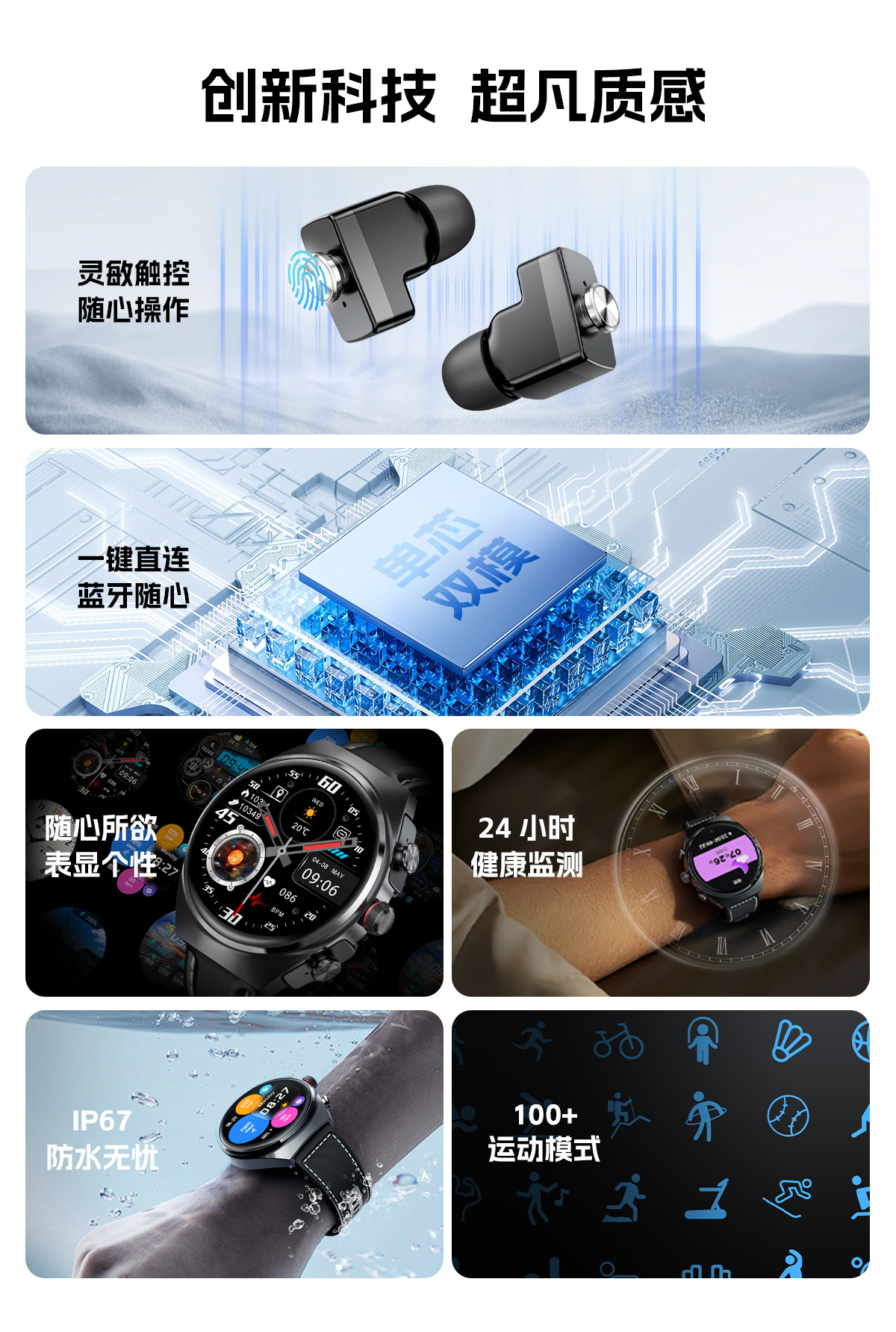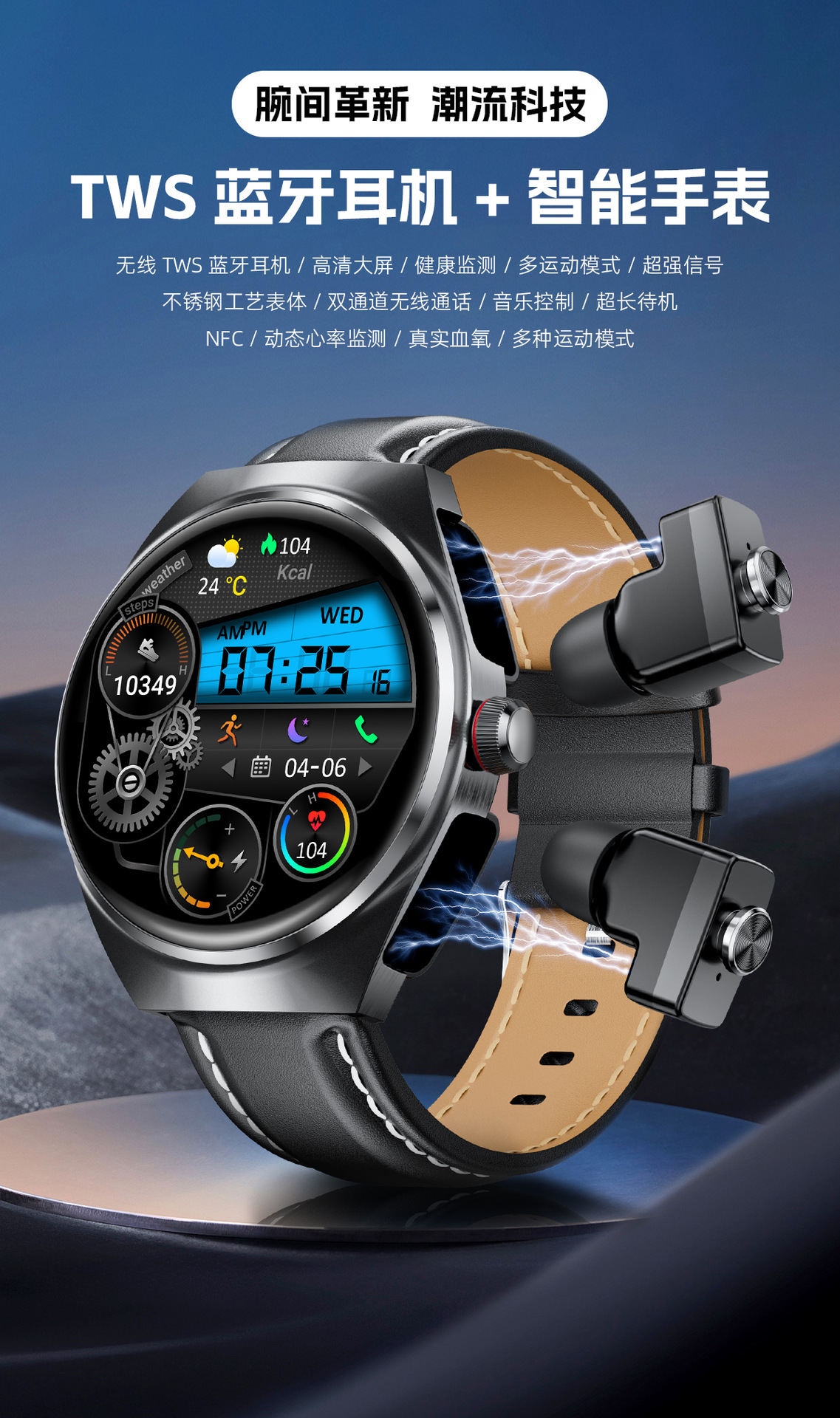 Cross-border MT95 2 en 1 reloj inteligente Bluetooth doble llamada música salud deportes TWS auriculares multifunción