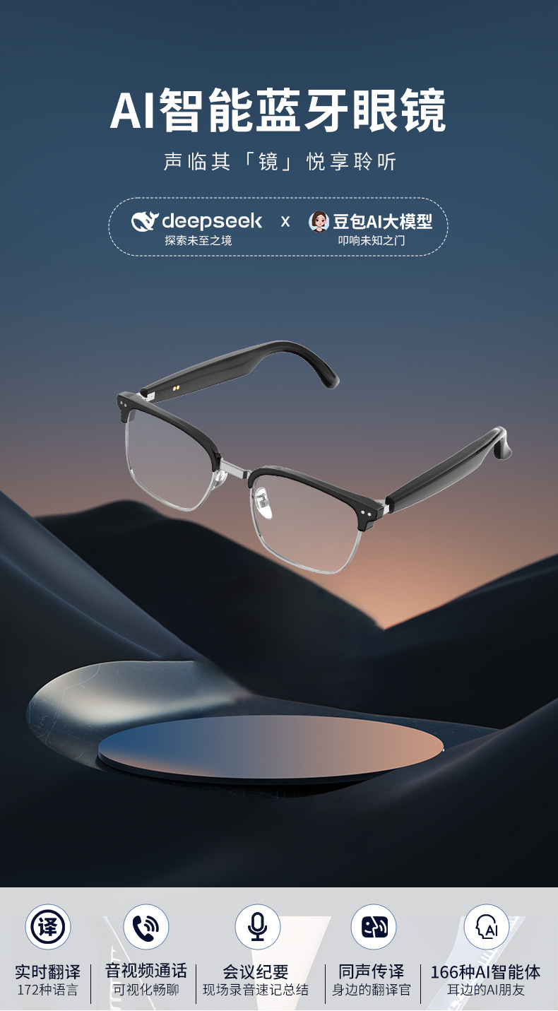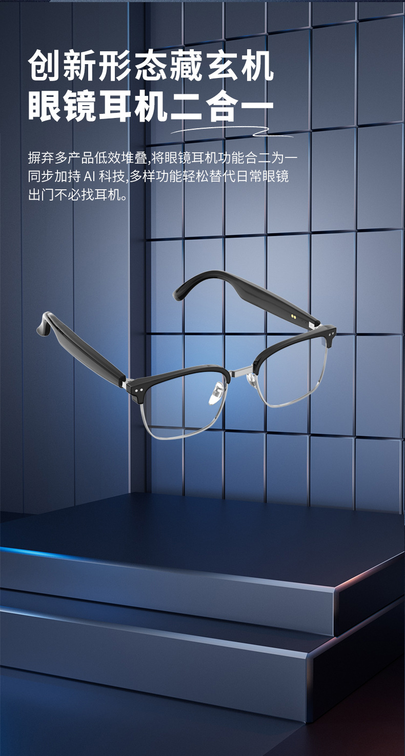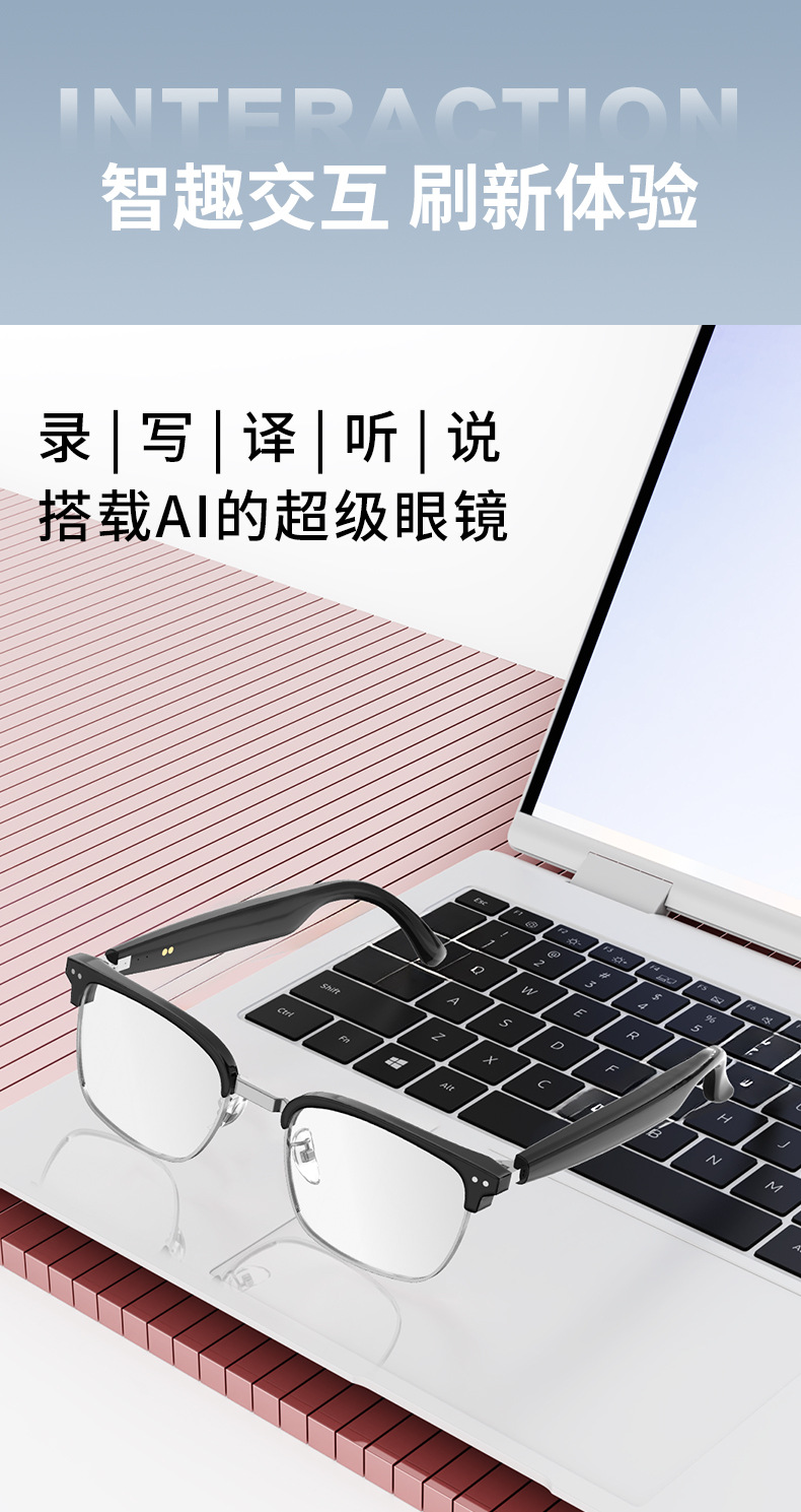 Gafas Bluetooth inteligentes ai explosivas transfronterizas de HY-1011, gafas de traducción comercial, auriculares, lentes transparentes dos en uno