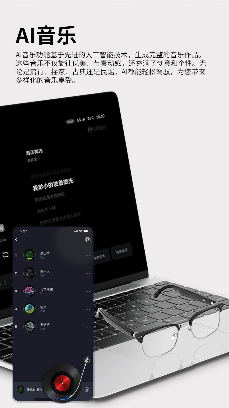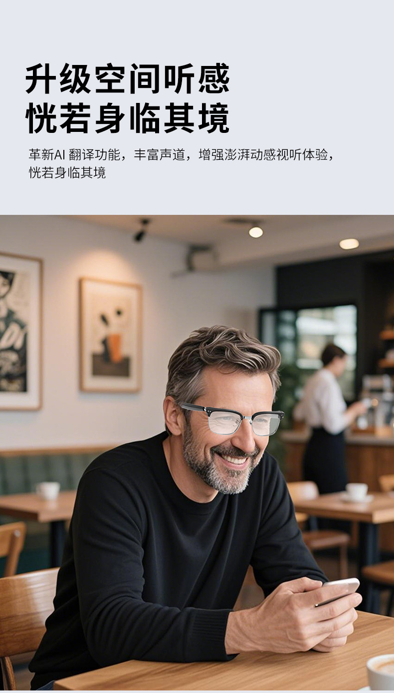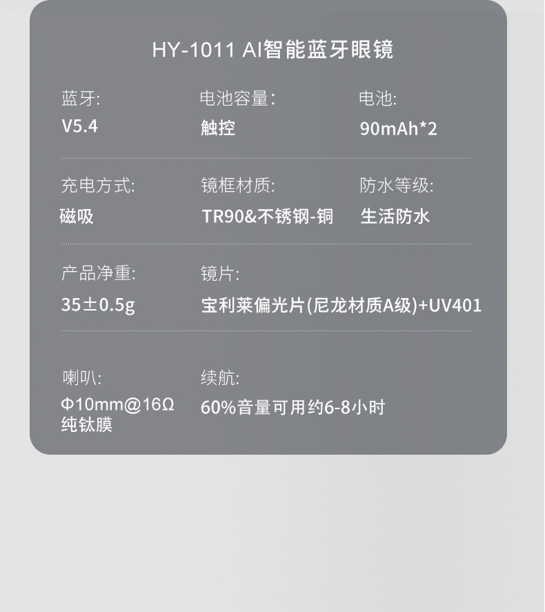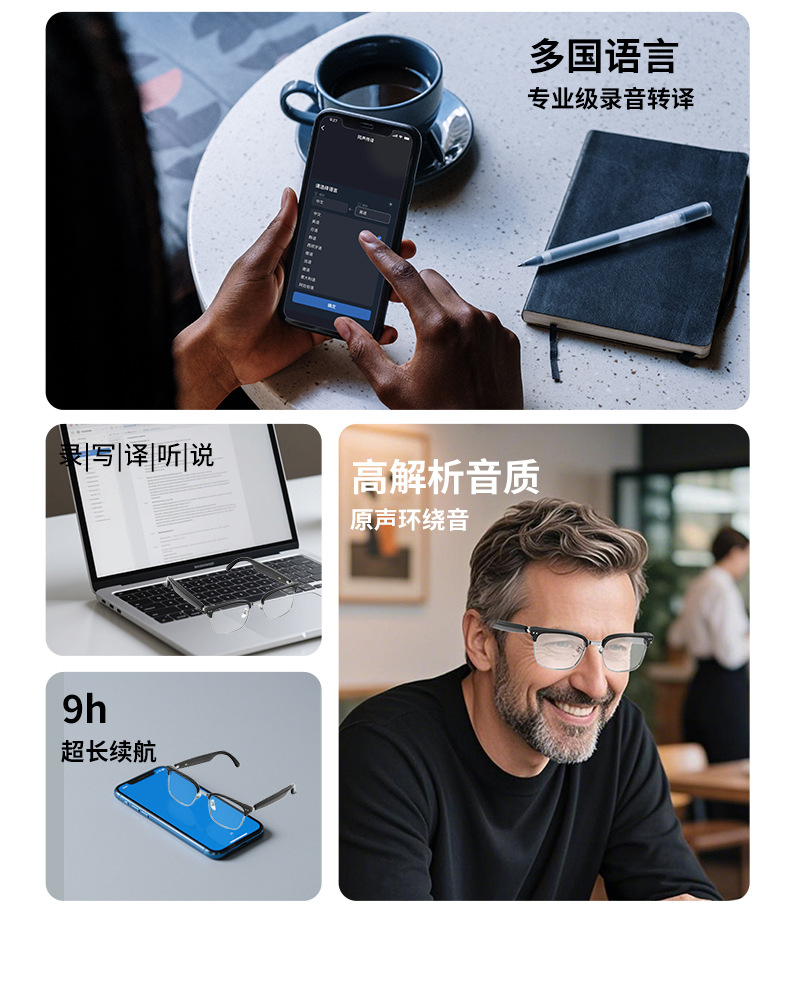 Gafas Bluetooth inteligentes ai explosivas transfronterizas de HY-1011, gafas de traducción comercial, auriculares, lentes transparentes dos en uno