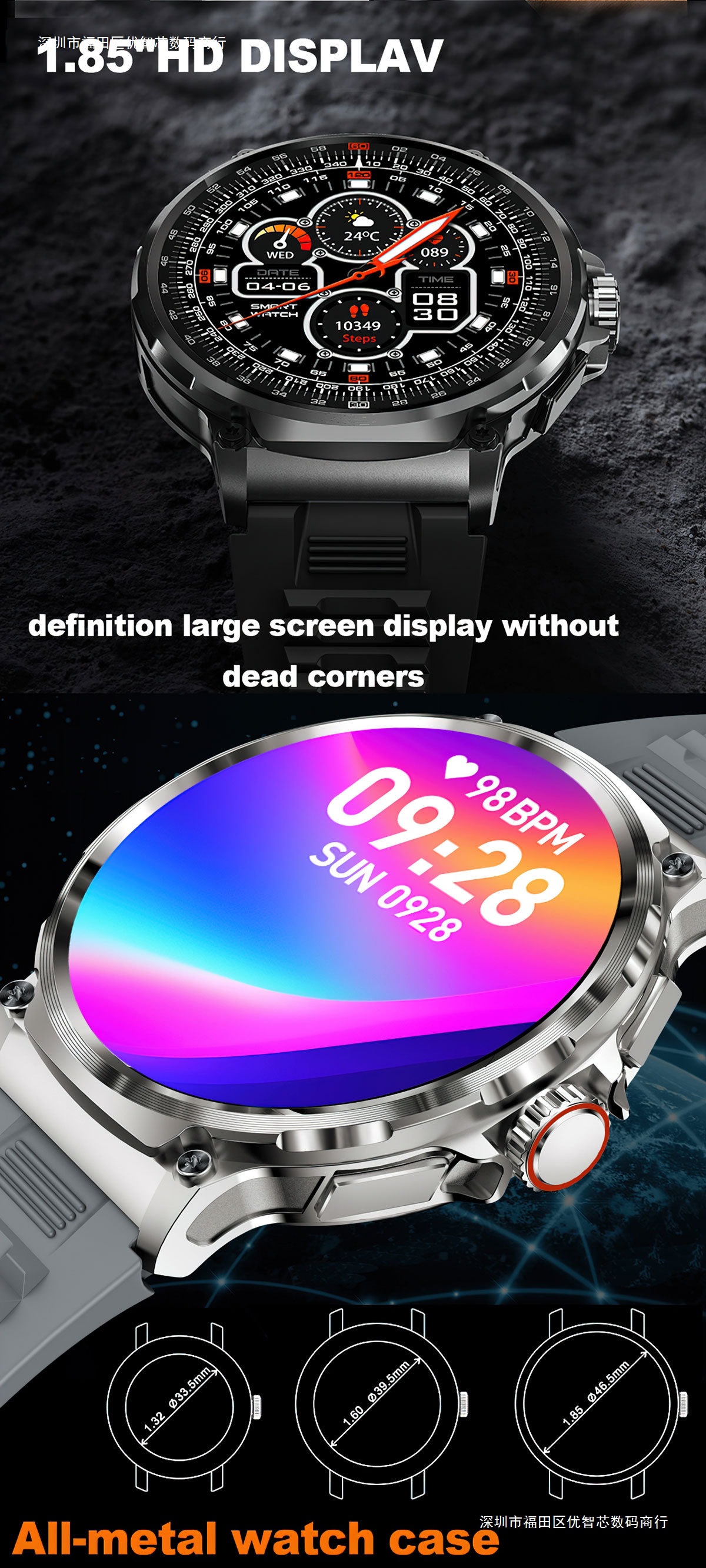 Pantalla ultra grande de 1,85 pulgadas HD V69 reloj inteligente al aire libre para hombres llamadas deportivas recordatorios Bluetooth