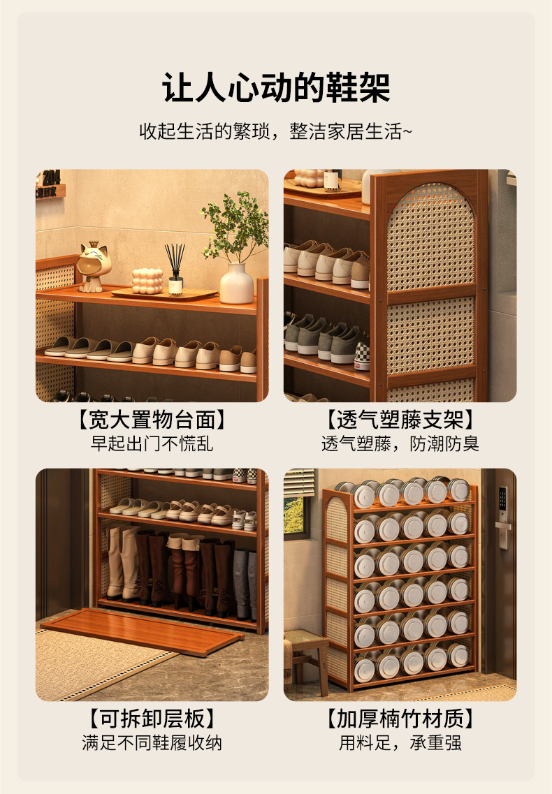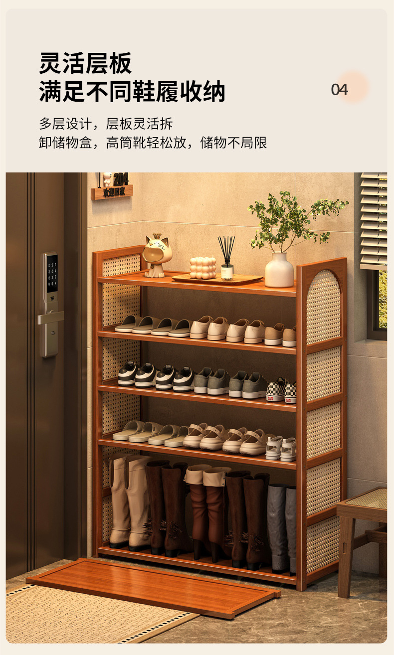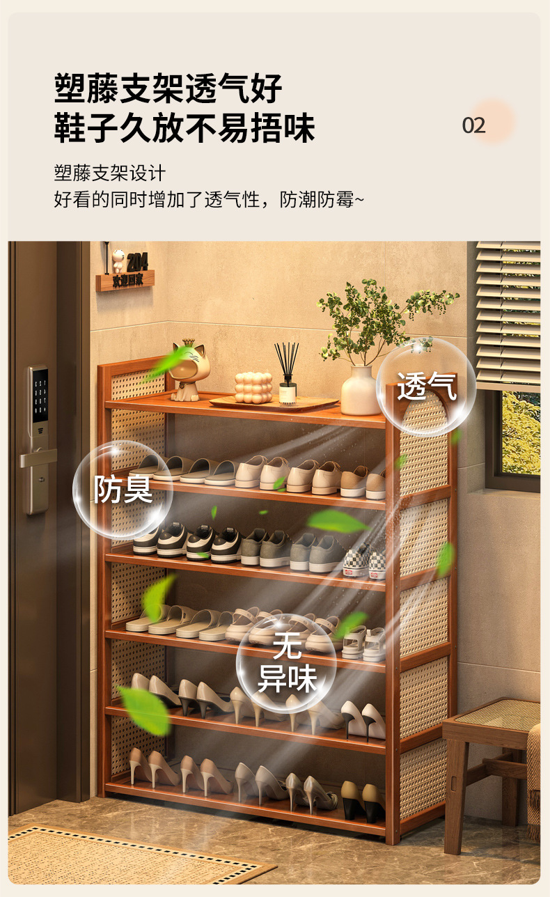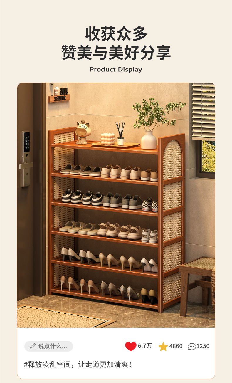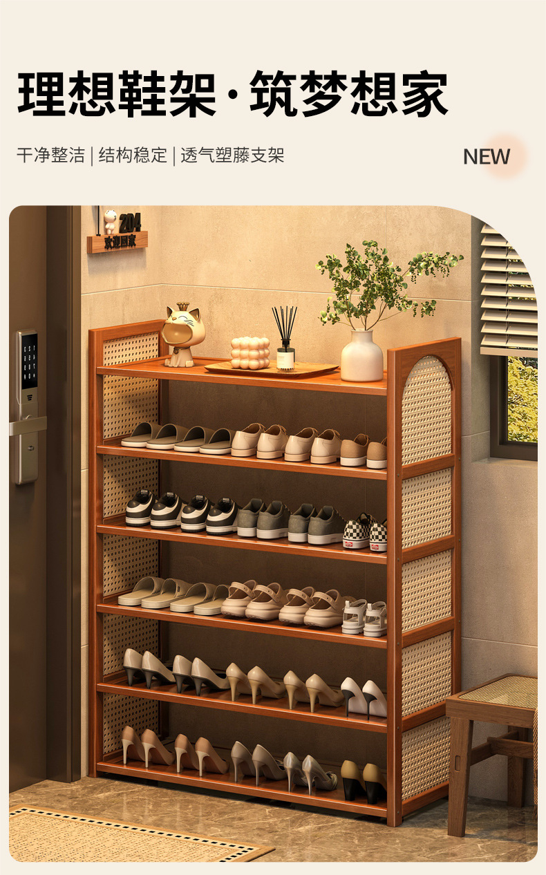 Estante de zapatos de tela de caña multicapa simple sala de estar doméstica de acabado económico de almacenamiento estante de almacenamiento ahorro de espacio gabinete de zapatos