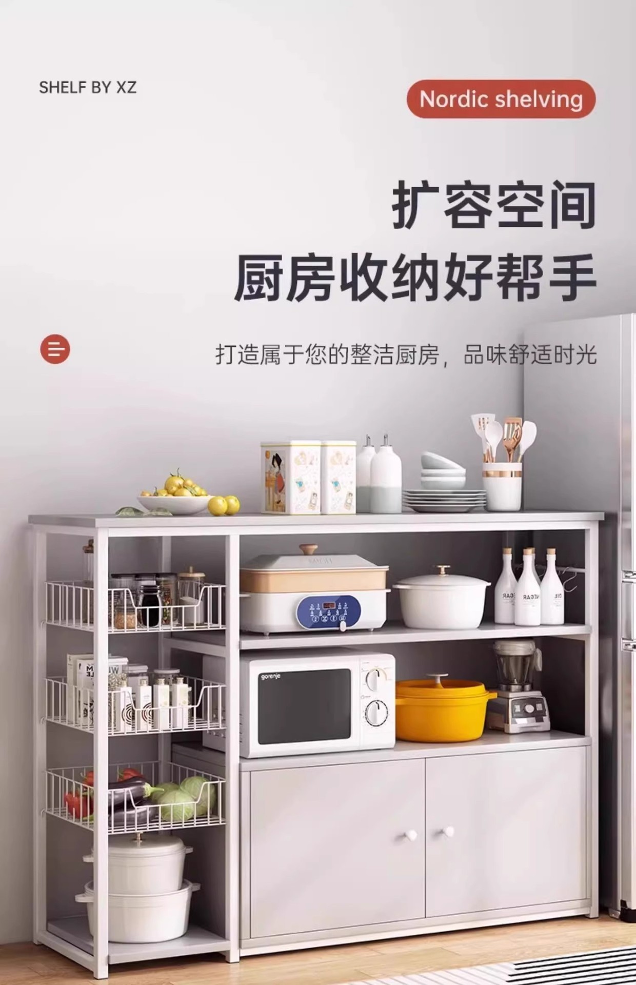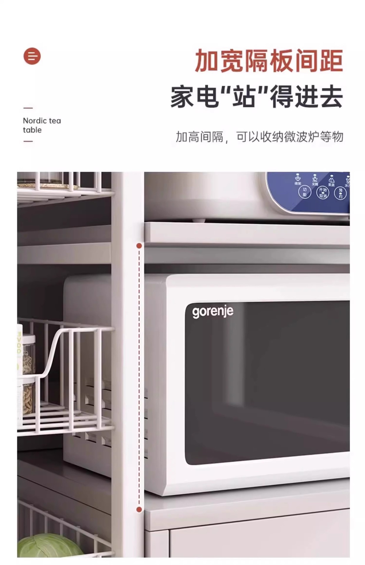 Estante de cocina Estante de almacenamiento de horno microondas multicapa de piso a techo Estante de almacenamiento multifuncional para el hogar contra la pared Gabinete de lado estrecho