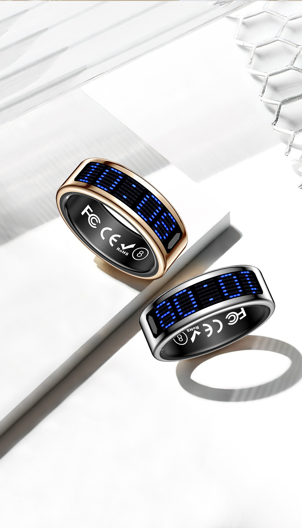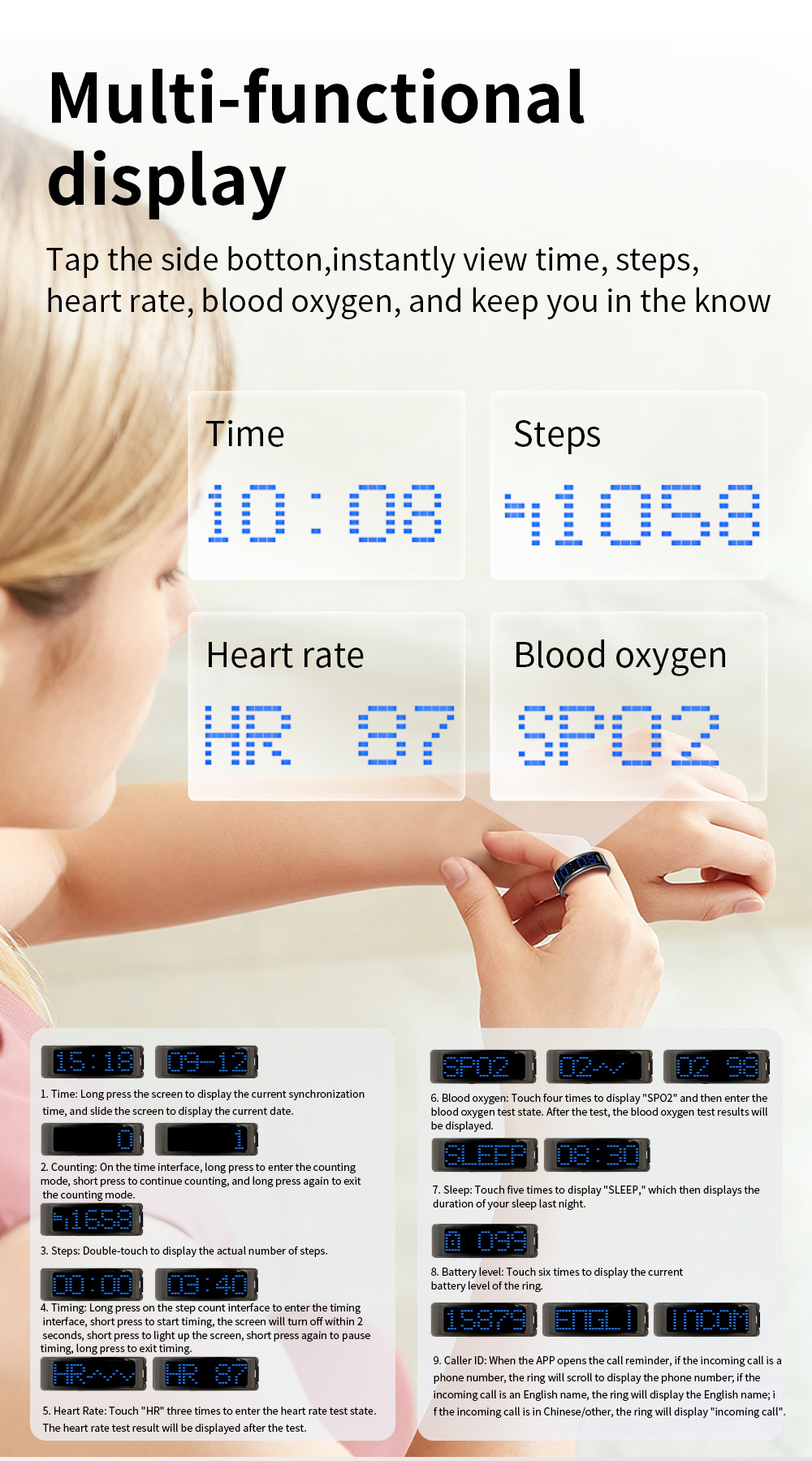 Nuevo anillo inteligente de pantalla transfronteriza pedómetro ritmo cardíaco oxígeno ejercicio monitoreo de salud del sueño cepillo pulsero de vibración