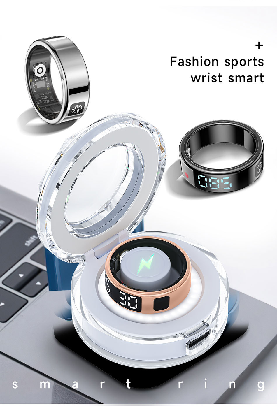 Transfronterizo SR08 anillo frecuencia cardíaca oxígeno ejercicio sueño monitoreo de salud cepillo de vibración pulso táctil inteligente portátil